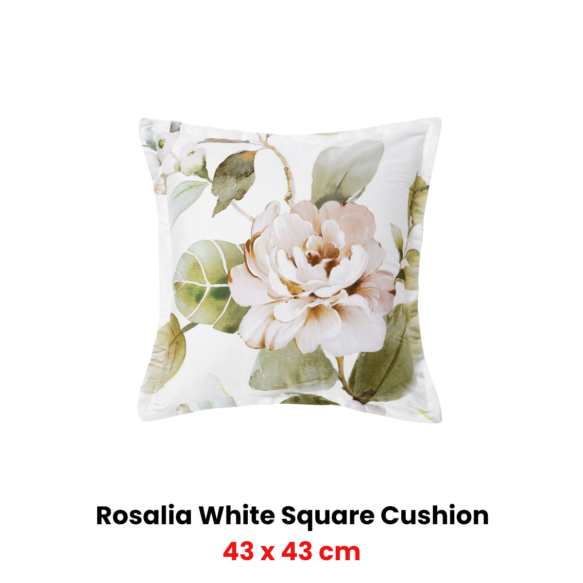 Spring has sprung with Rosalia White Square Filled Cushion by Bianca. Picturesque florals in delicate neutral hues of white, grey, pink, and green are perfectly placed over the cushion. Tailored edge adds the finishing touch to such a beautiful design.