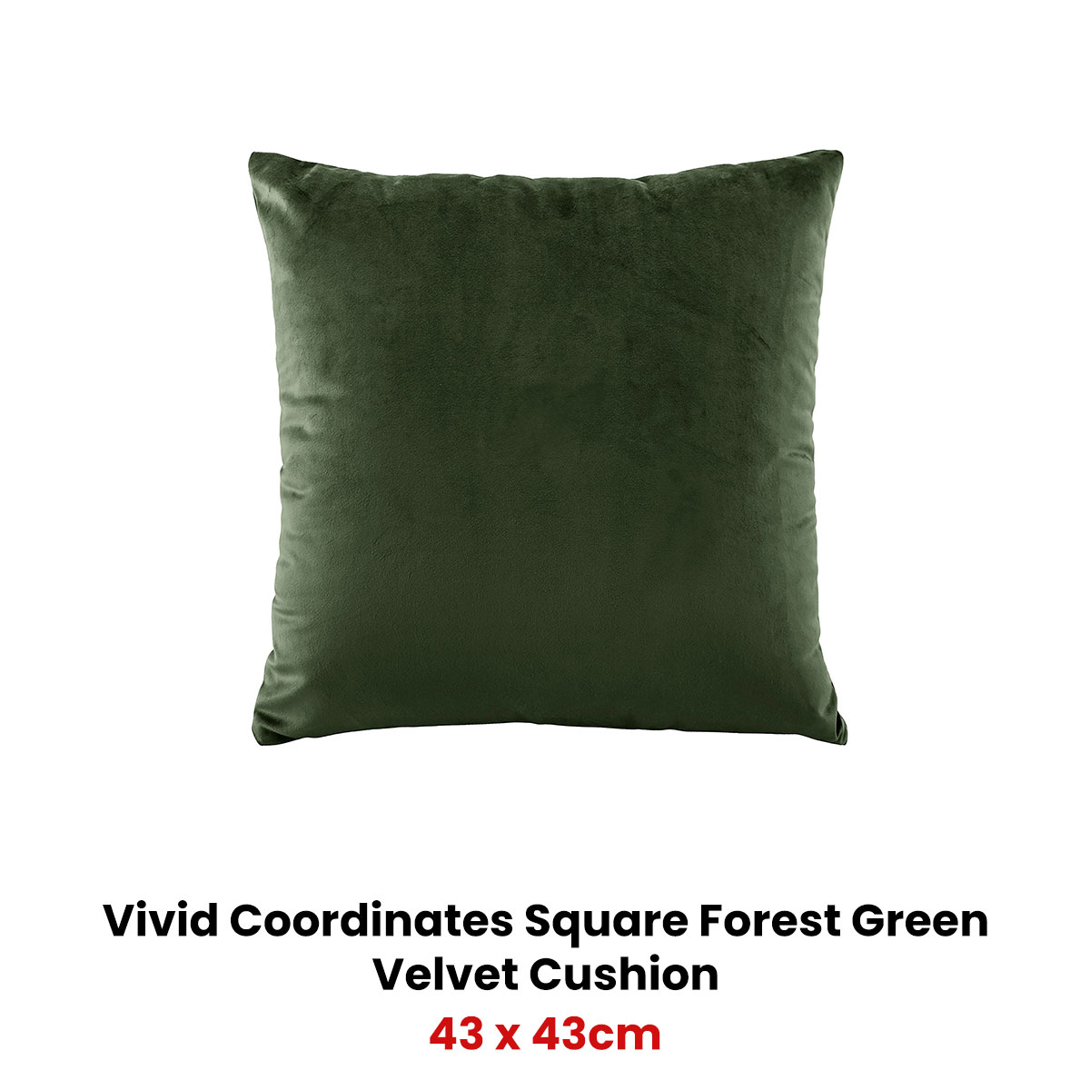 This stunning Vivid Coordinates Square Forest Green Velvet Cushion by Bianca features a gorgeous solid colour design that will comlete the look of your bedroom setting.