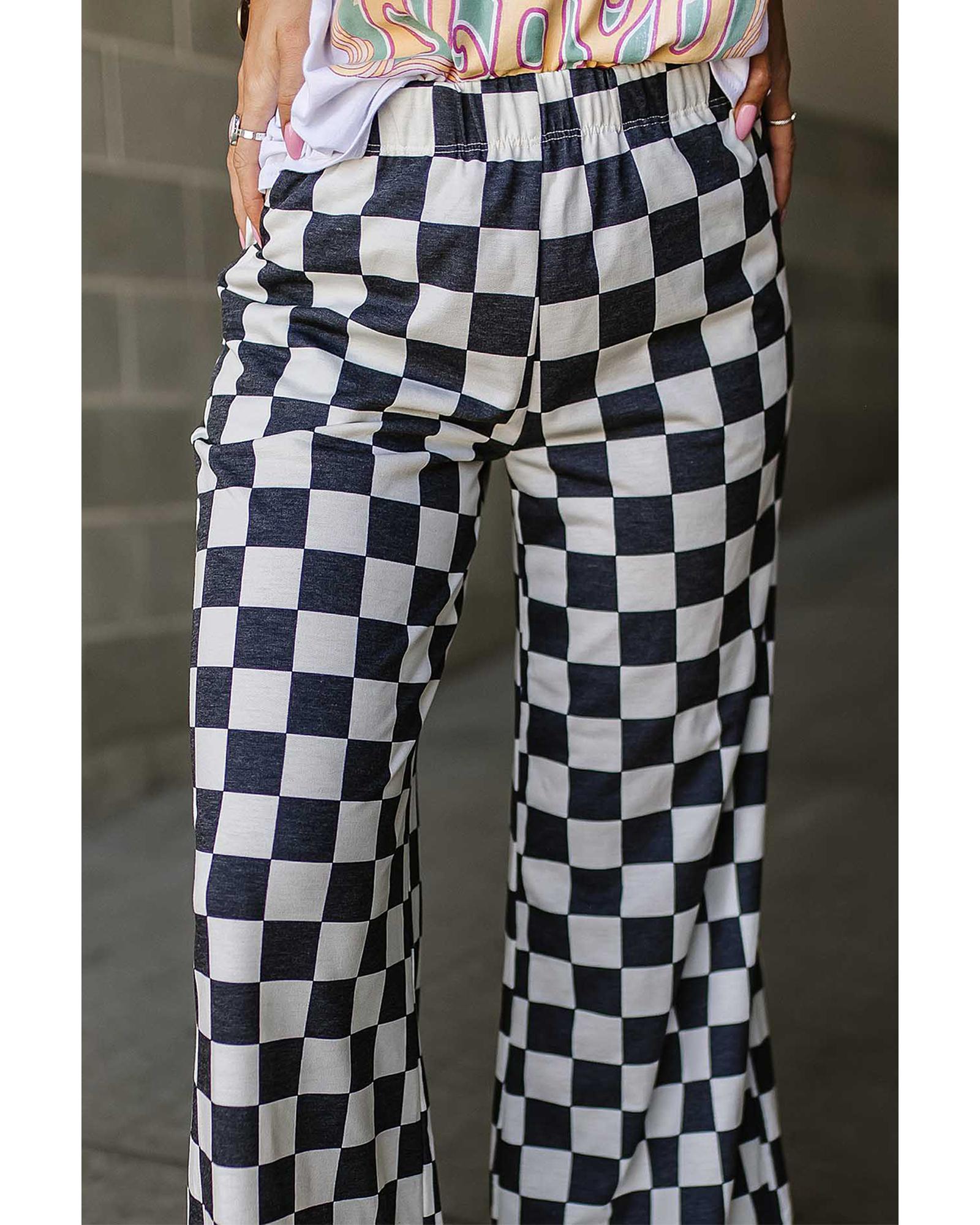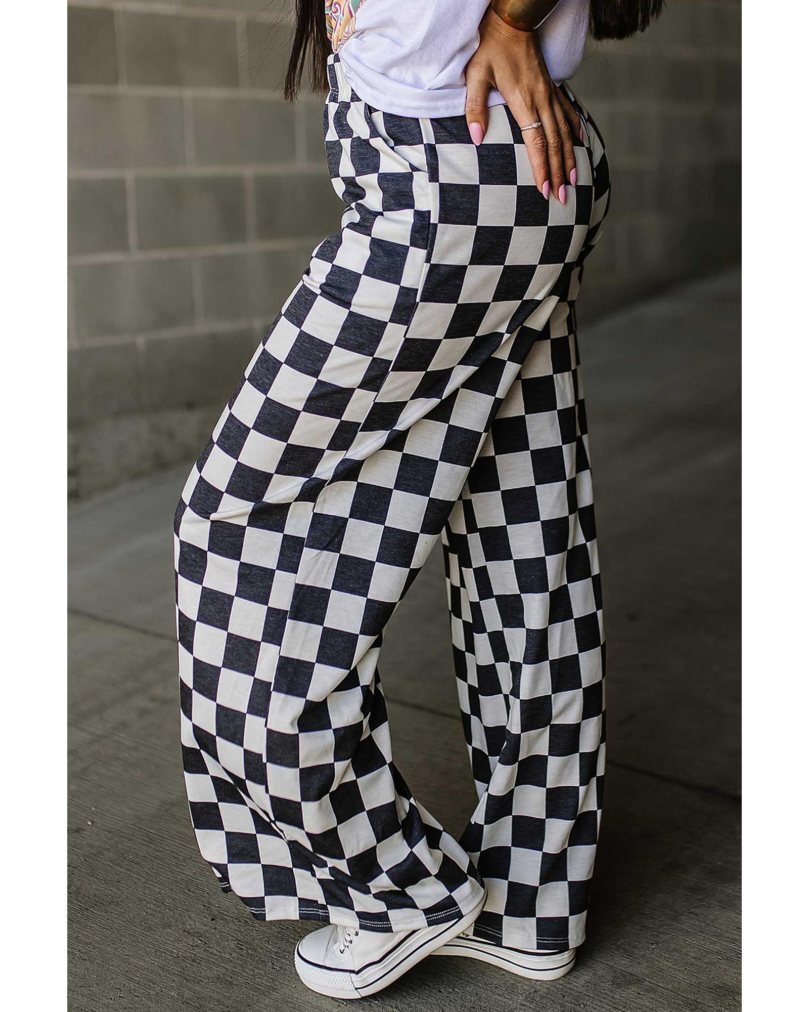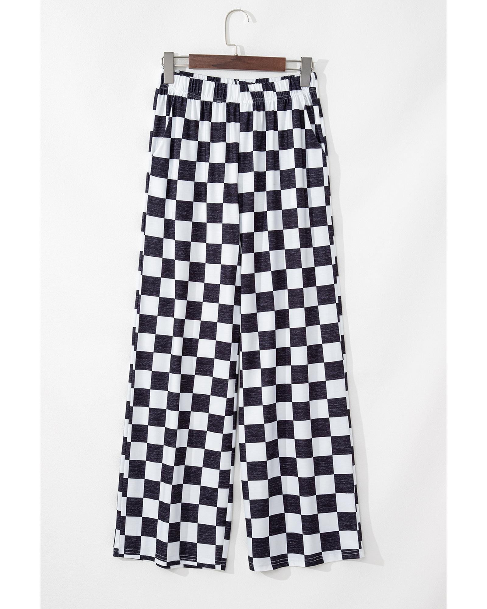 Black 2-Tone Checked Print High Waist Wide Leg Pants – L