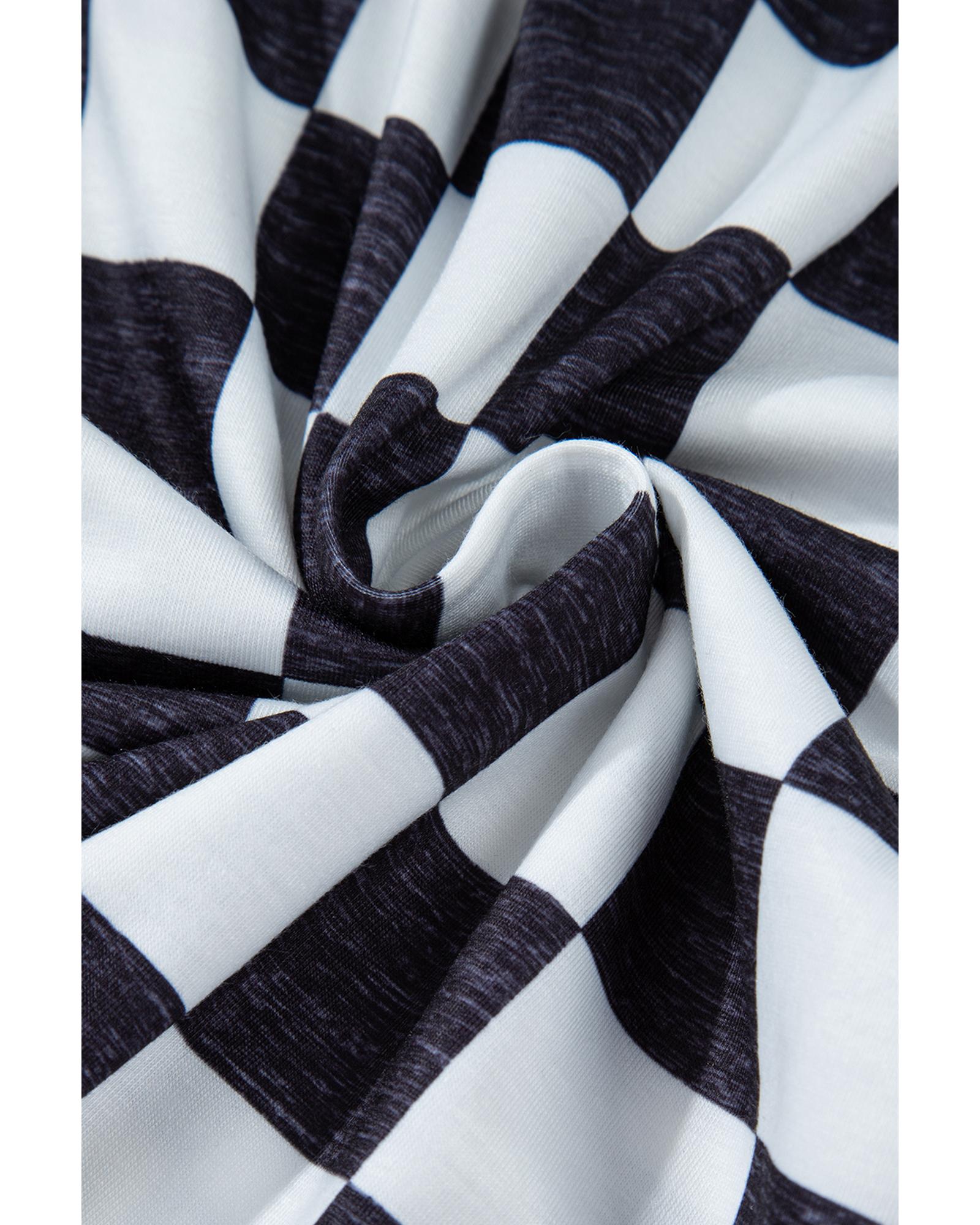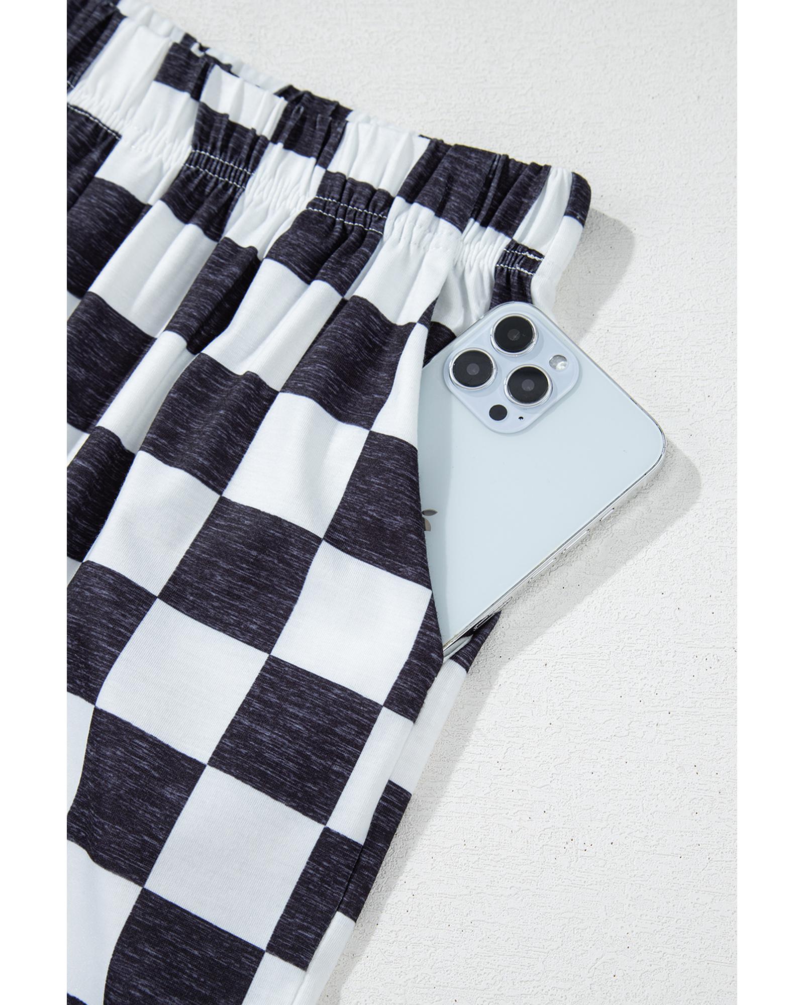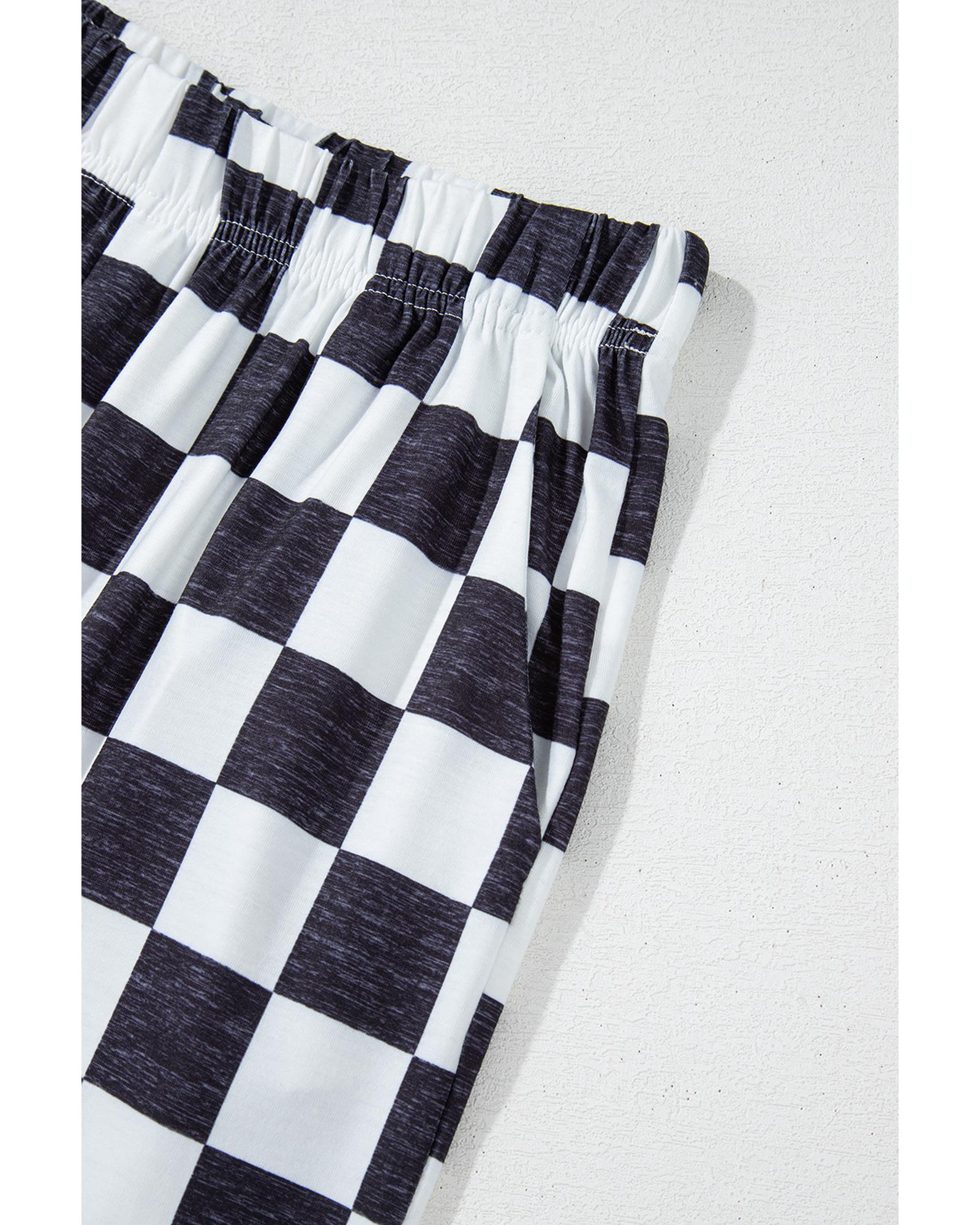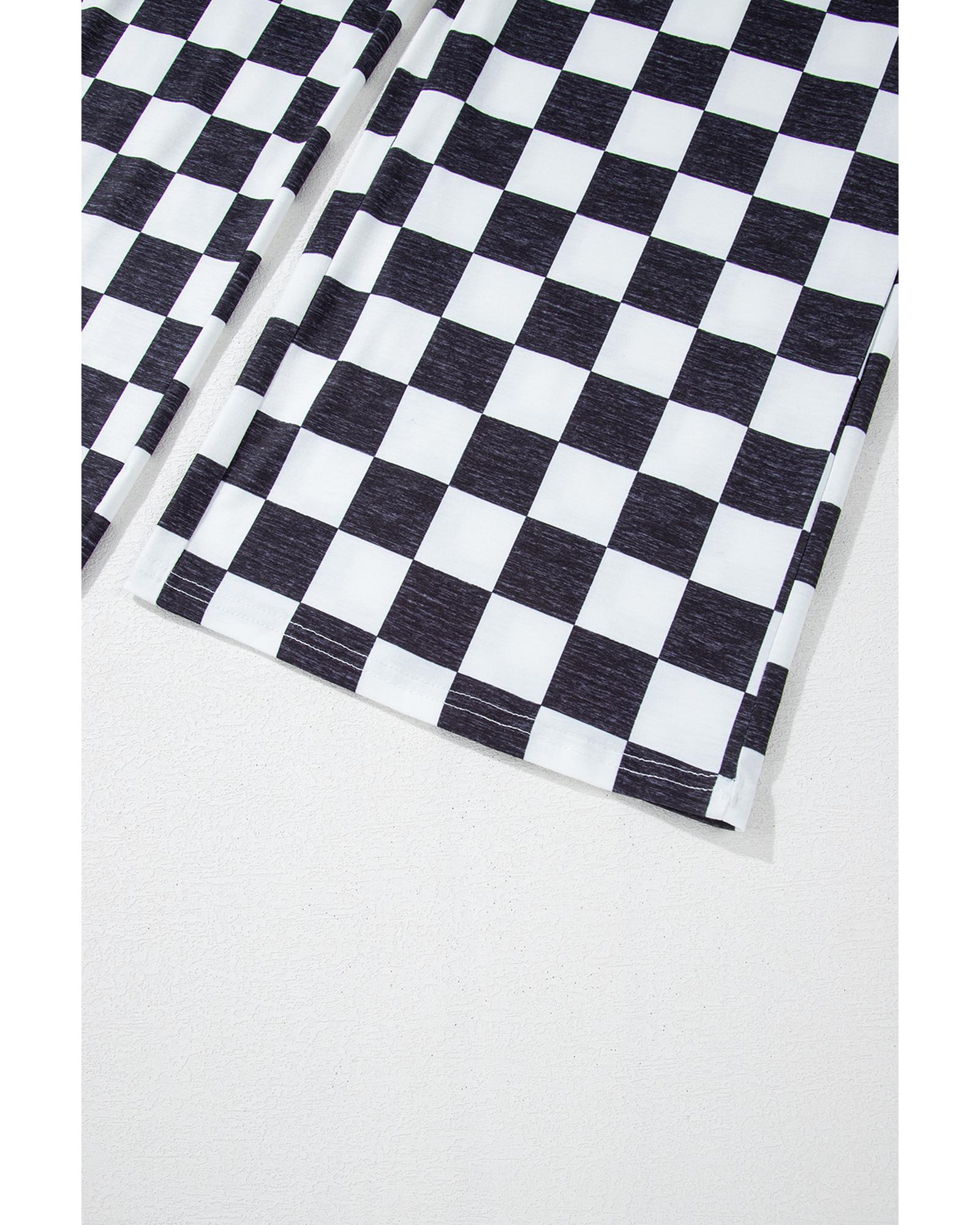 Black 2-Tone Checked Print High Waist Wide Leg Pants – L