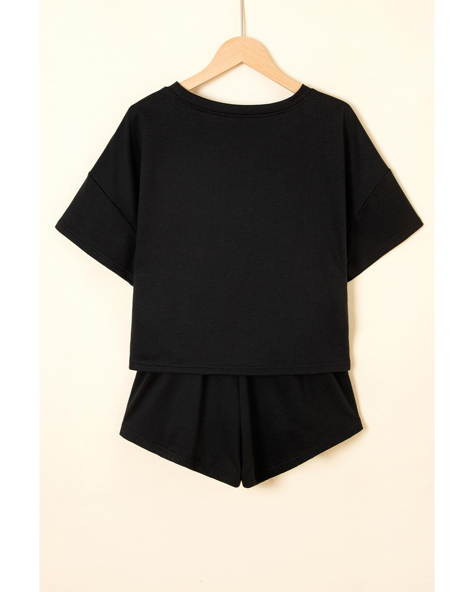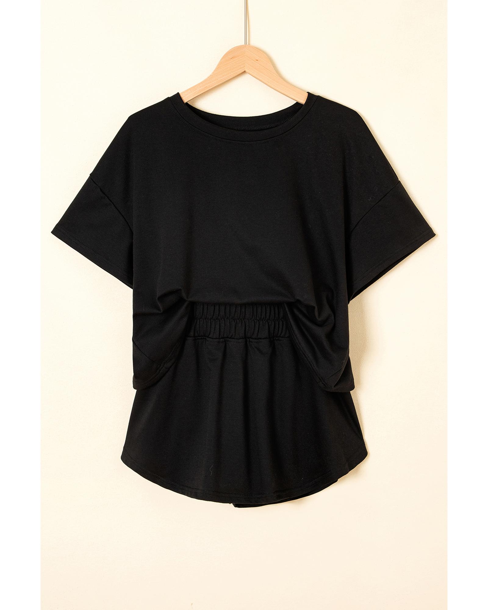 Black 2pcs Cropped Tee and Ruffle High Waist Skort Set – M