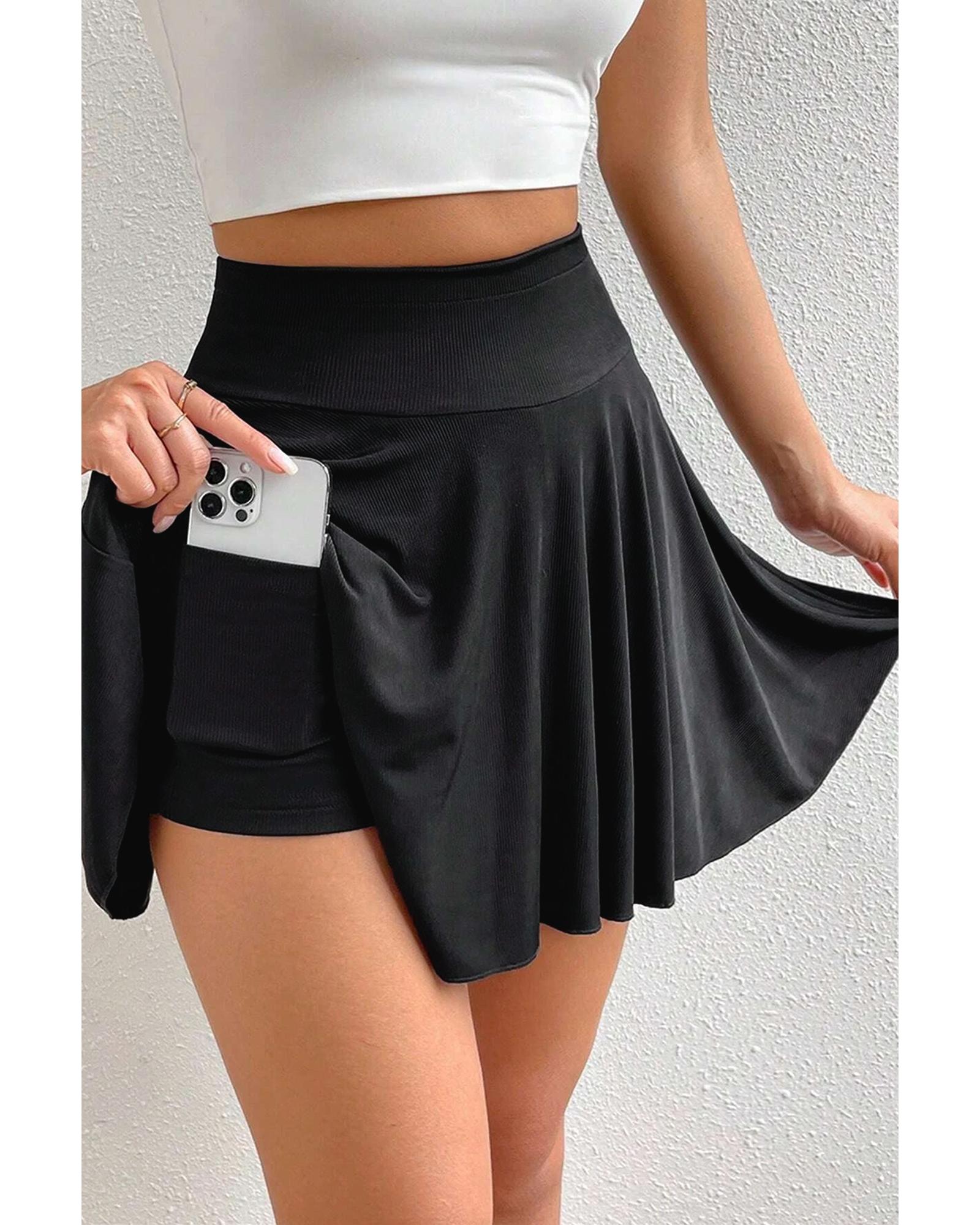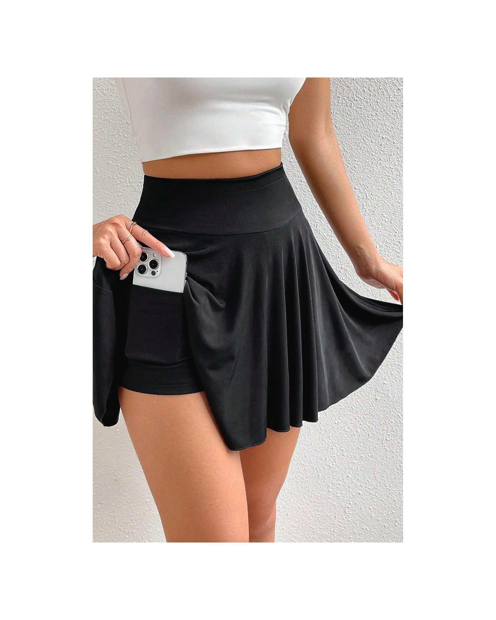 Black A-line Draped High Waist Phone Pocket Lined Skort – XL