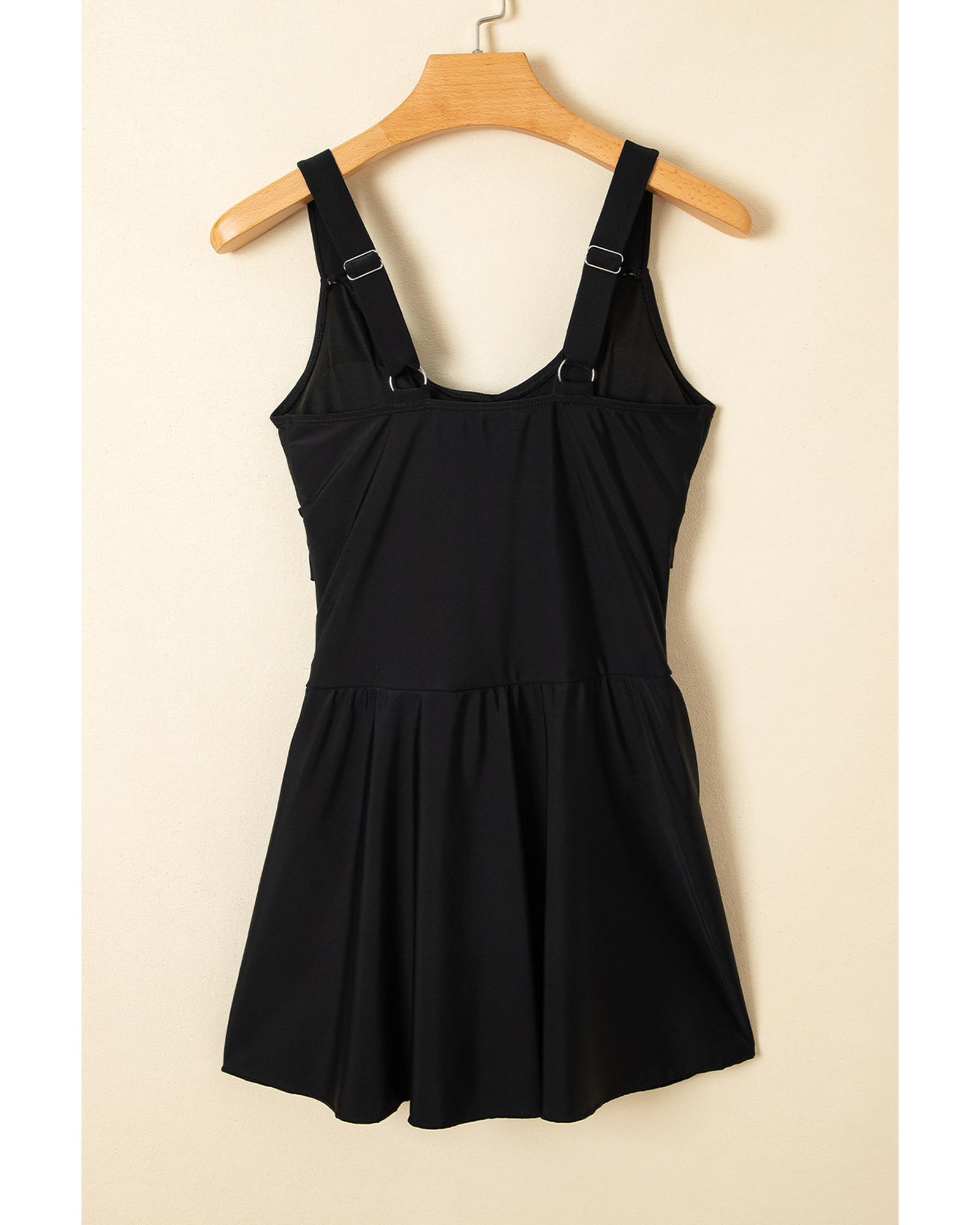 Black Adjustable Straps Cutout Ruched Knot Slit One Piece Swim Dress - S
