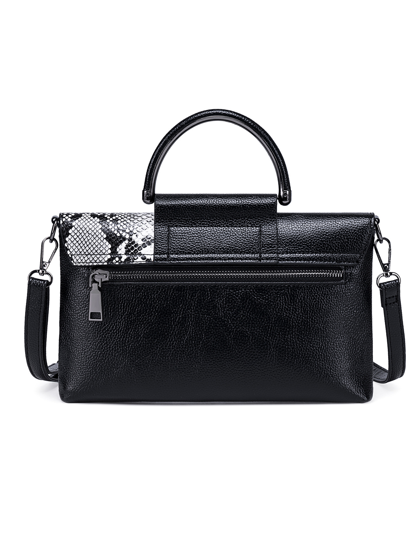 Elevate your style with this exquisite clutch bag, designed for the modern woman who appreciates timeless elegance. The bag features a sophisticated combination of smooth and crocodile-embossed leather, creating a luxurious and eye-catching texture. Its structured silhouette and unique metal top handle add a touch of vintage charm.