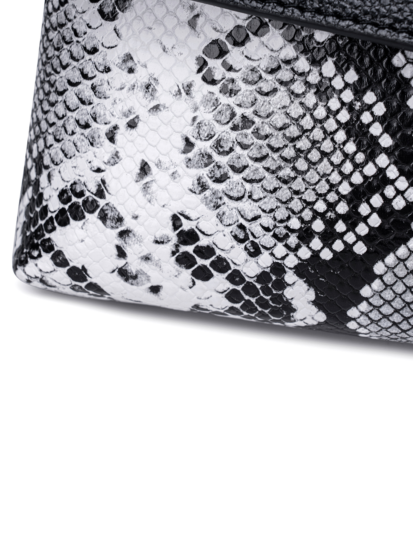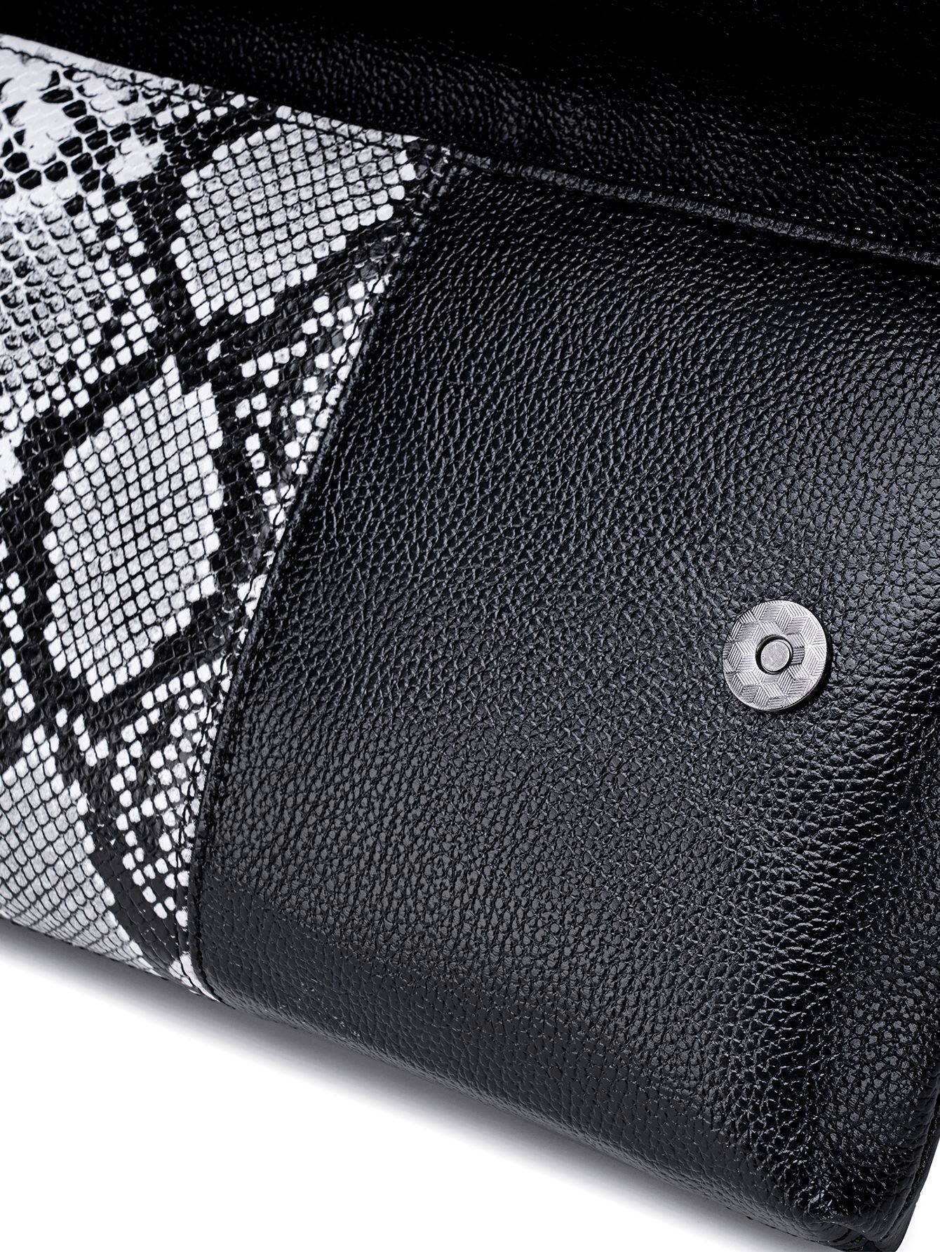 Black and White Elegant crocodile embossed clutch – with metal top handle and shoulder strap