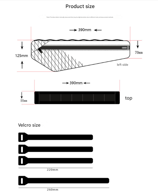 - Secure & Adjustable Multi-Point Mounting: Features multiple reinforced loop points and includes four strong, removable Velcro straps (three 220mm, one 260mm) for a highly stable and customizable fit on various bike frames. Ensures the bag stays securely in place even on rough terrain.