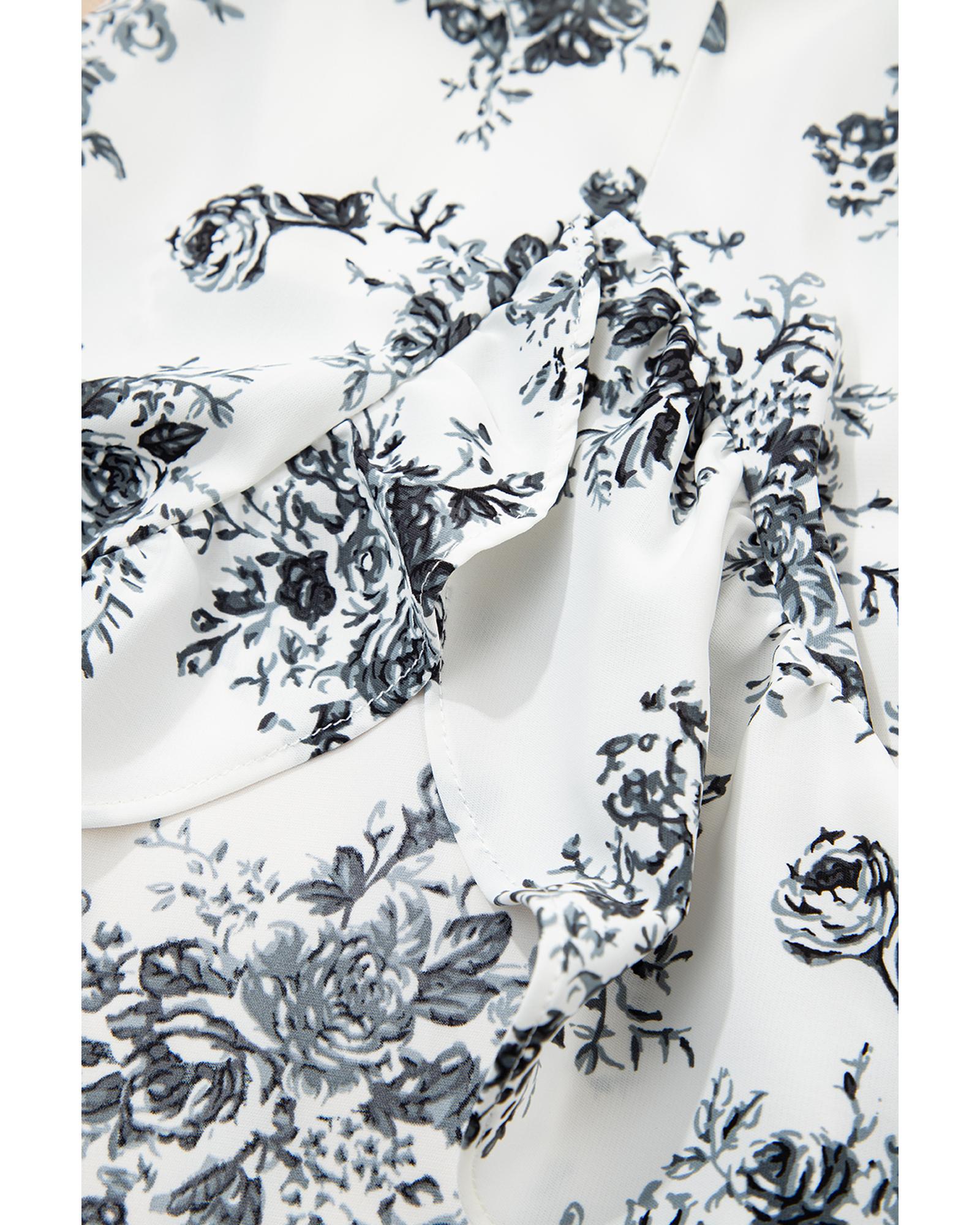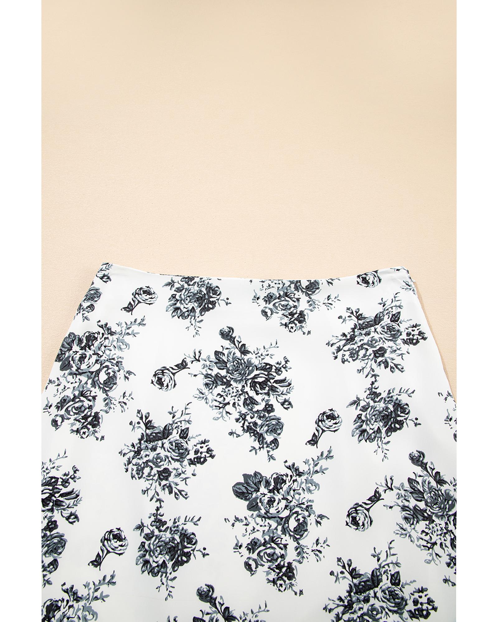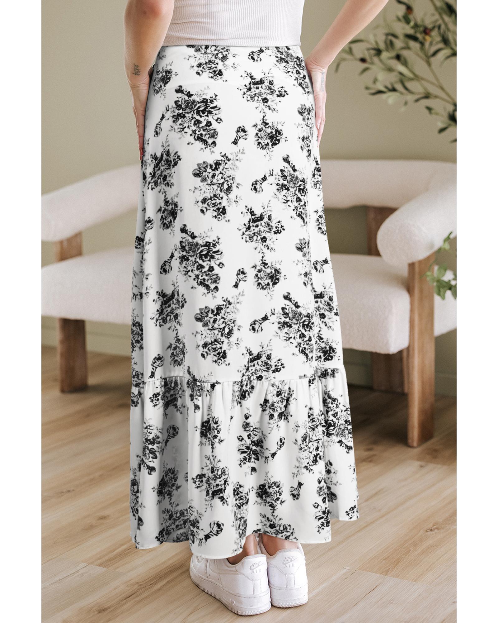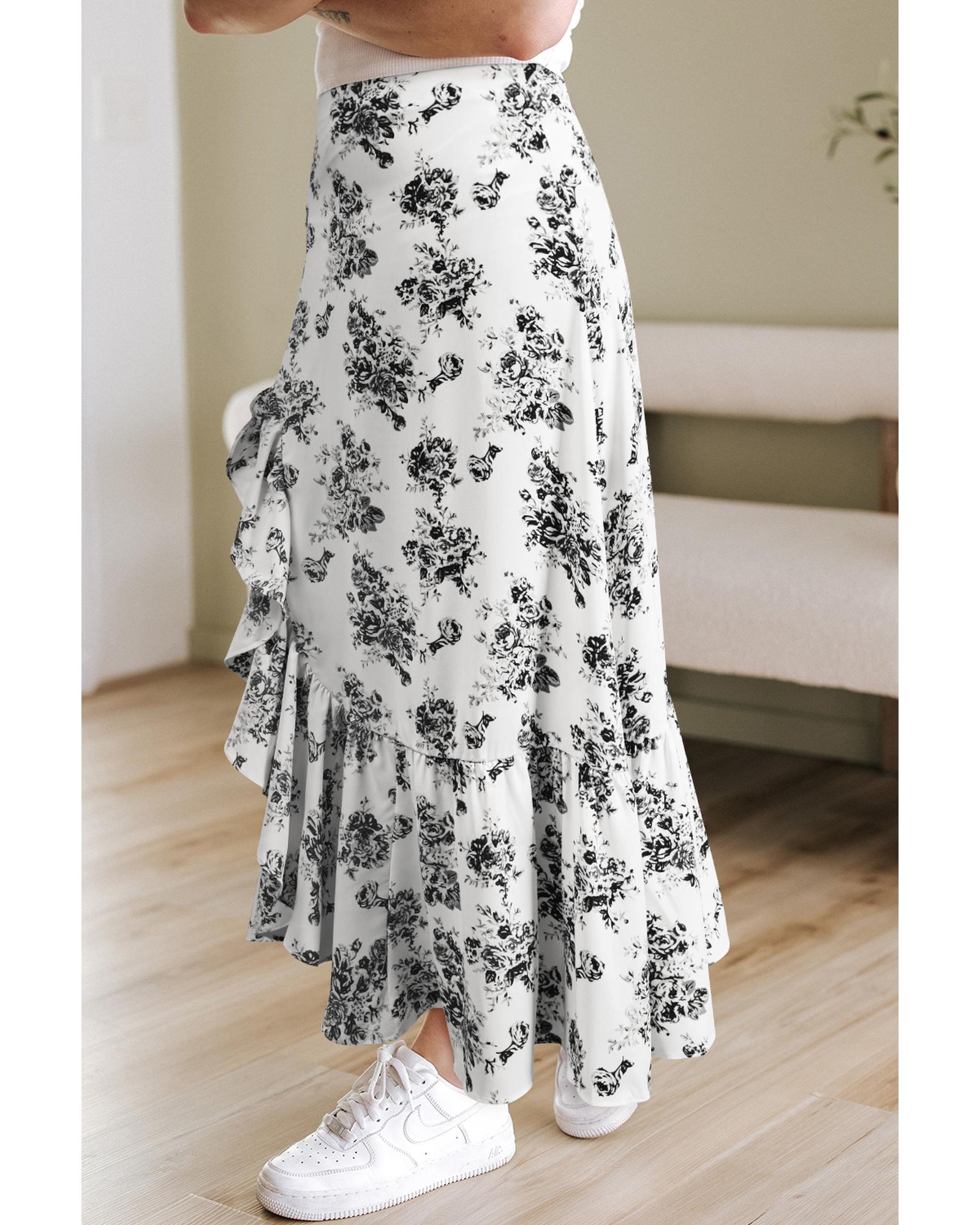 Black Boho Floral High Waist Ruffle Split Maxi Skirt – L