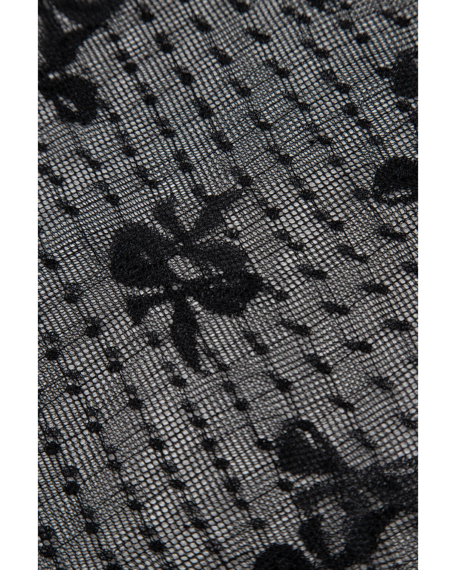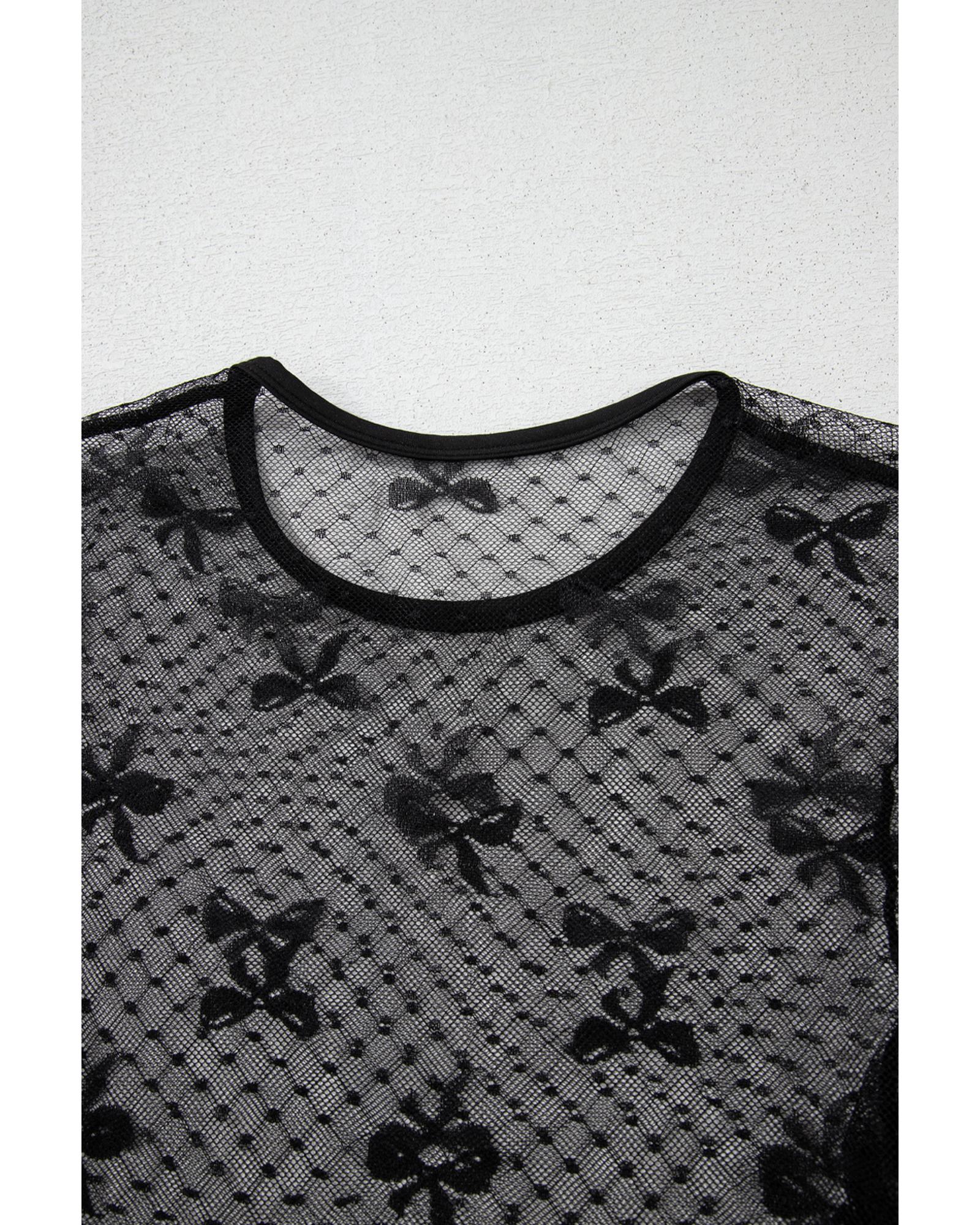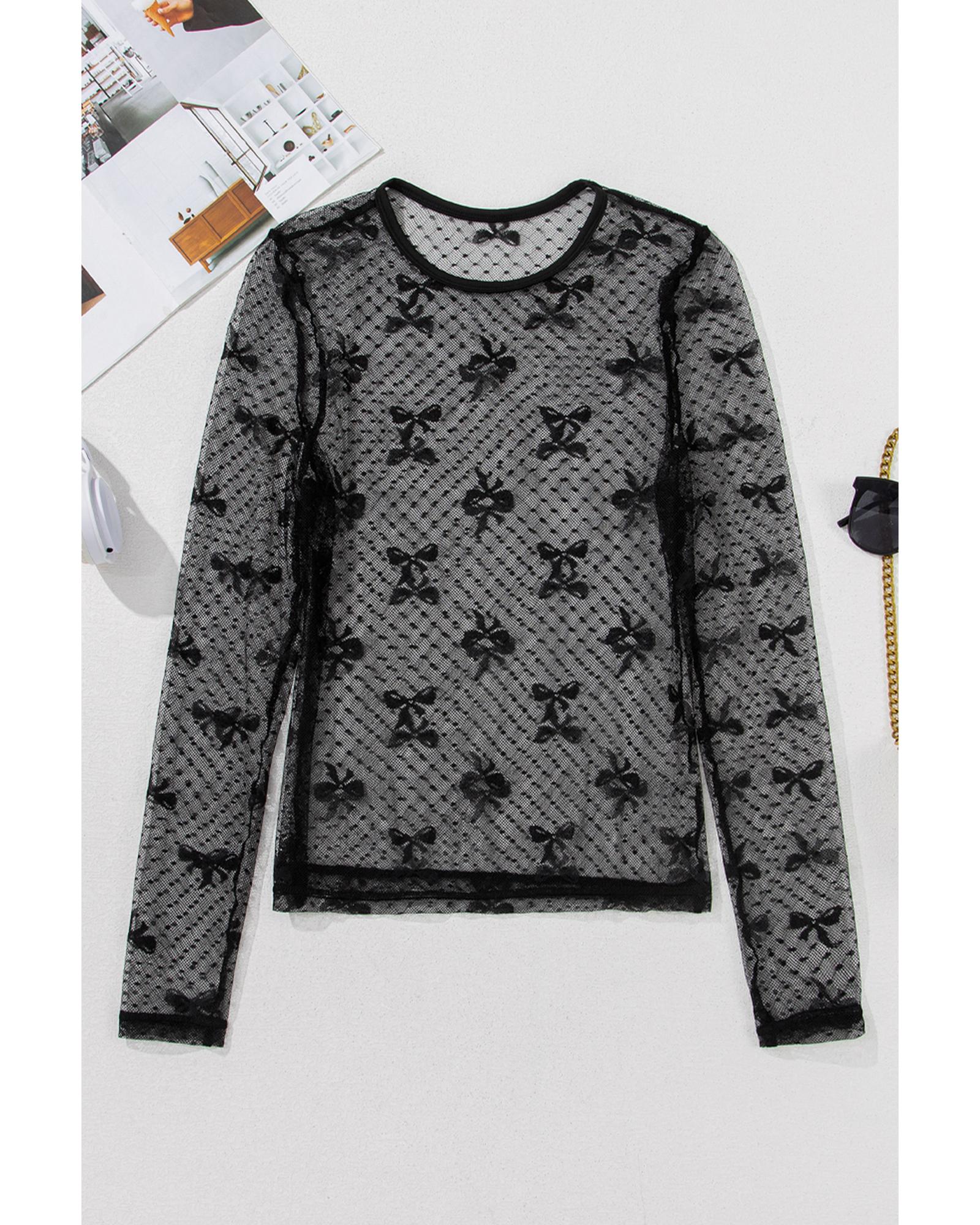 Black Bow Pattern Accent Mesh Long Sleeve Top – M