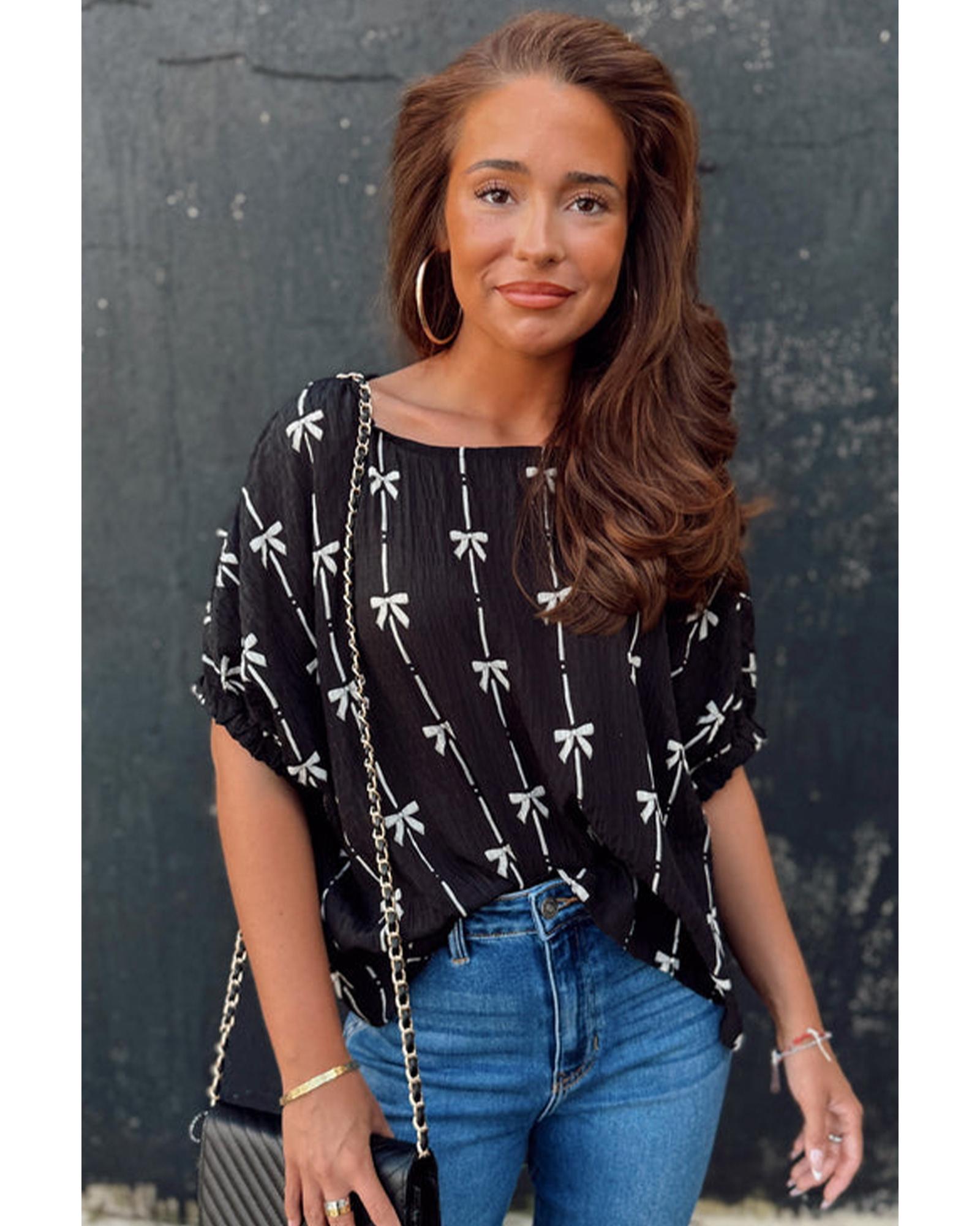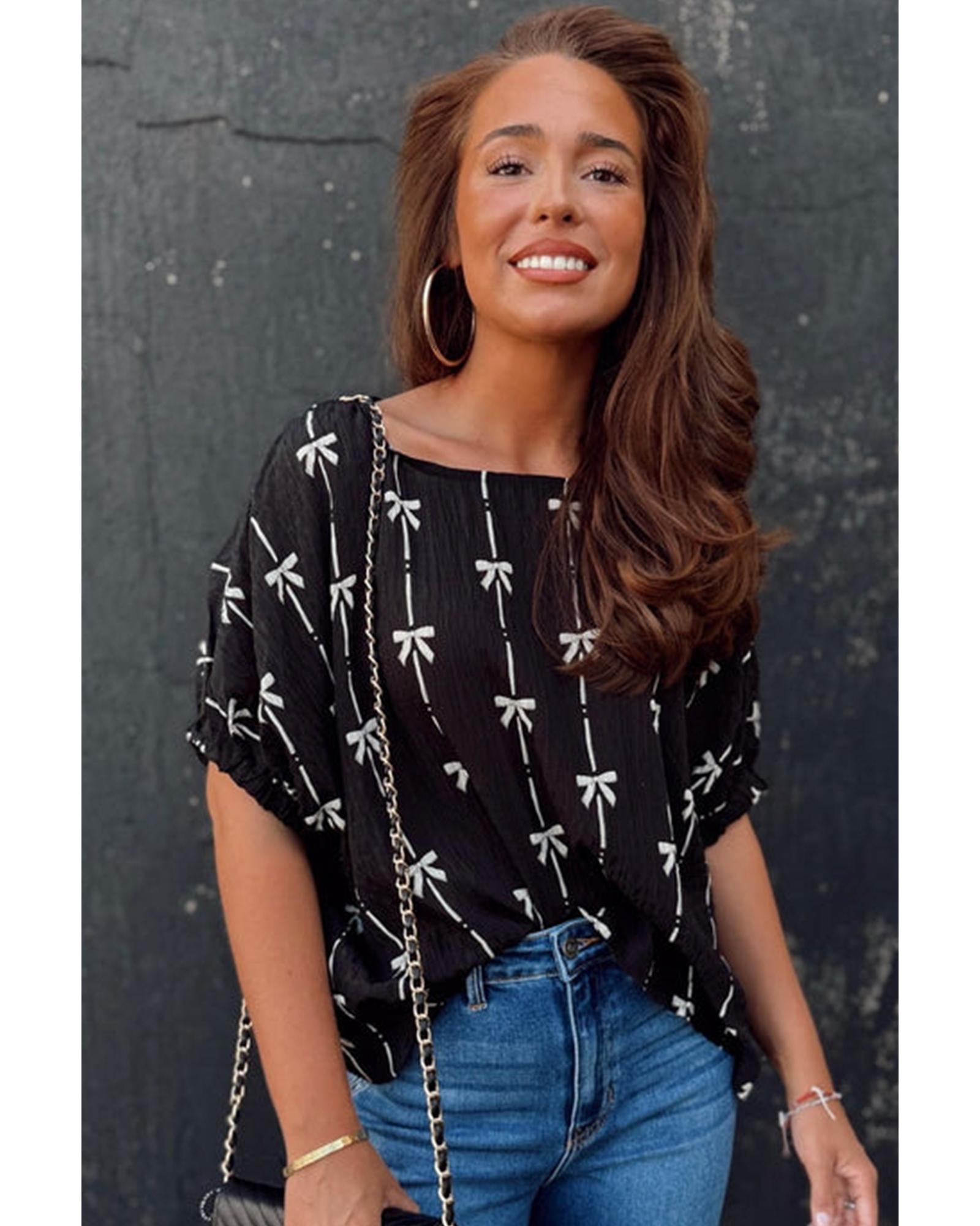 Light Blue Color Block Stitching Sleeve Round Neck Oversize Top - S