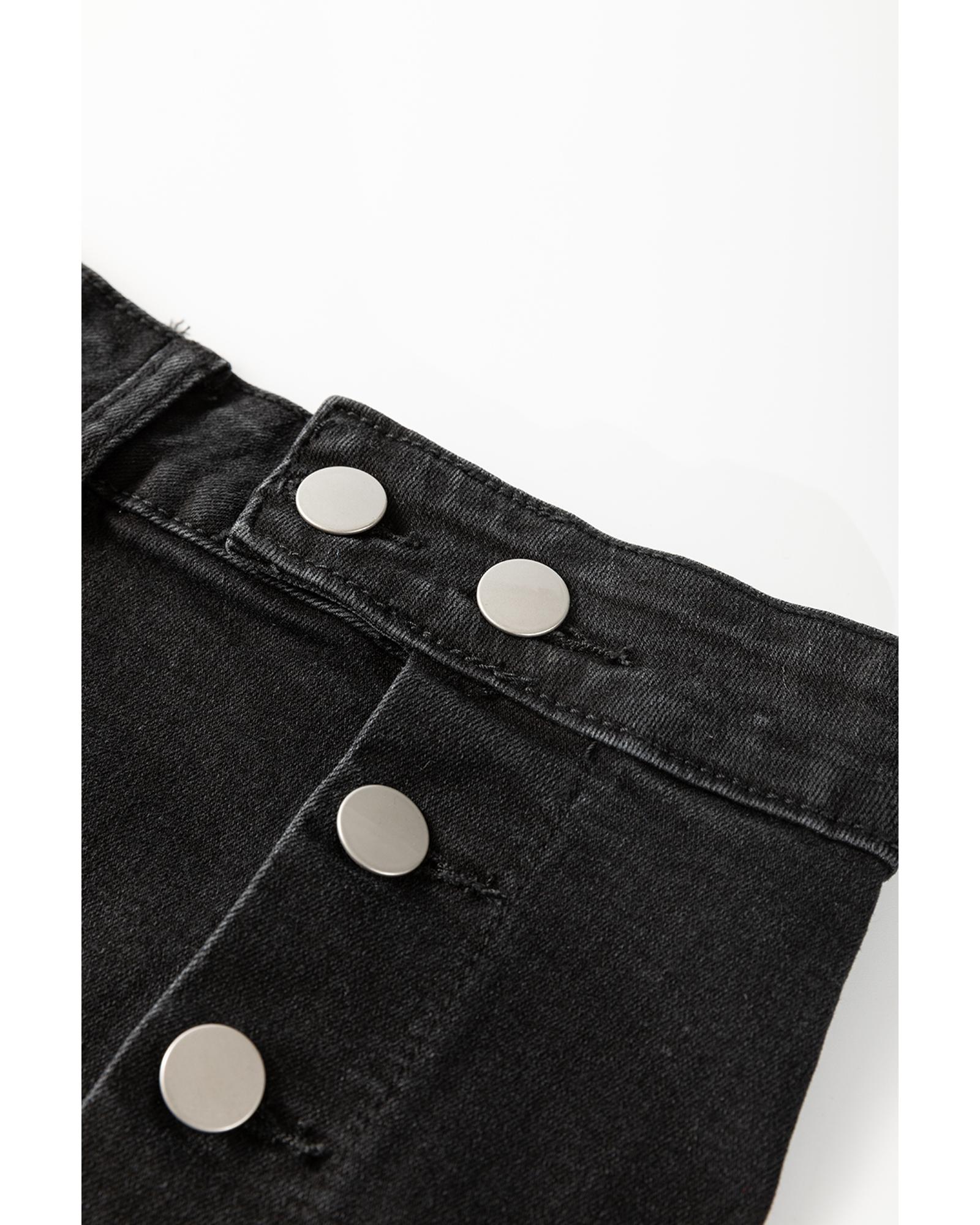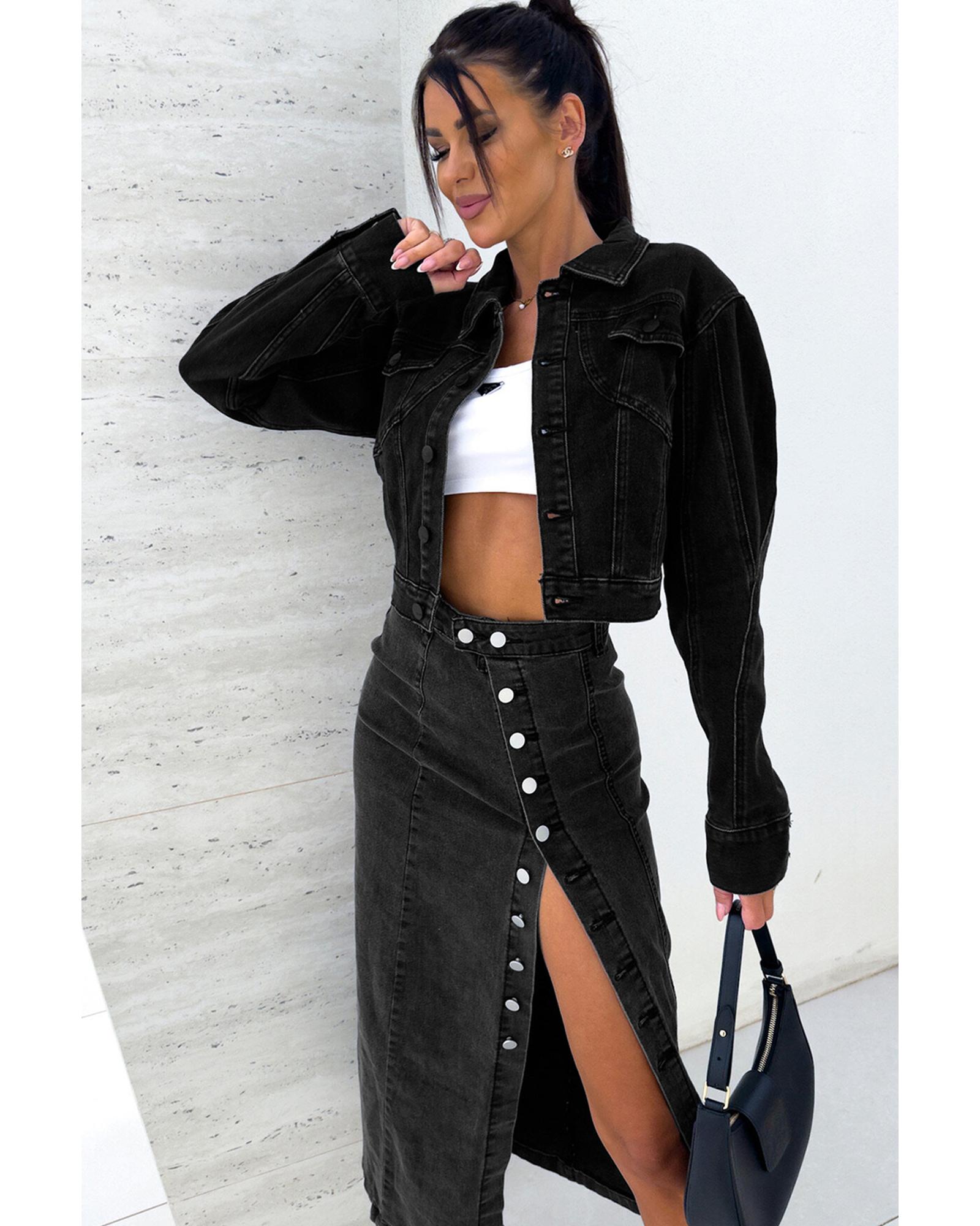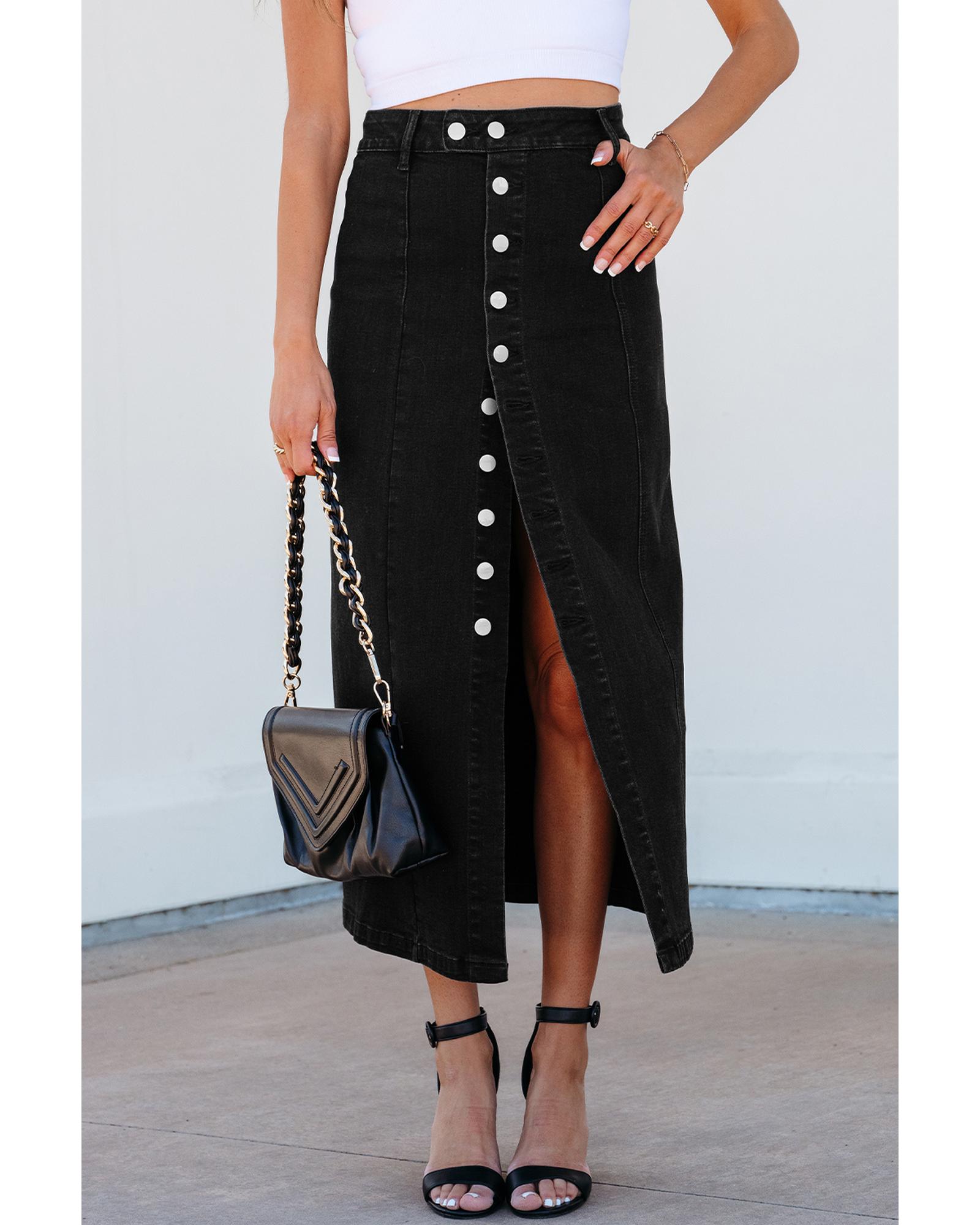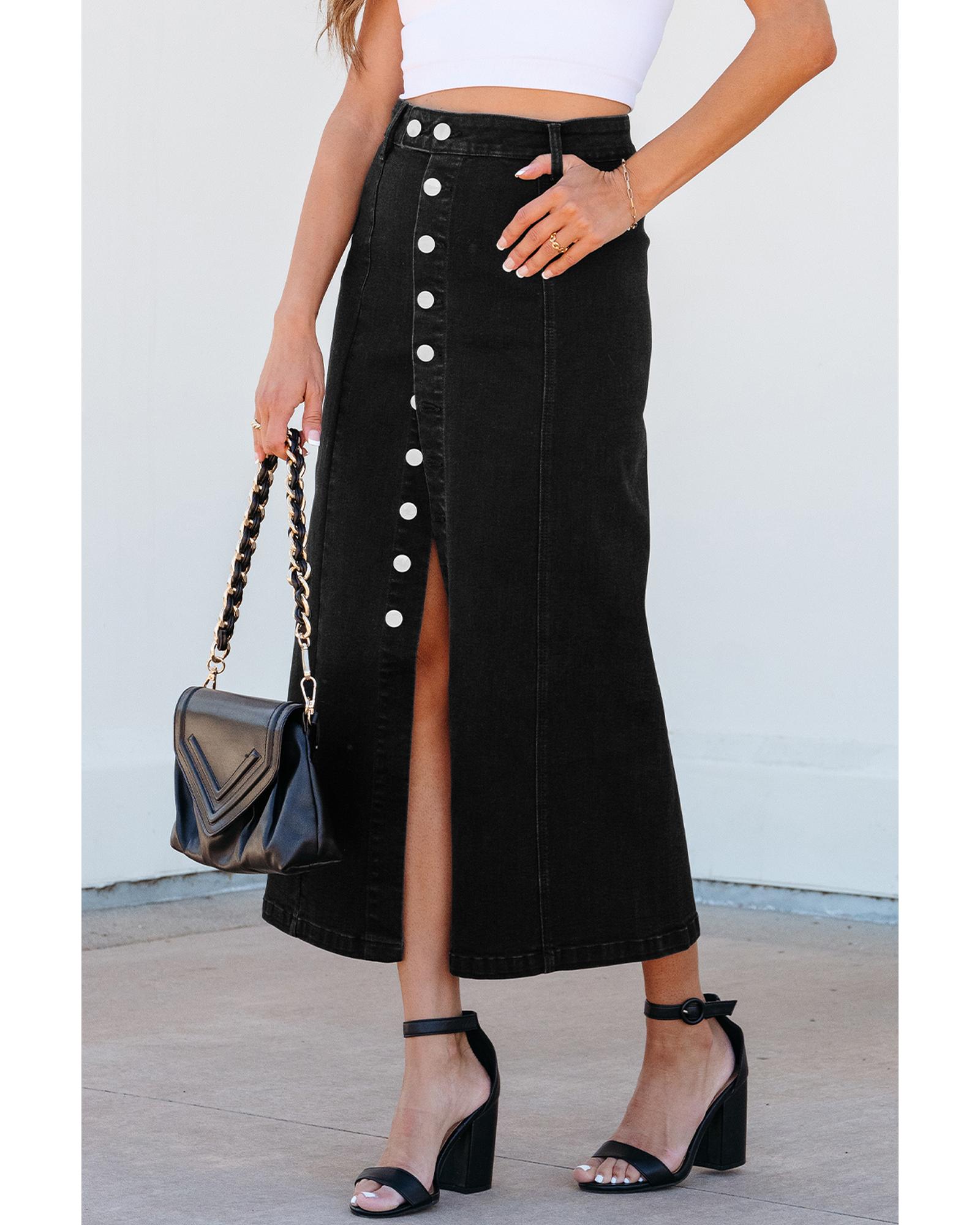 Black Button Fly Side Split High Waist Denim Midi Skirt – XL