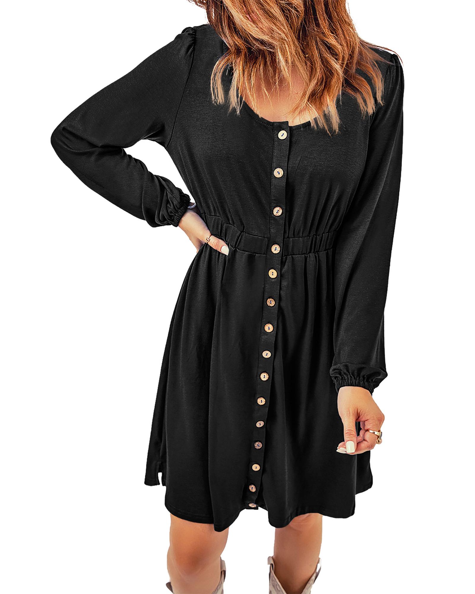 • Black button up high waist long sleeve dress