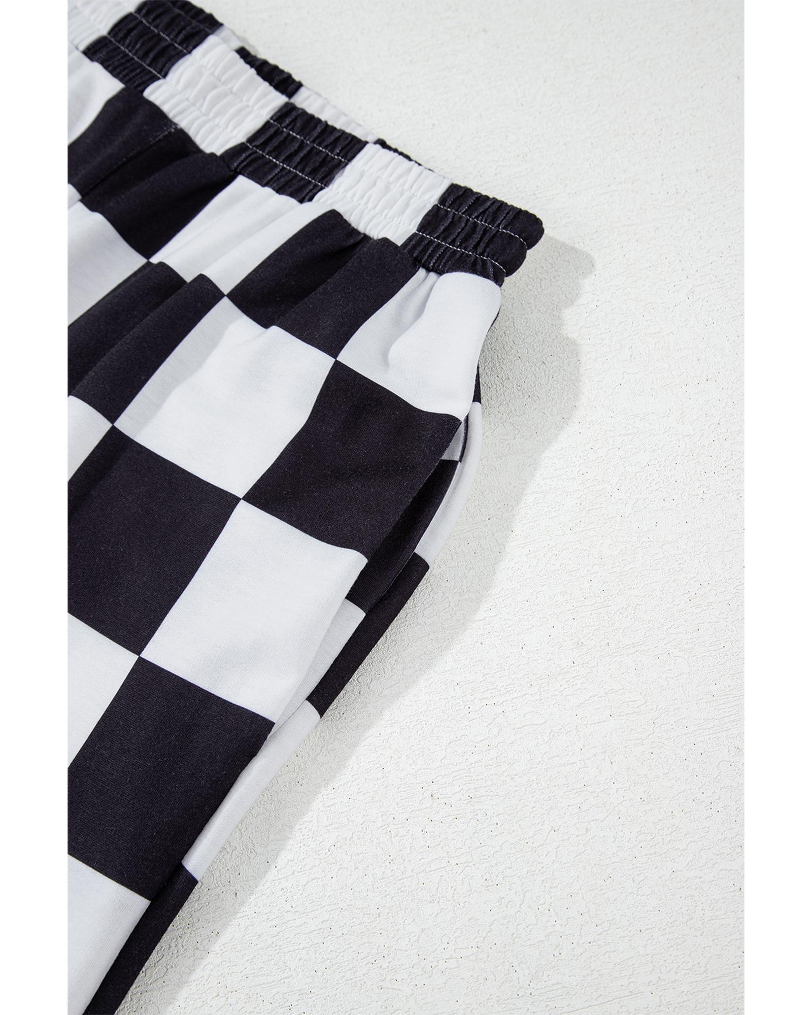 - Black Checkerboard Elastic Waist Pocketed Joggers