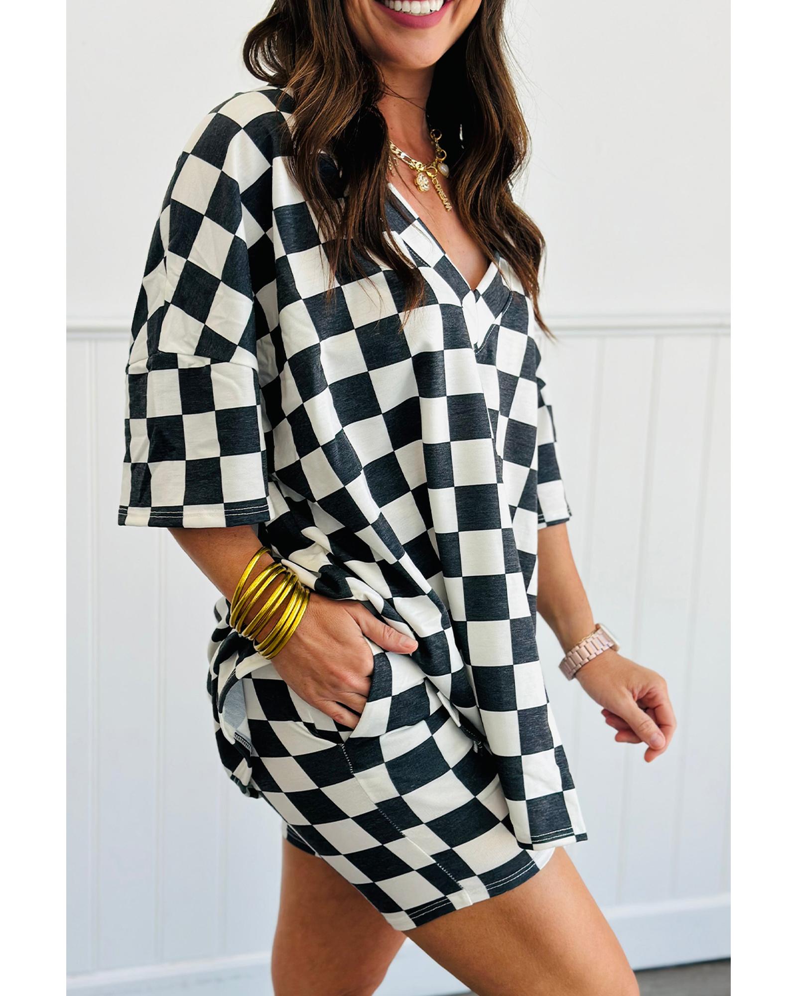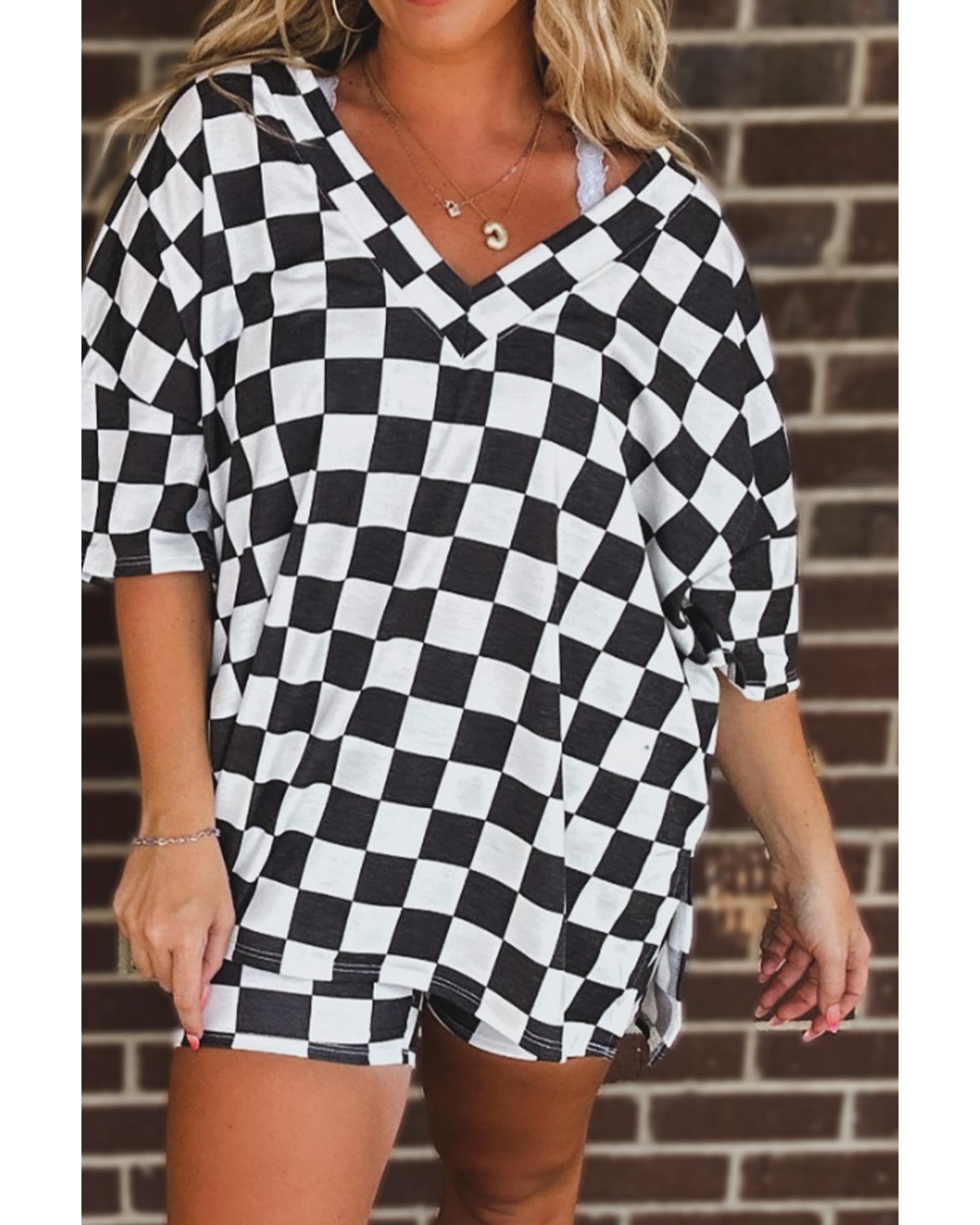 Black Checkered Pattern Tee and Shorts Plus Size Two Piece Set - 3X Original price was: $70.99.Current price is: $37.99.
