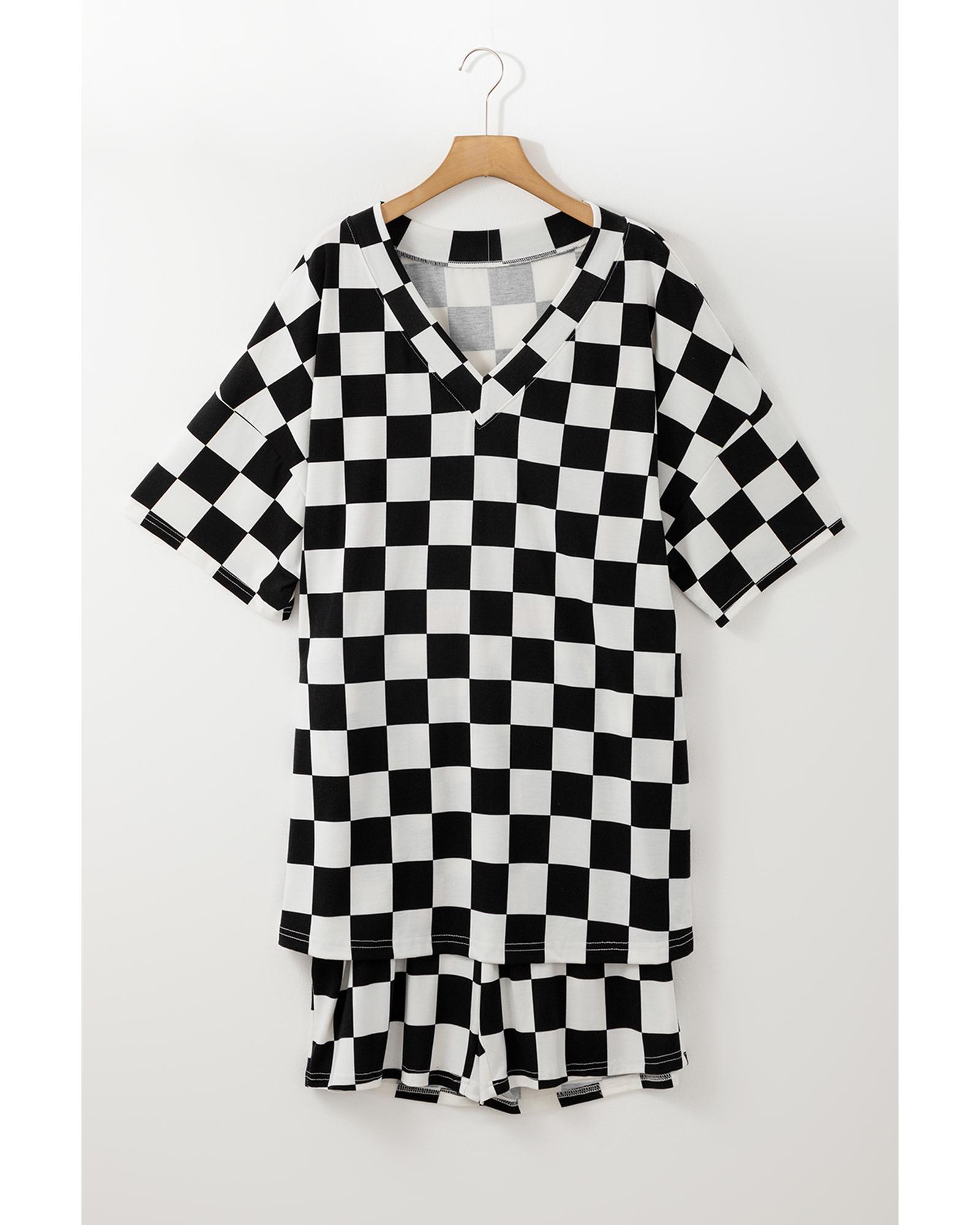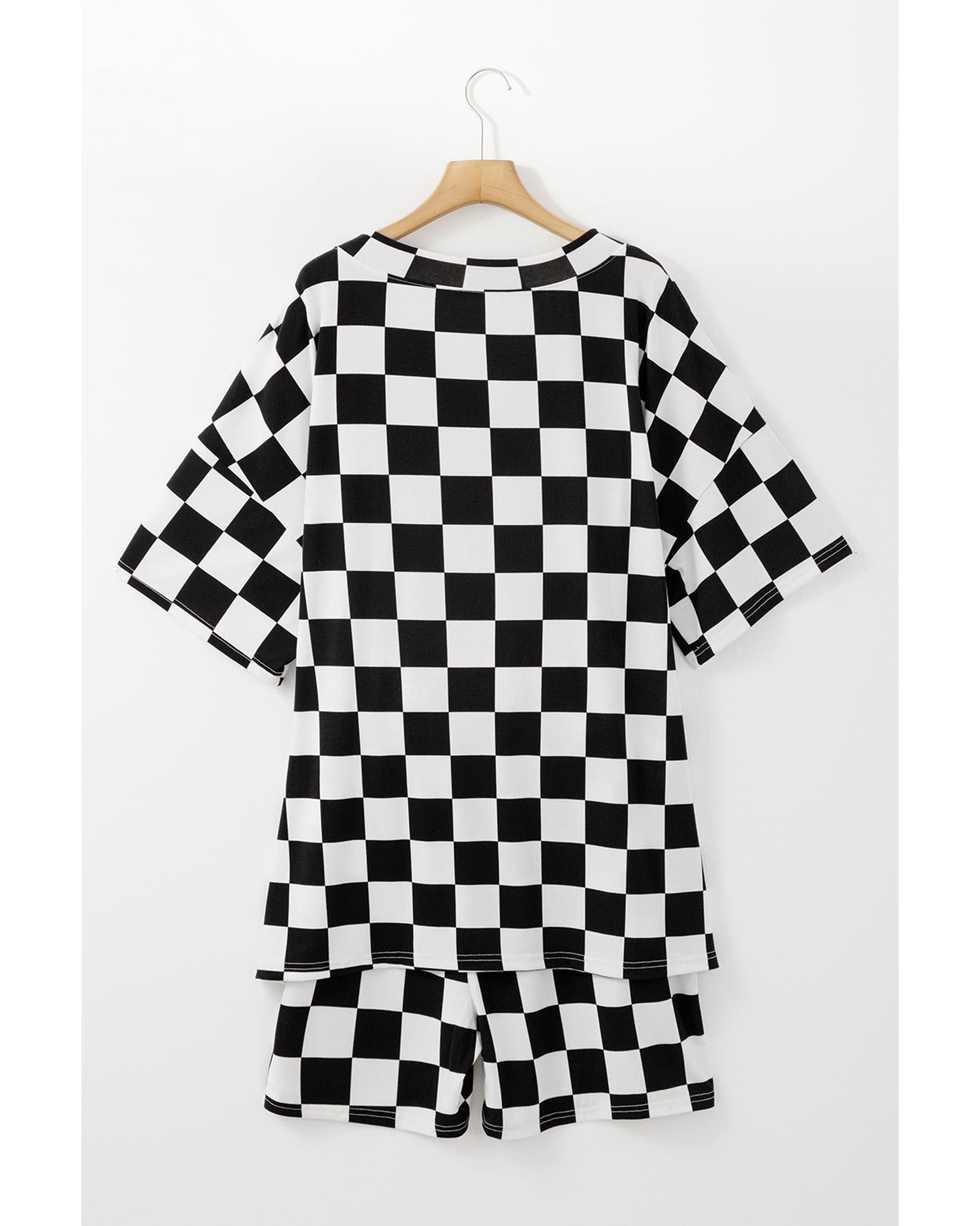 Black Checkered Pattern Tee and Shorts Plus Size Two Piece Set – 1X