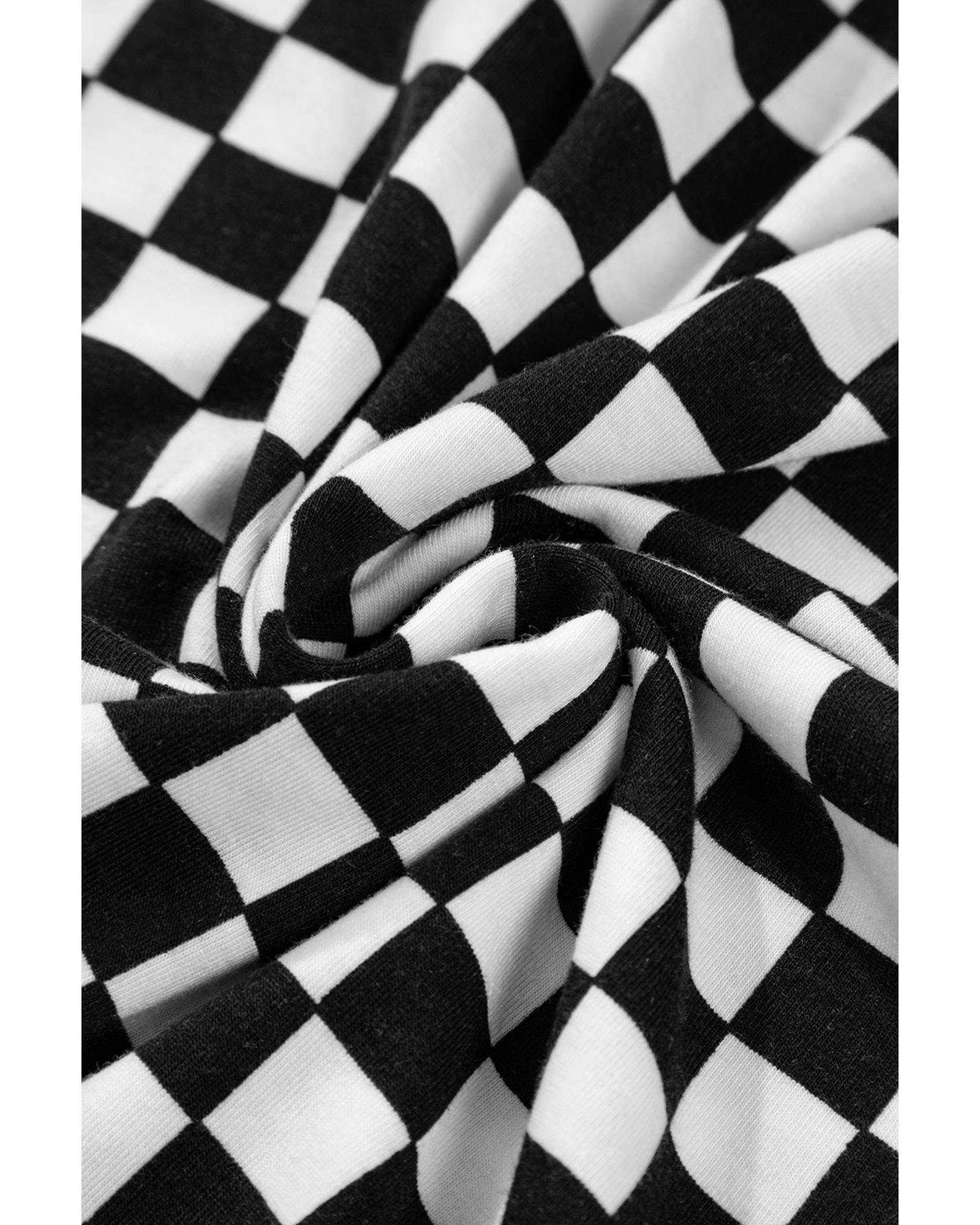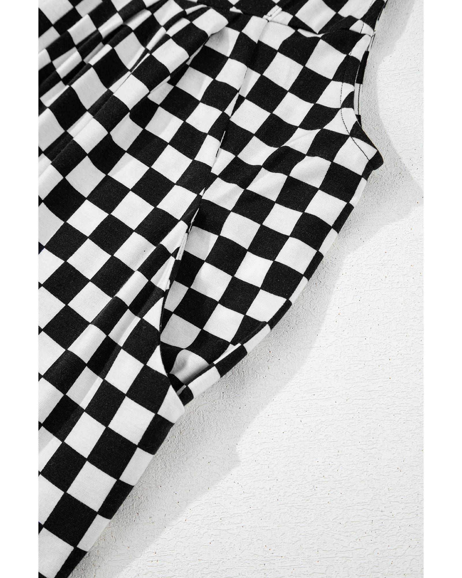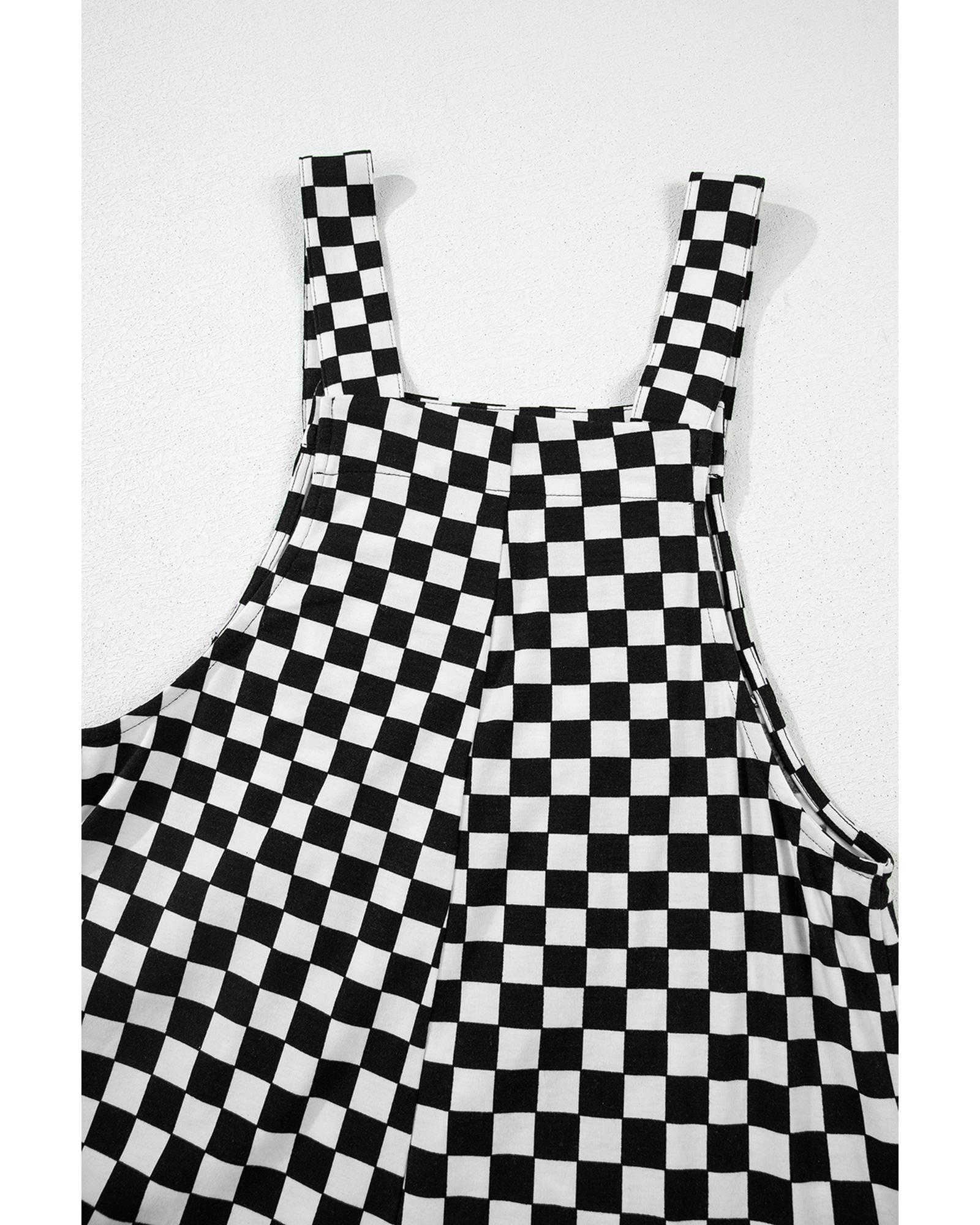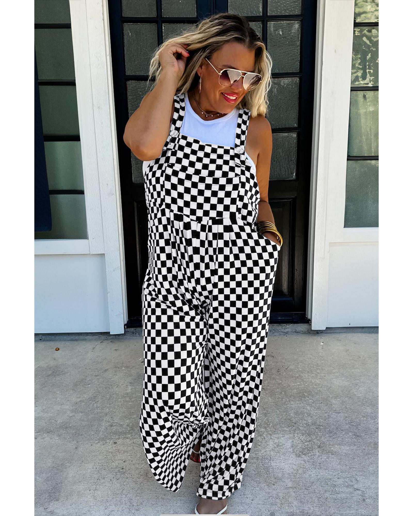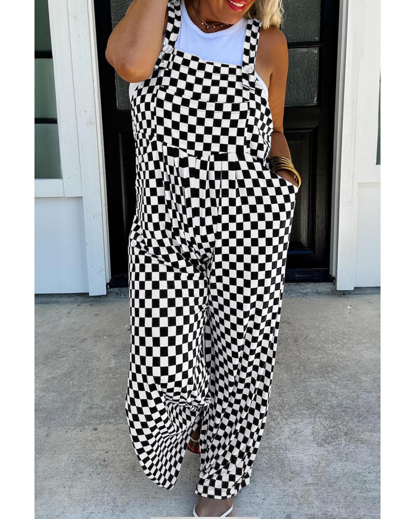Black Checkered Print Pocketed Wide Leg Jumpsuit – M