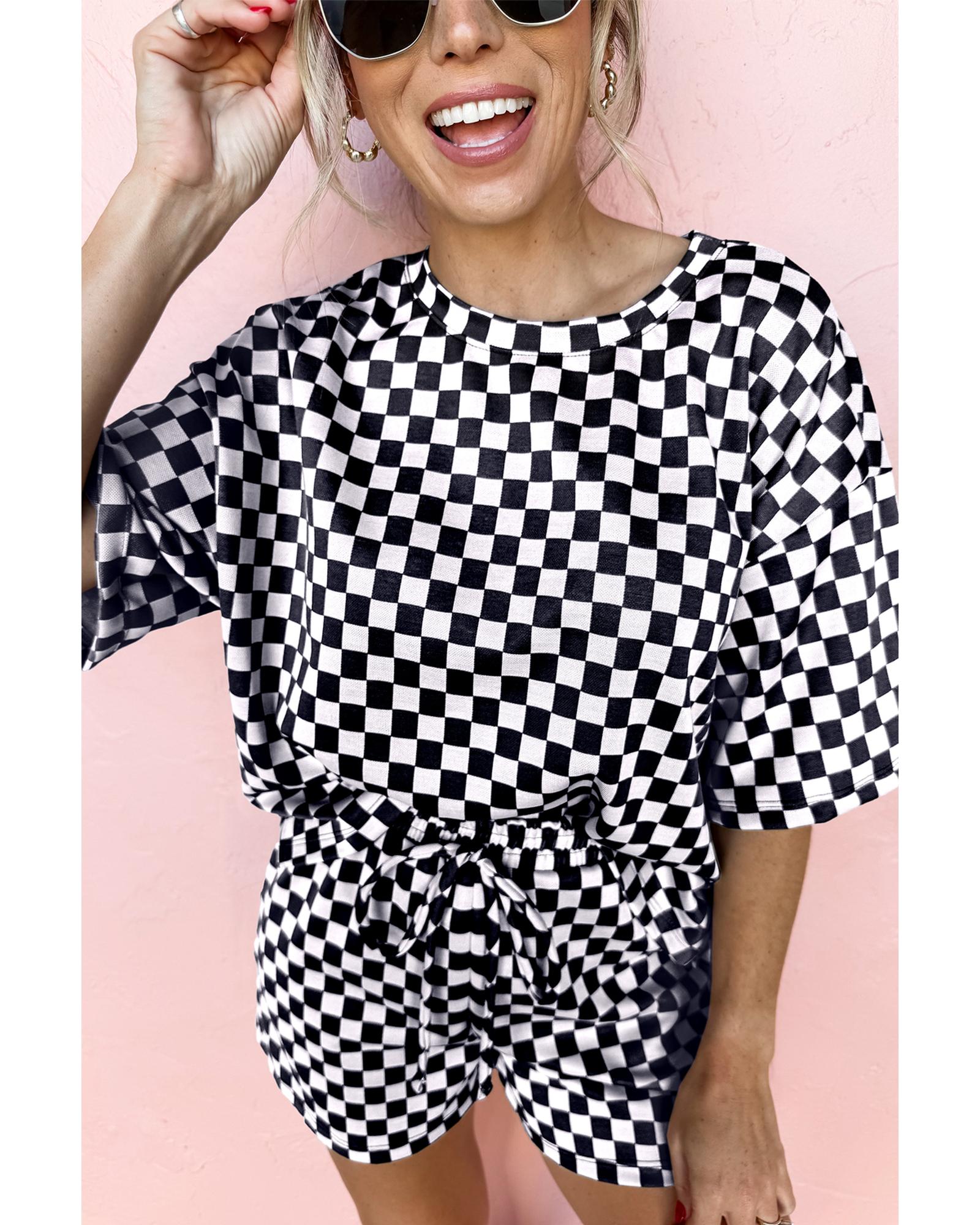 Blue Solid Top and Christmas Pants Two Piece Lounge Set - XL