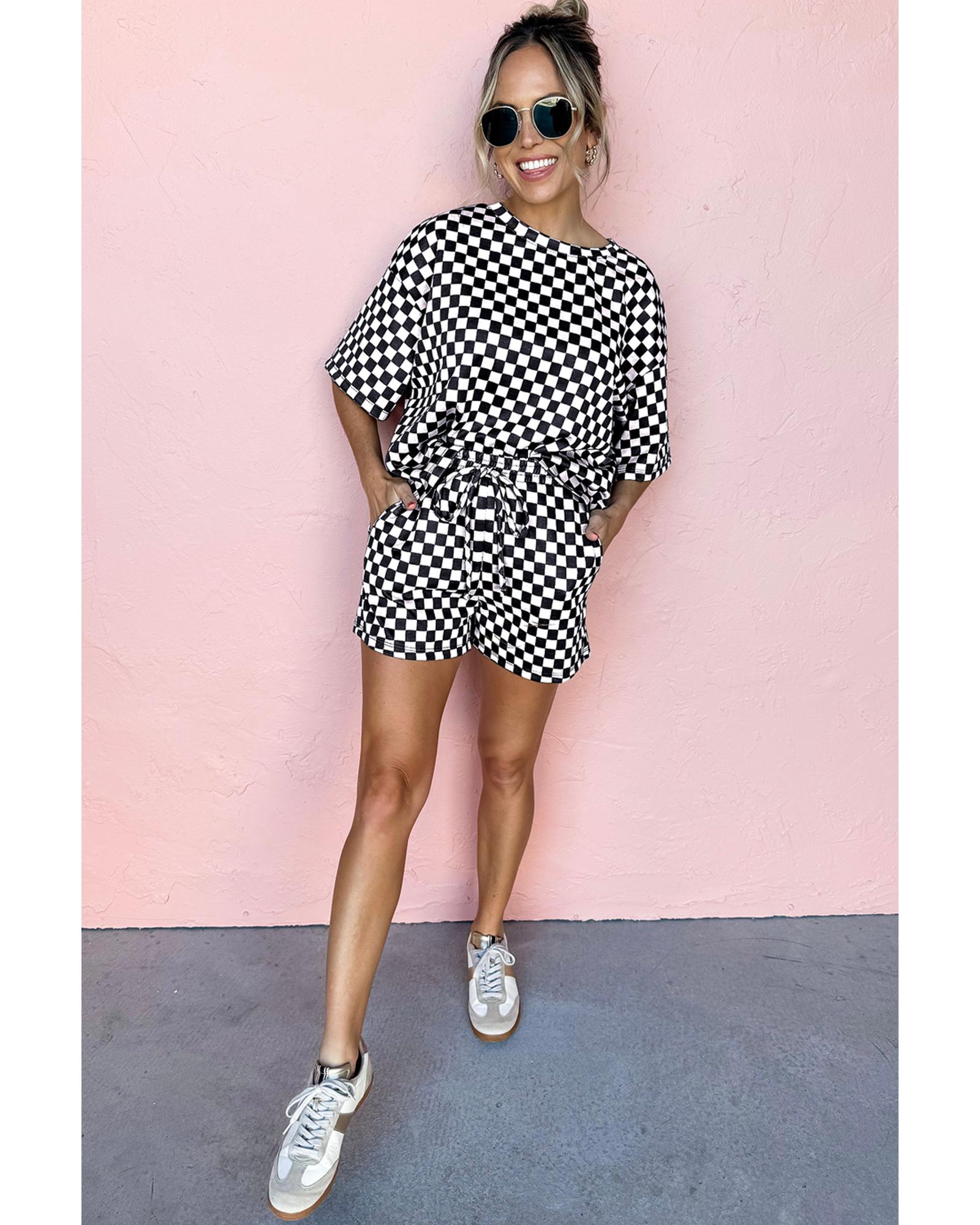 Red Stripe Buttoned V Neck Top and Knotted Waist Pants Lounge Set - M