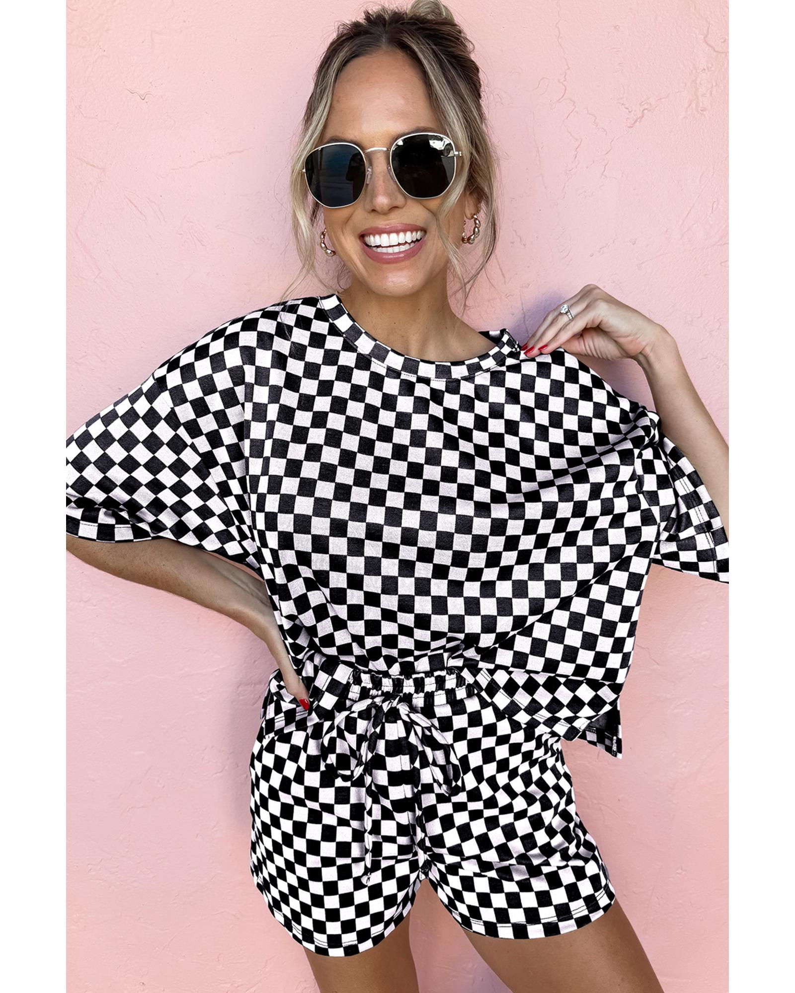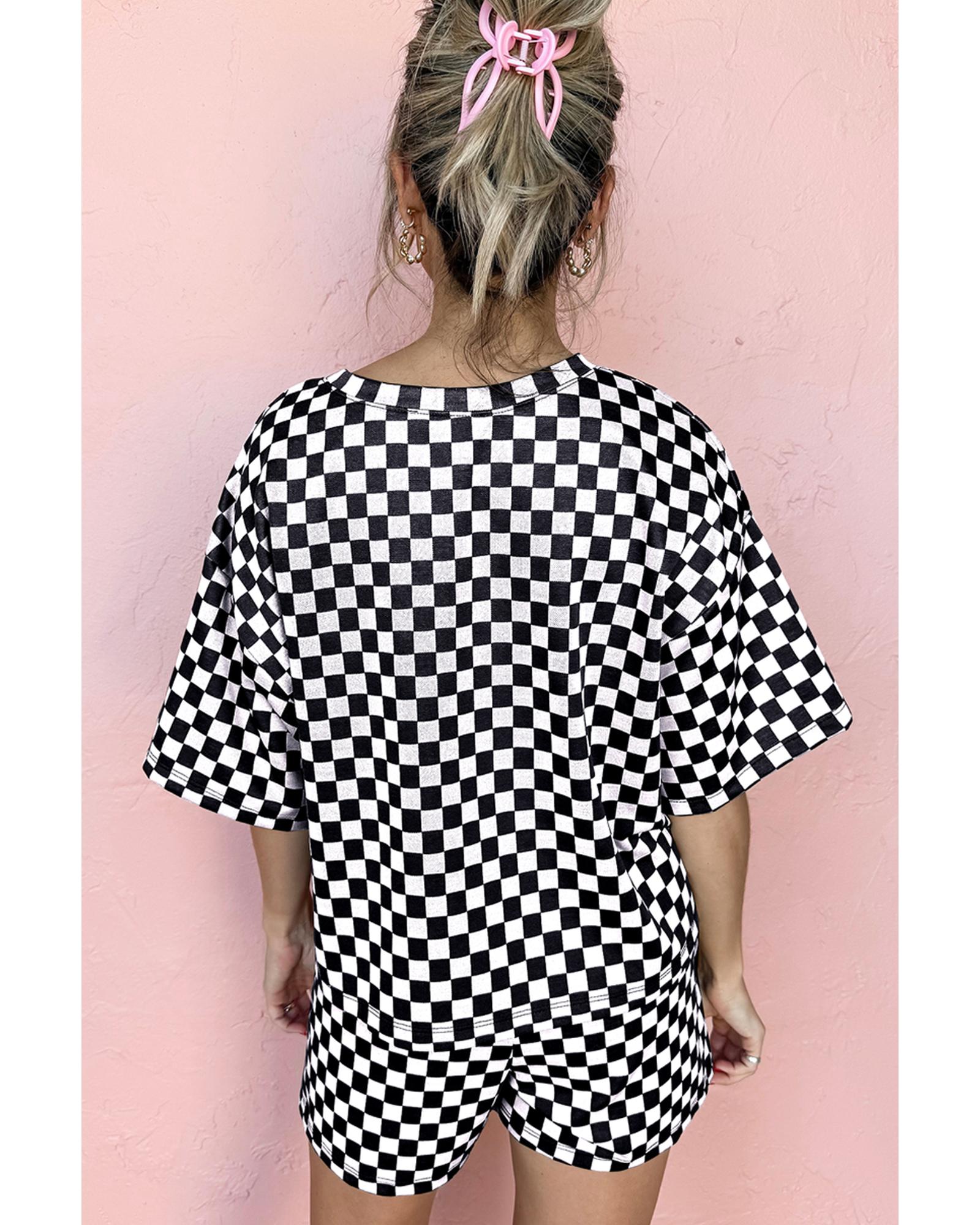 Black Checkered Top and Short Casual 2pcs Set – XL