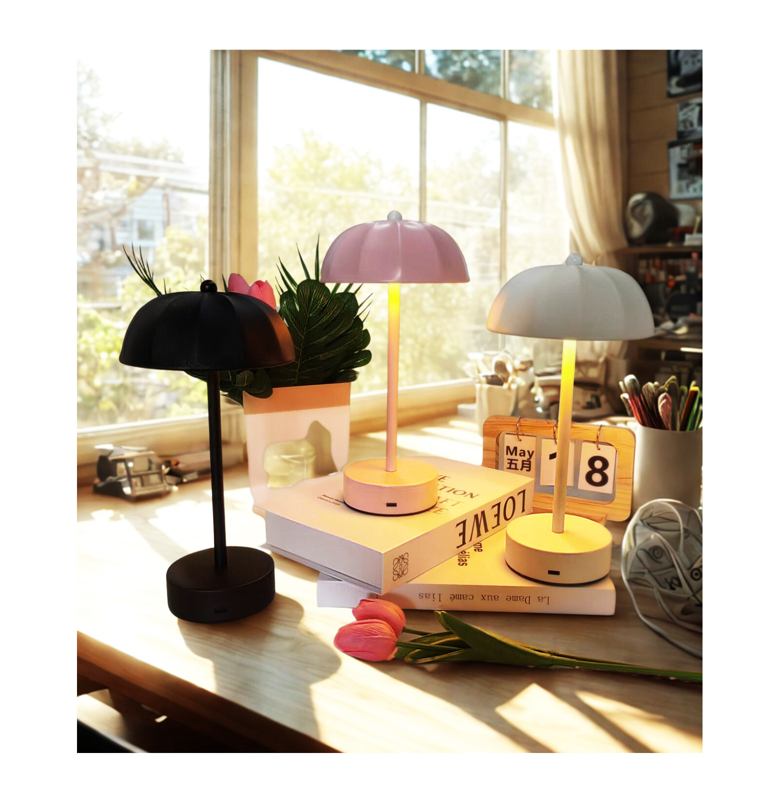 Black Chic Mushroom LED Table Lamp – Rechargeable Cordless Touch Control 3-Color Adjustable Light for Bedroom Living Room Decor