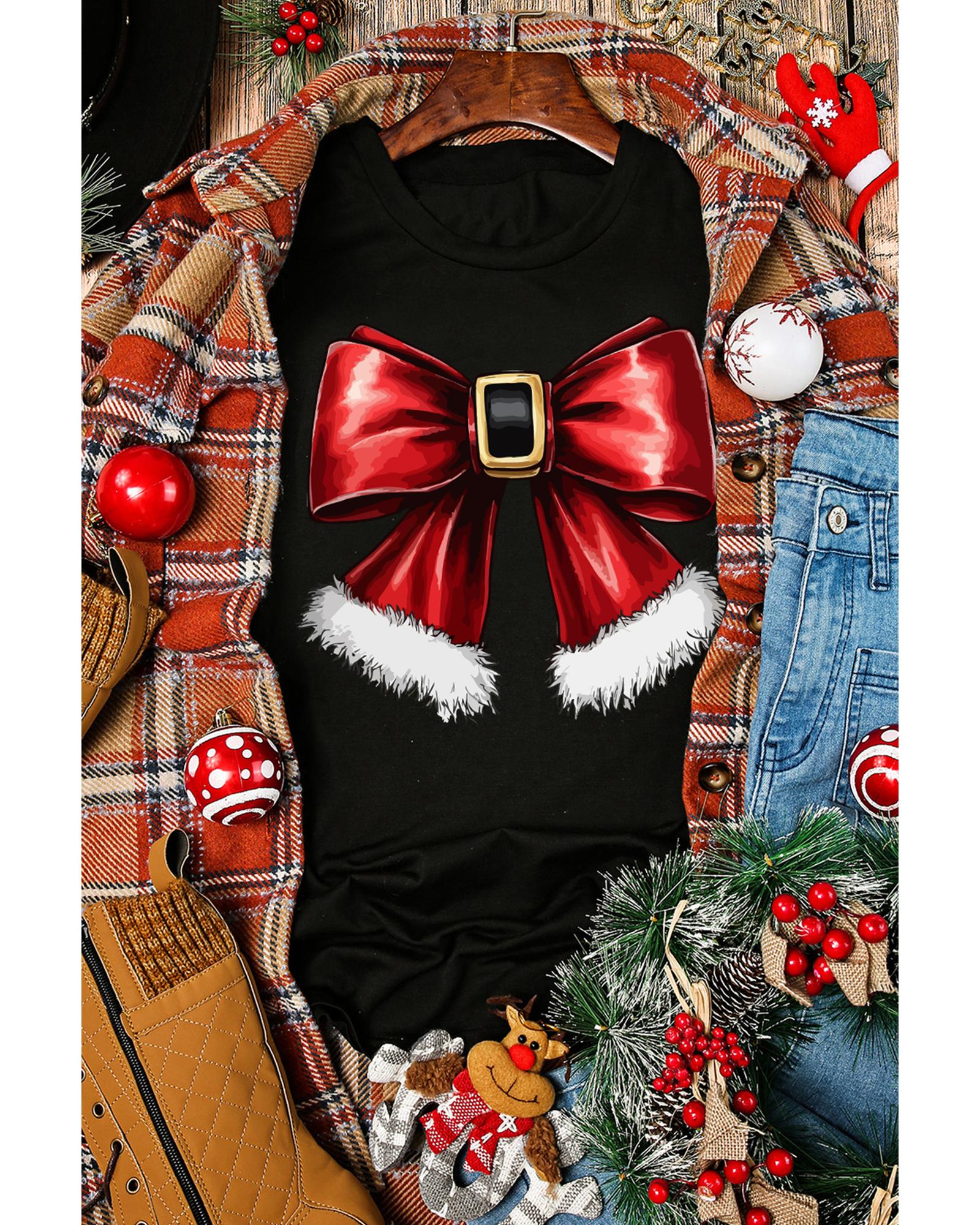 - Black Christmas Big Bowknot Graphic Crewneck T