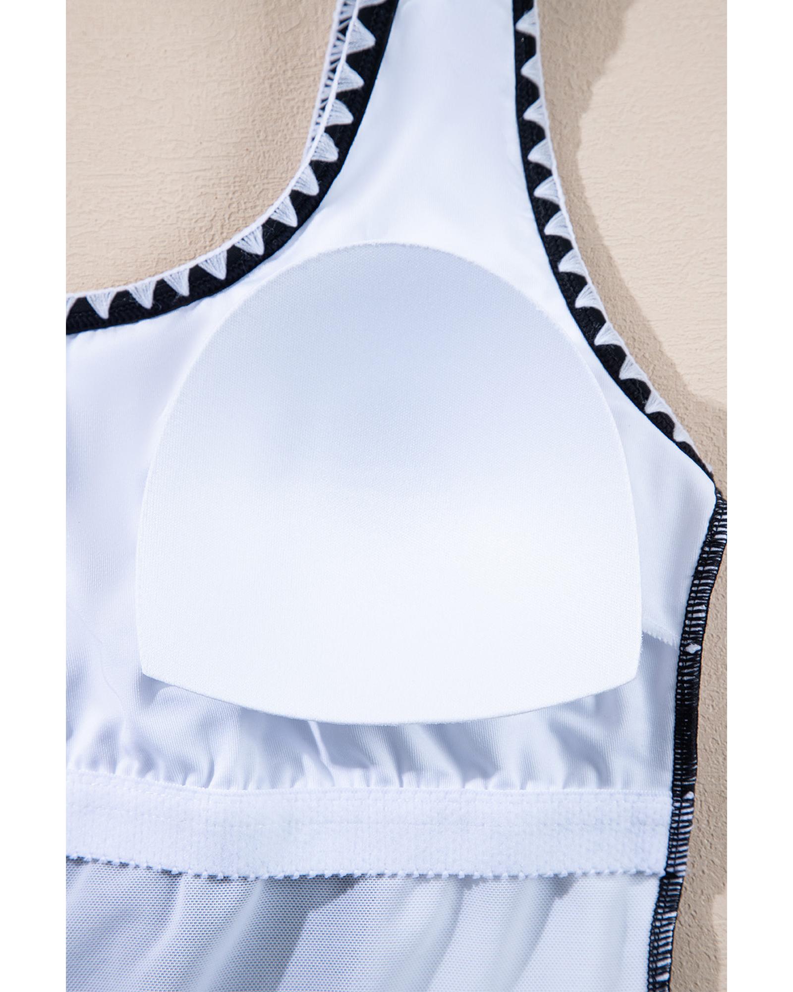 Black Color Block Ric Rac Trim U Neck One Piece Swimsuit – XL