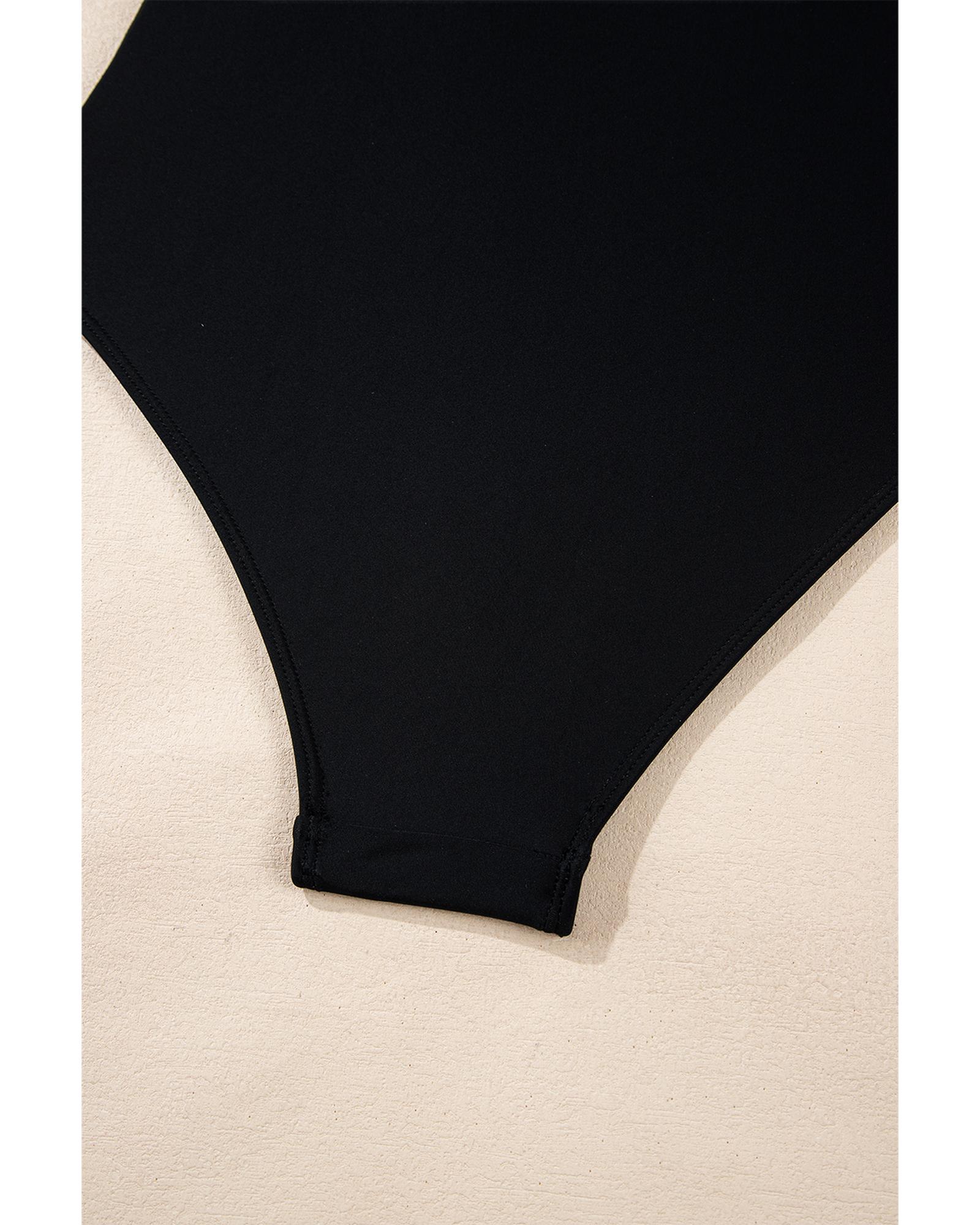 Black Colorblock Edge Belted One Piece Swimsuit – S