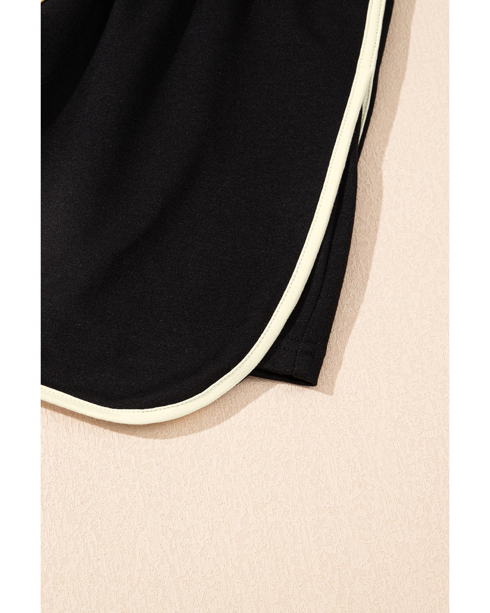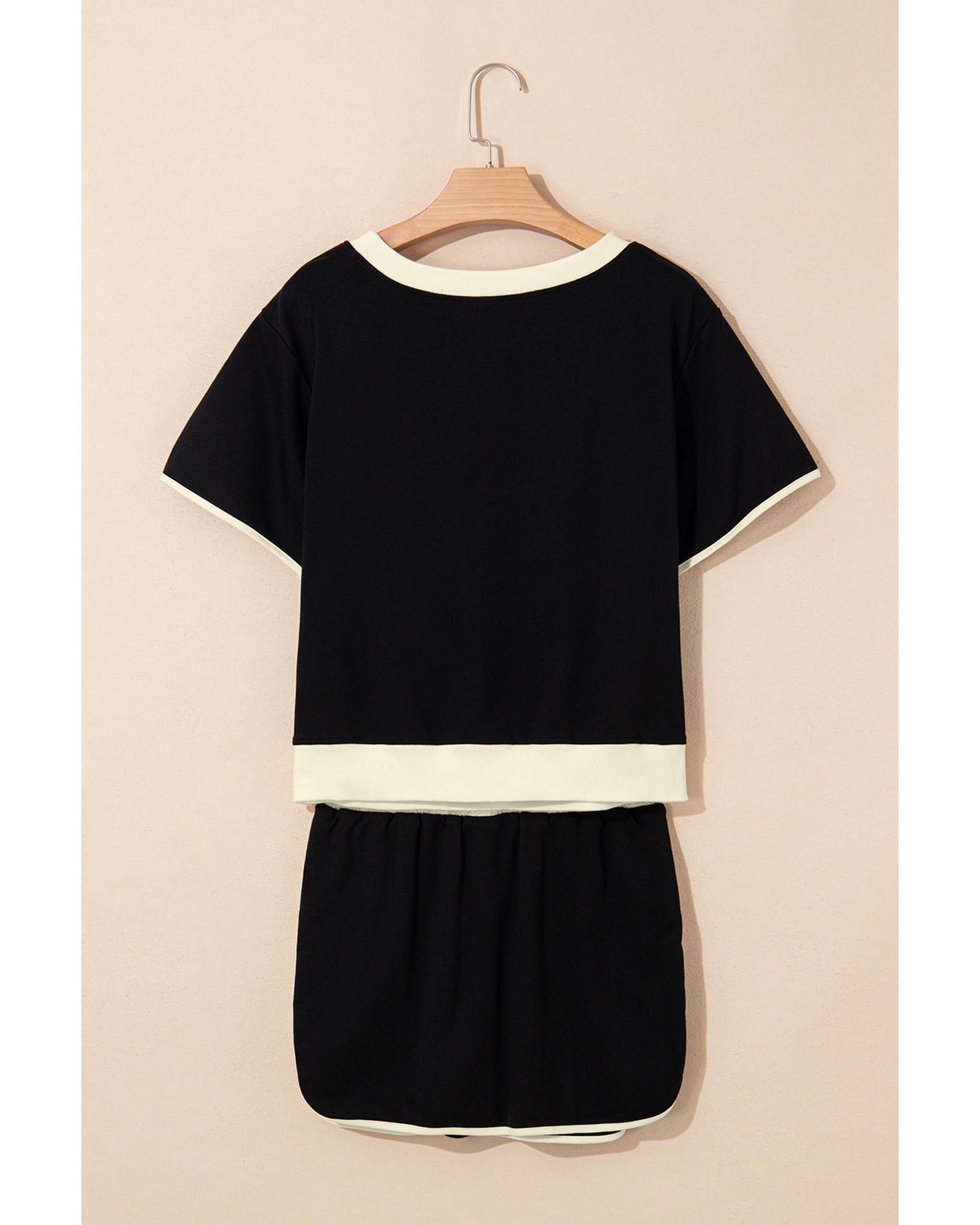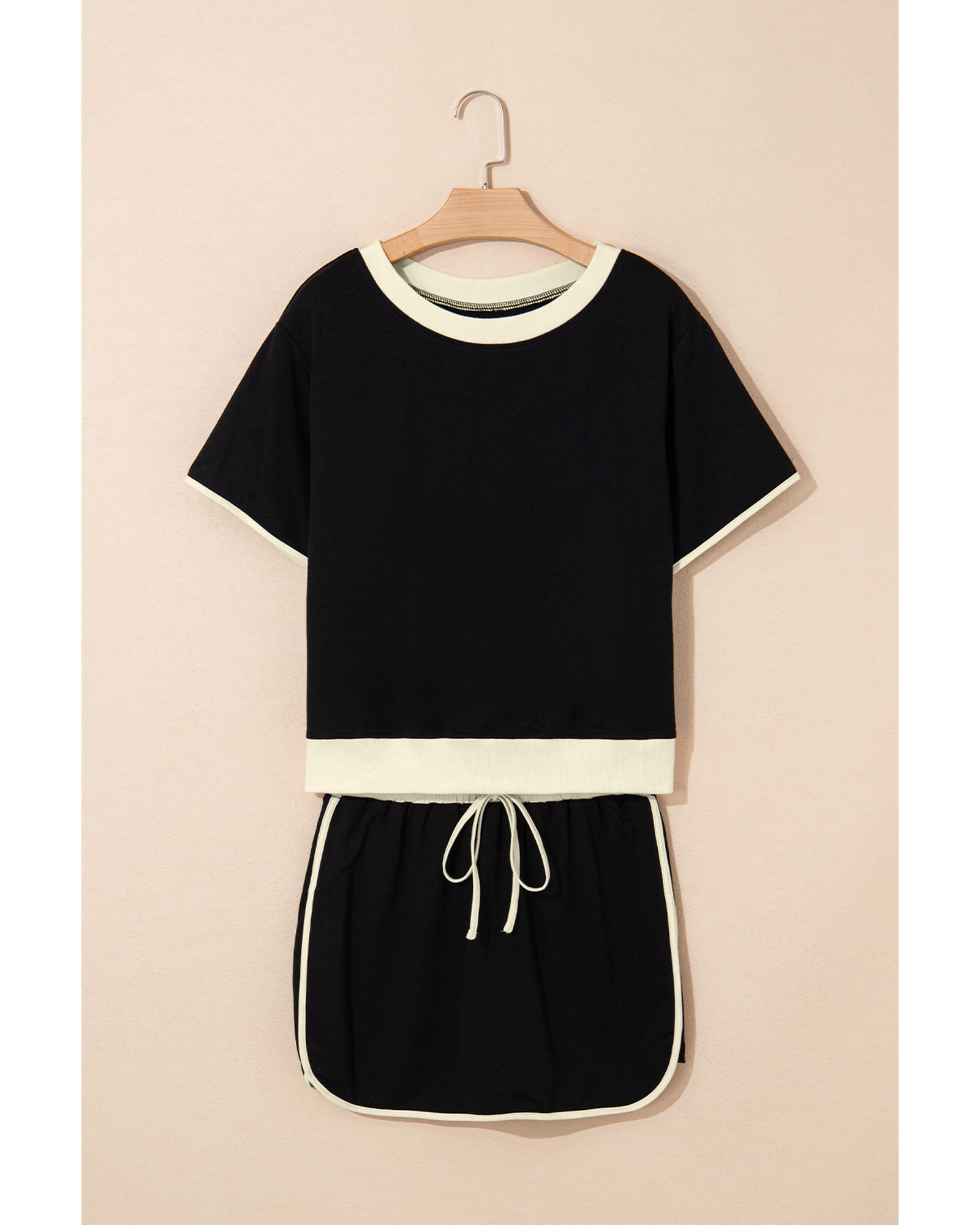 Black Colorblock Edge Drop Shoulder T Shirt and Skort 2Pcs Set – XL