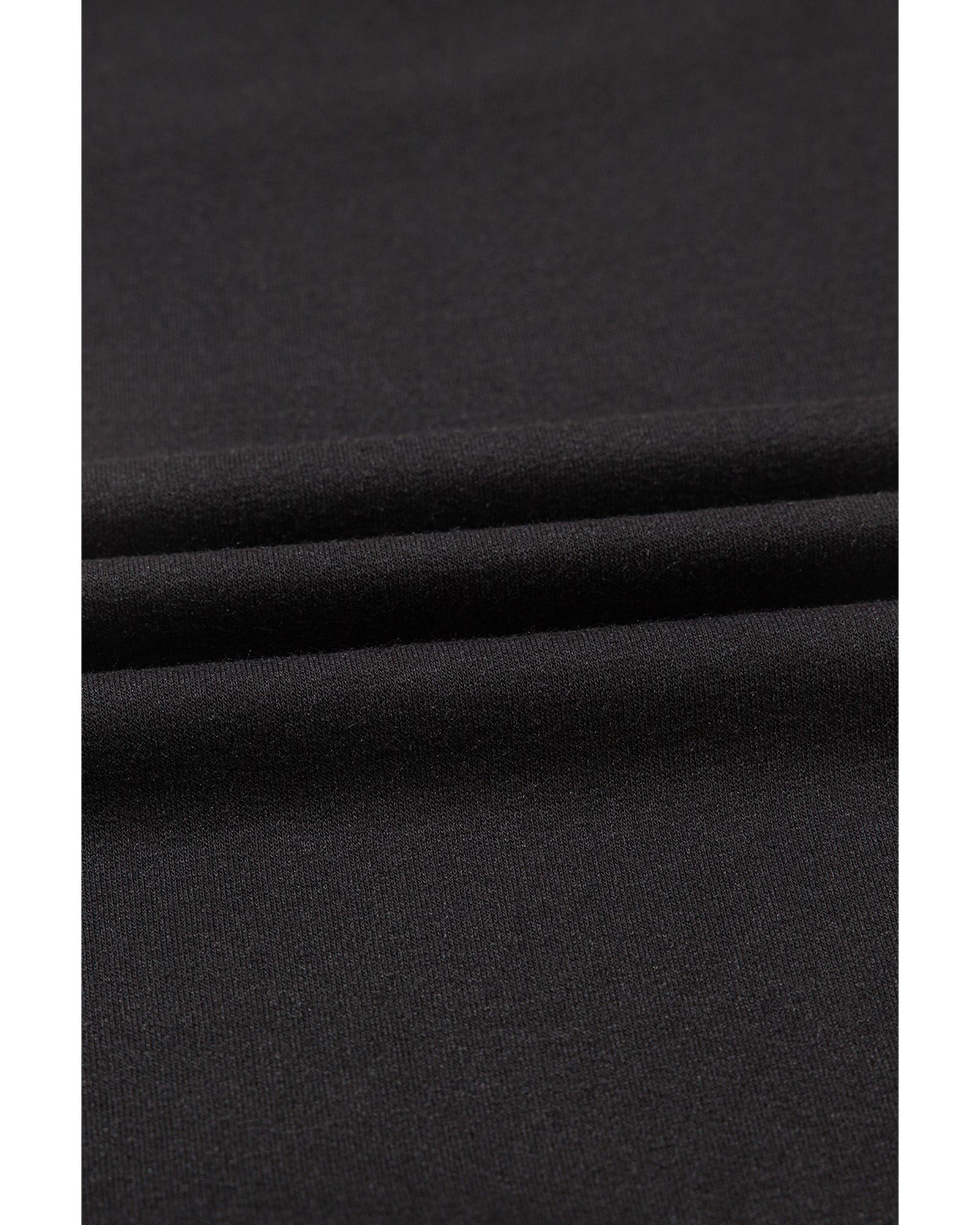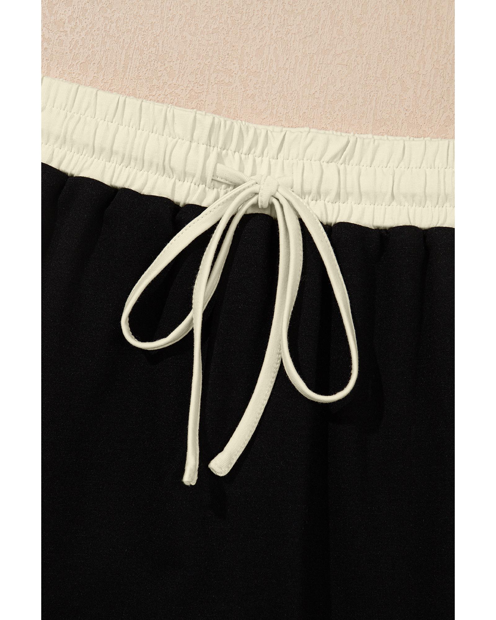 Black Color Block Pocketed T Shirt and Wide Leg Pants Set - XL