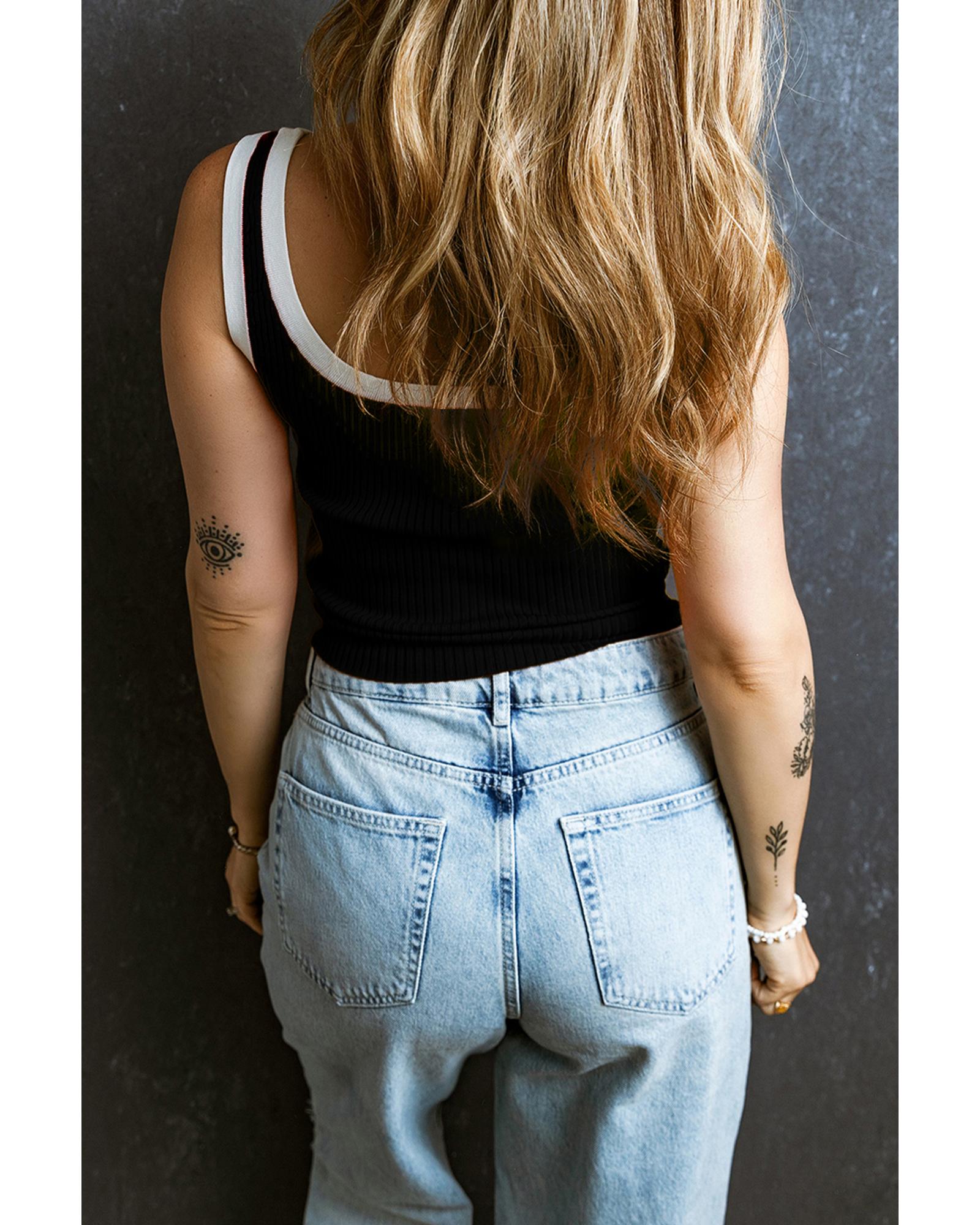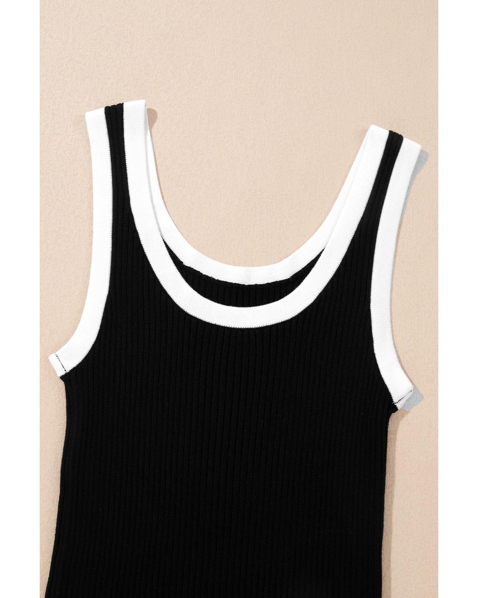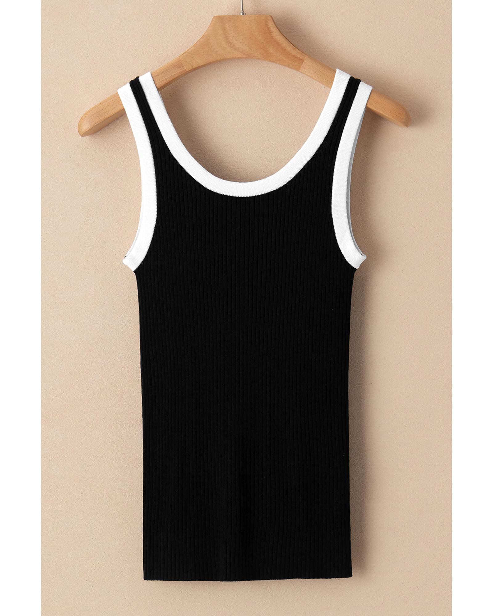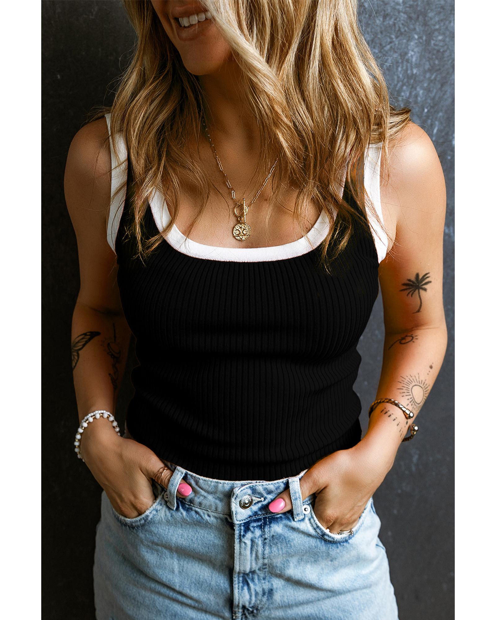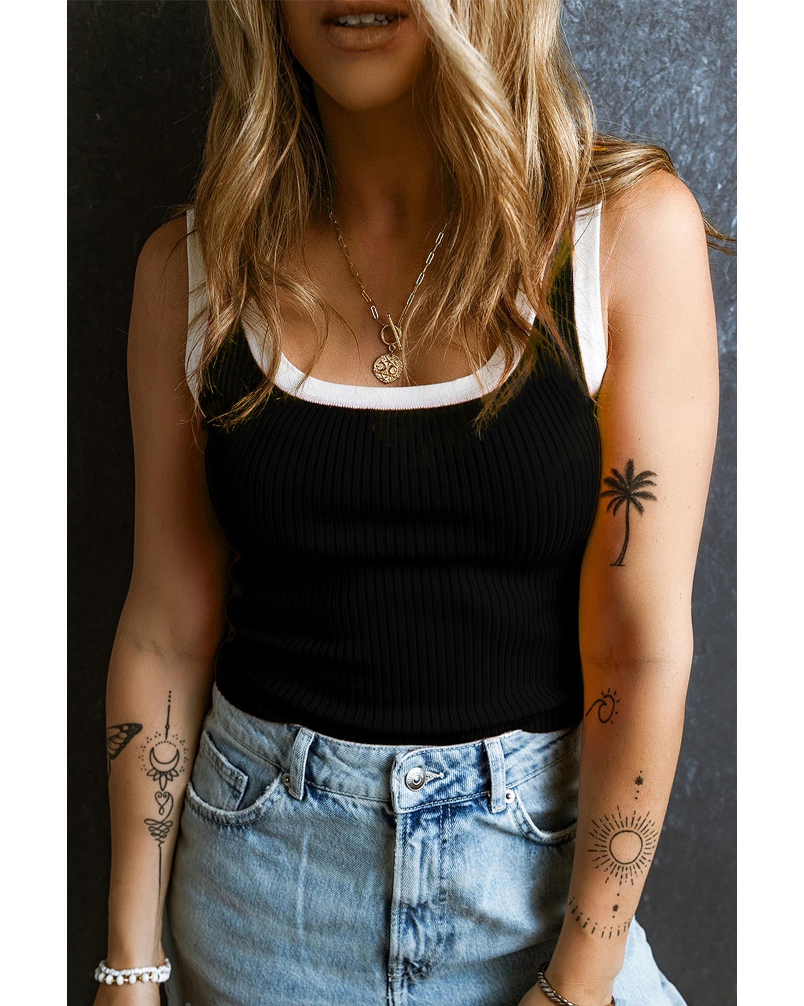 Black Colorblock Edge Ribbed Knit U Neck Tank Top – L
