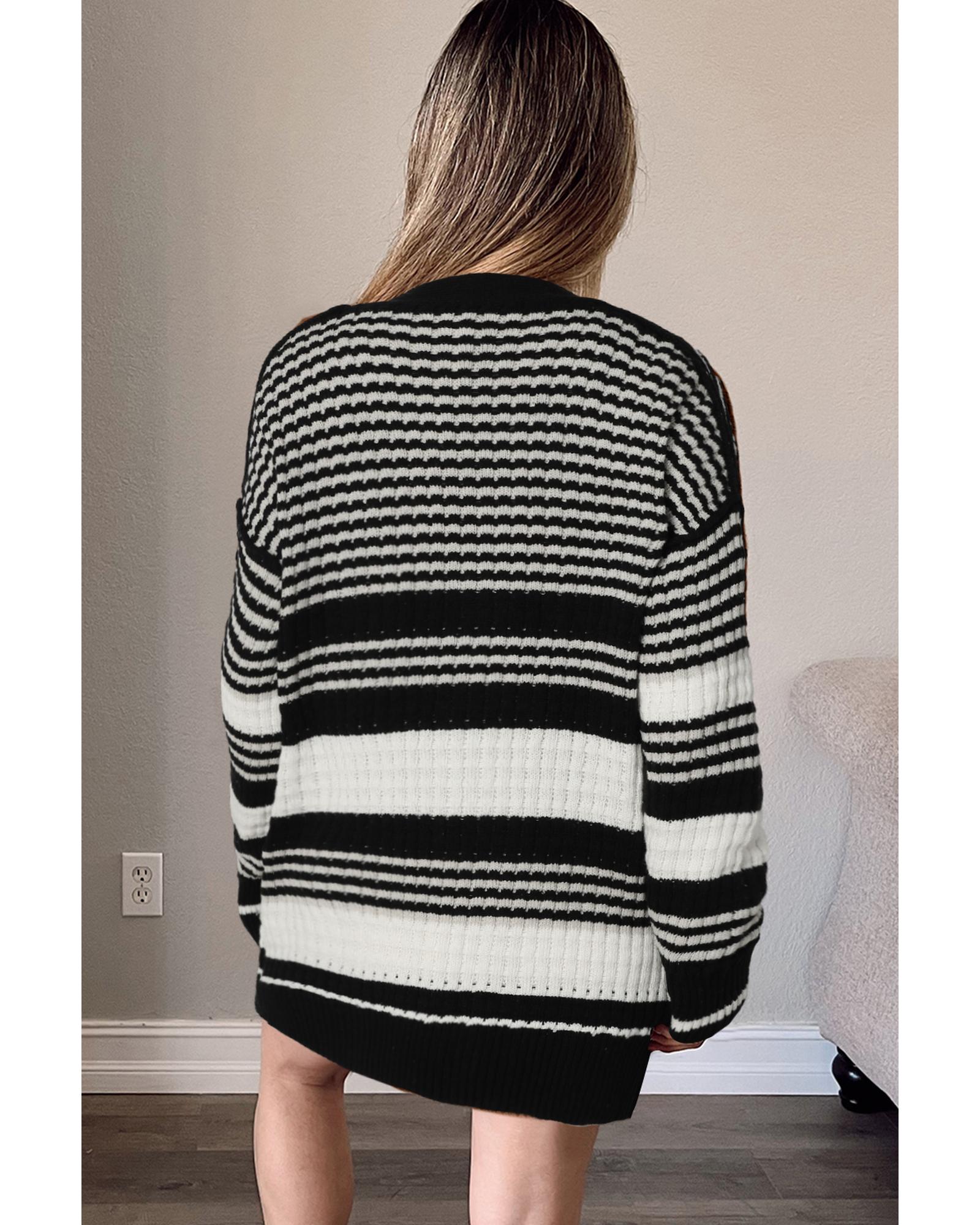 Black Colorblock Textured Knit Buttoned Cardigan – L