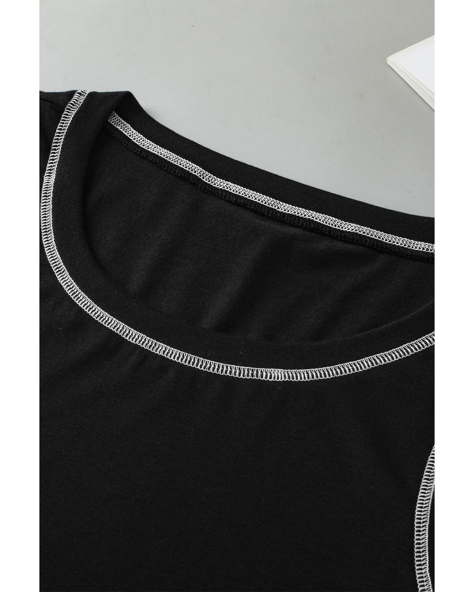 Black Contrast Stitch Round Neck Sleeveless Top – M