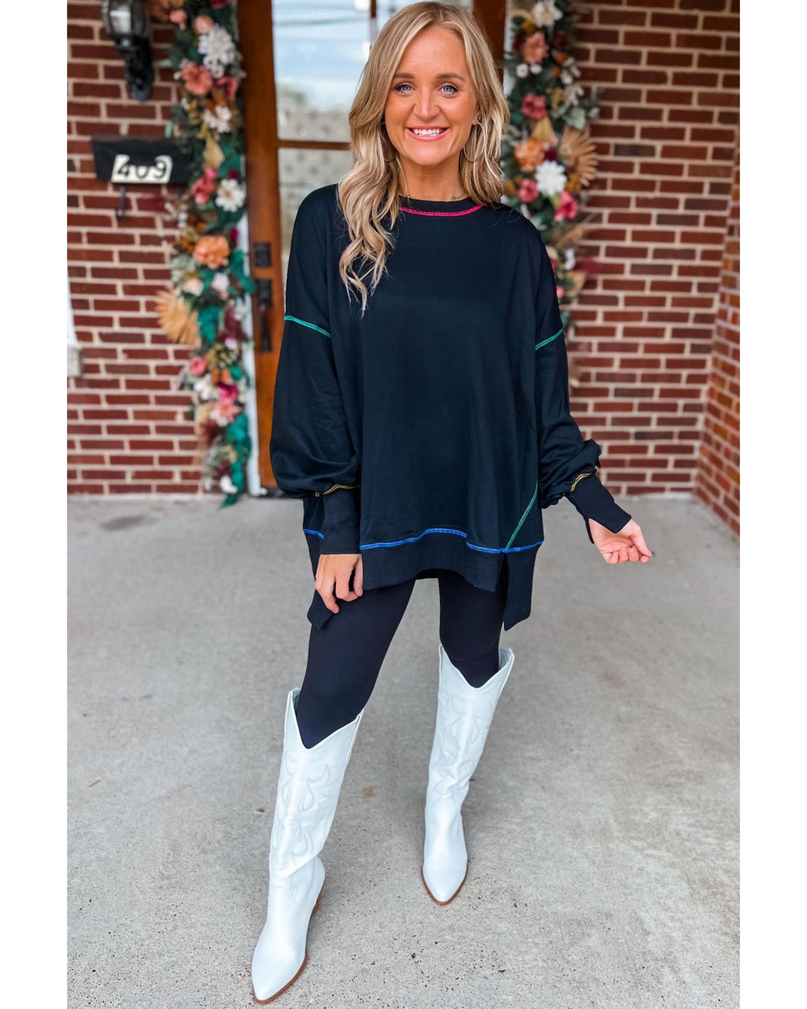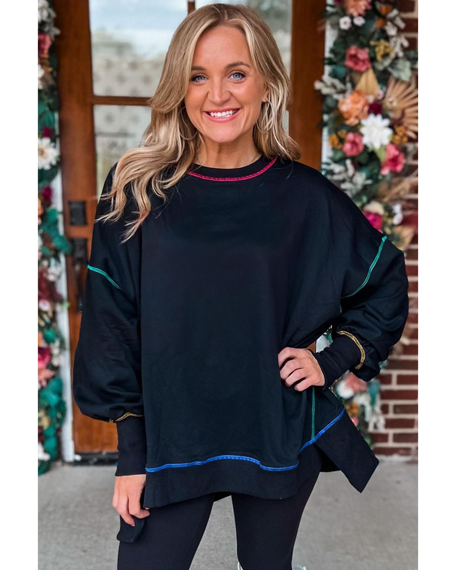Black Contrast Stitching Split Baggy Sweatshirt – S