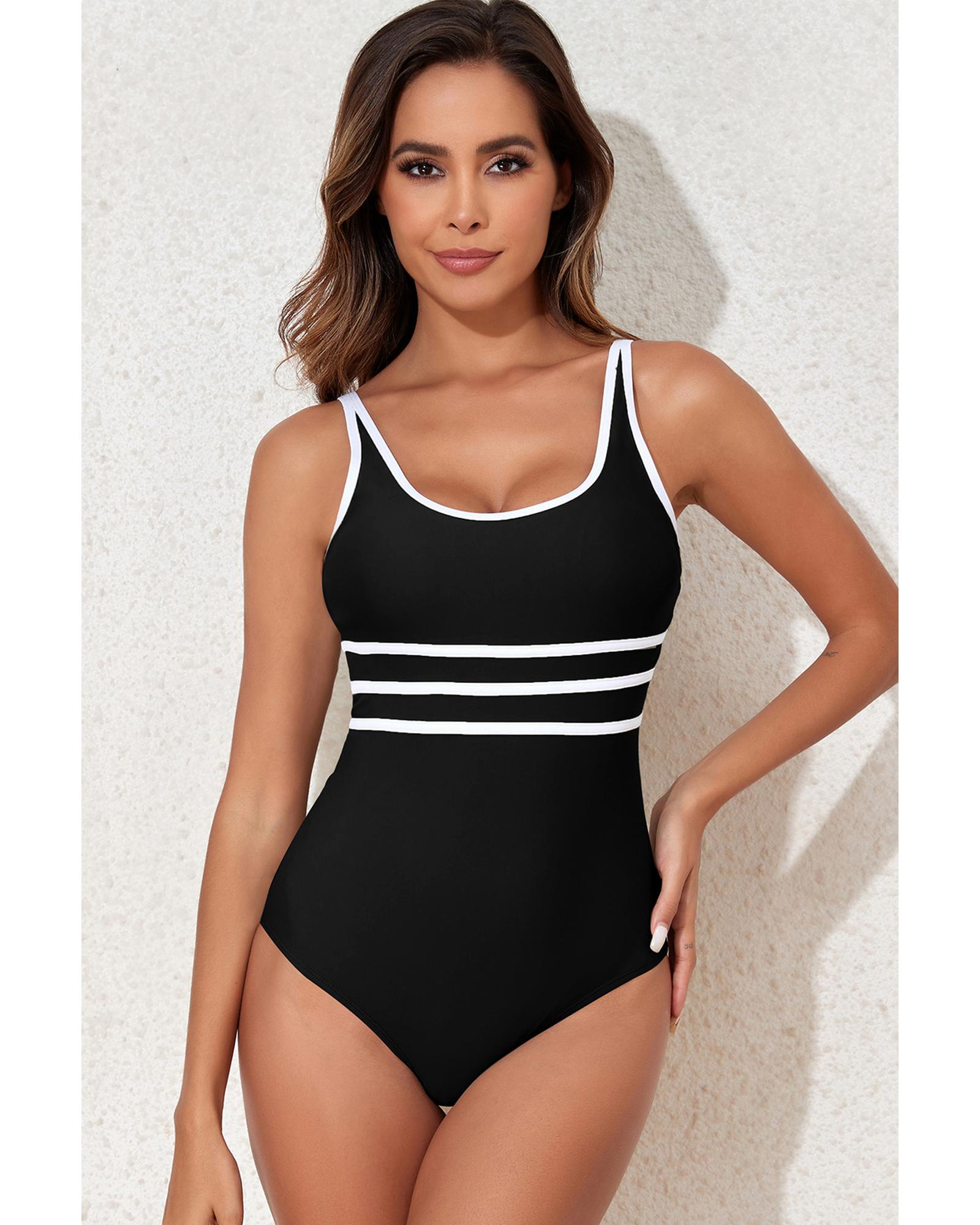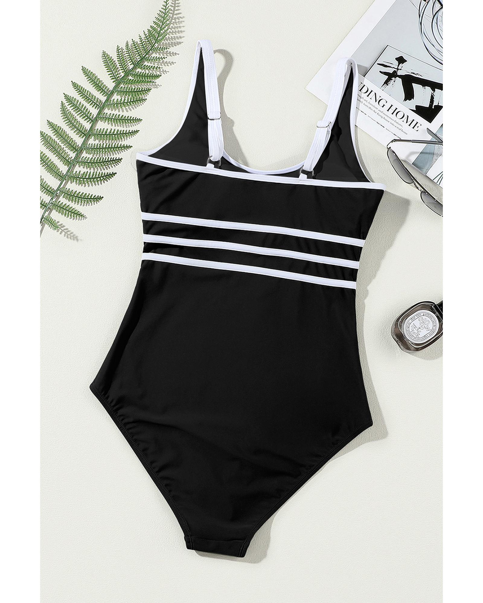 - Black Contrast Trim Colorblock U Neck One Piece Swimwear