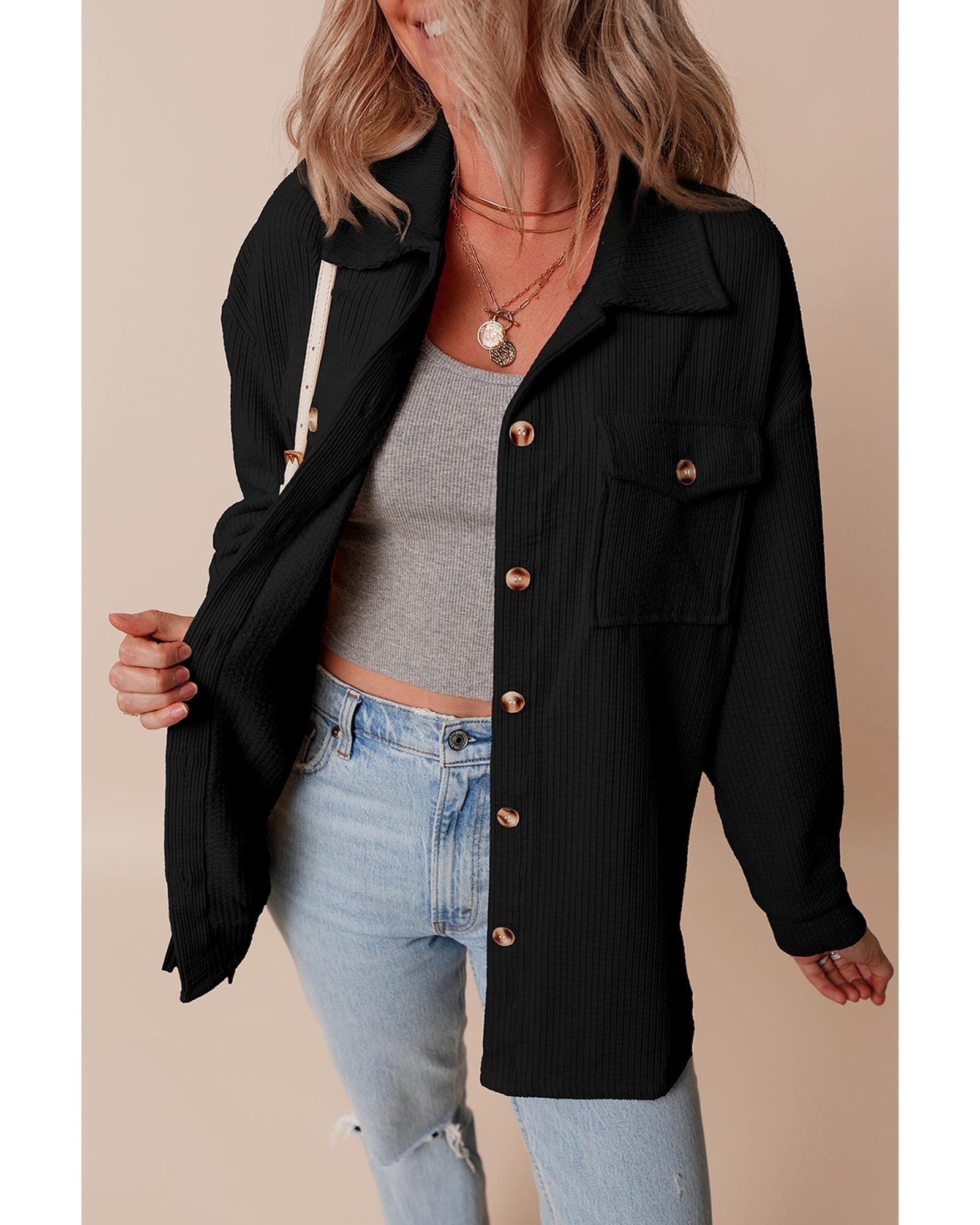 Black Corduroy Flap Pocket Button Up Shacket – L