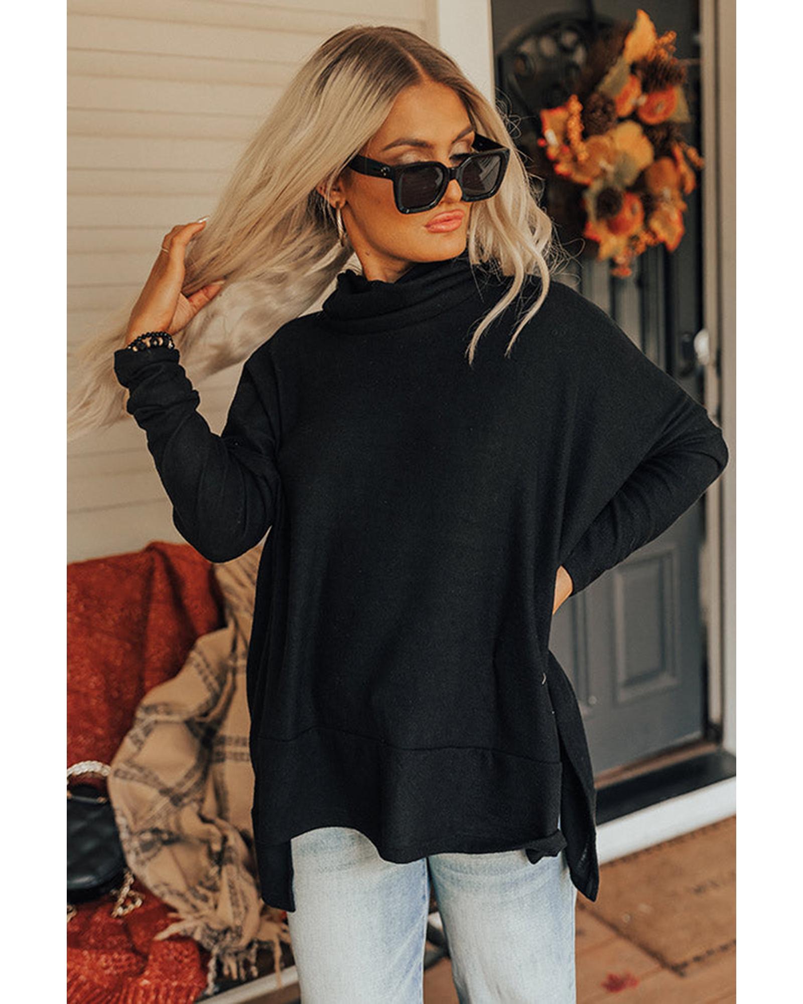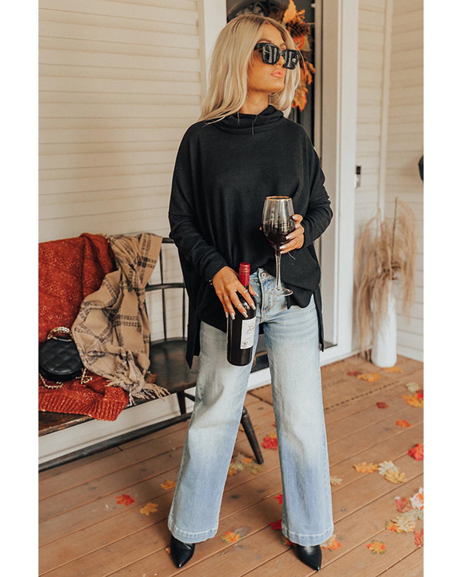 - Size chart in centimeters (Bust Shoulder Sleeve Length Length Hem Width): S (118 77 40.5 71 124) M (124 80 41 73 130) L (130 83 41.5 75 136) XL (138 87 42 77 144)