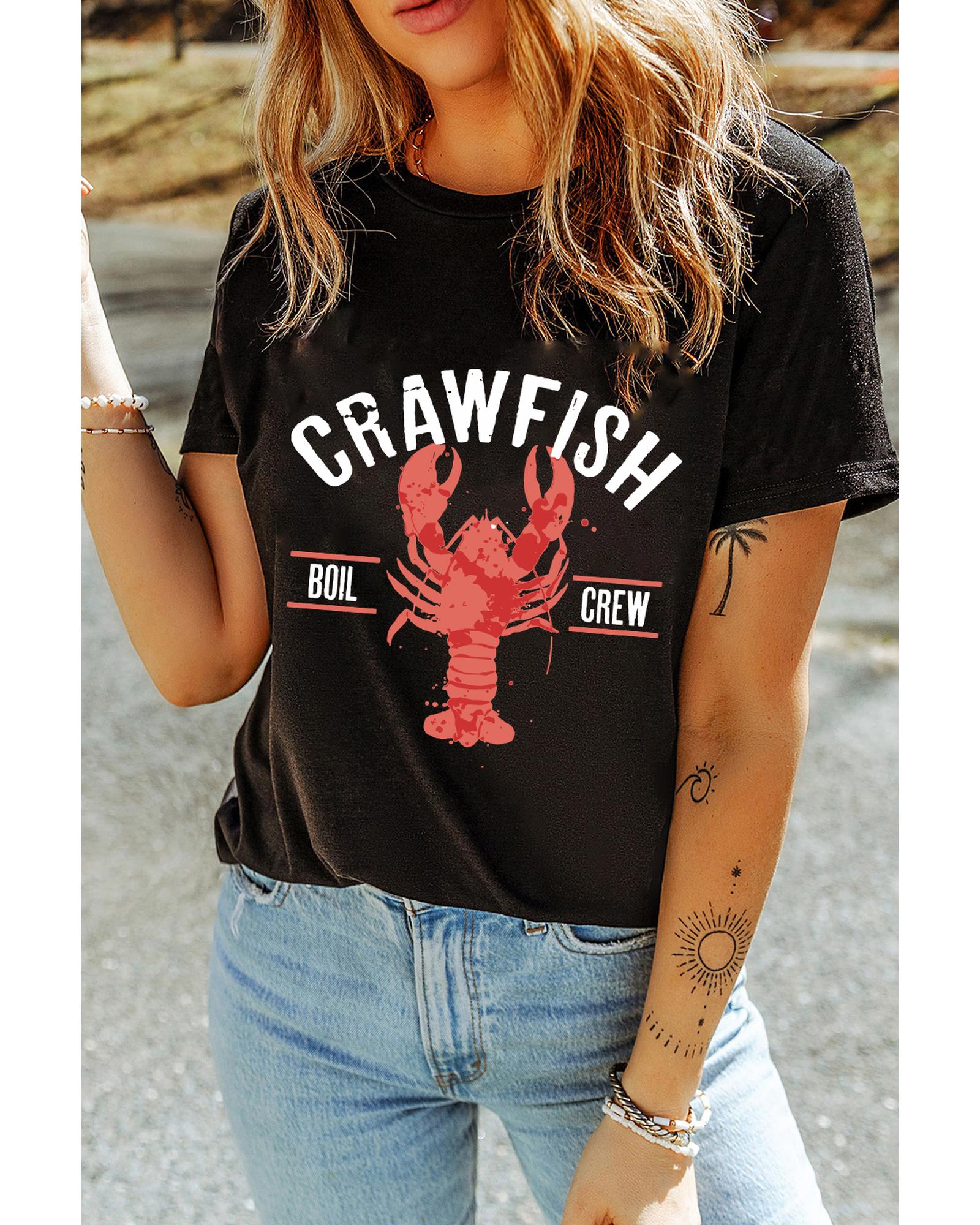 - Black CRAWFISH BOIL CREW Distressed Letter Graphic T Shirt
