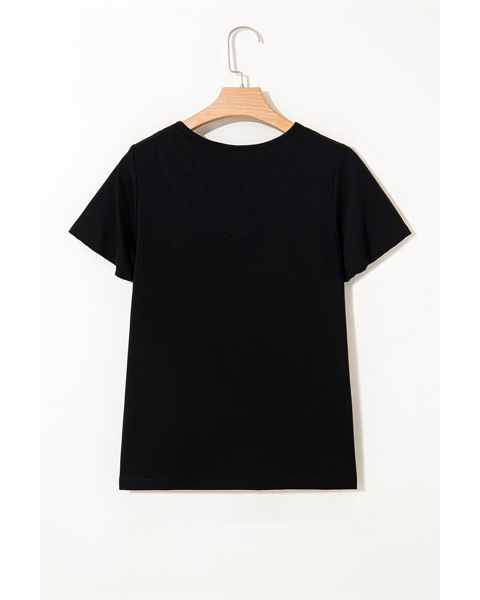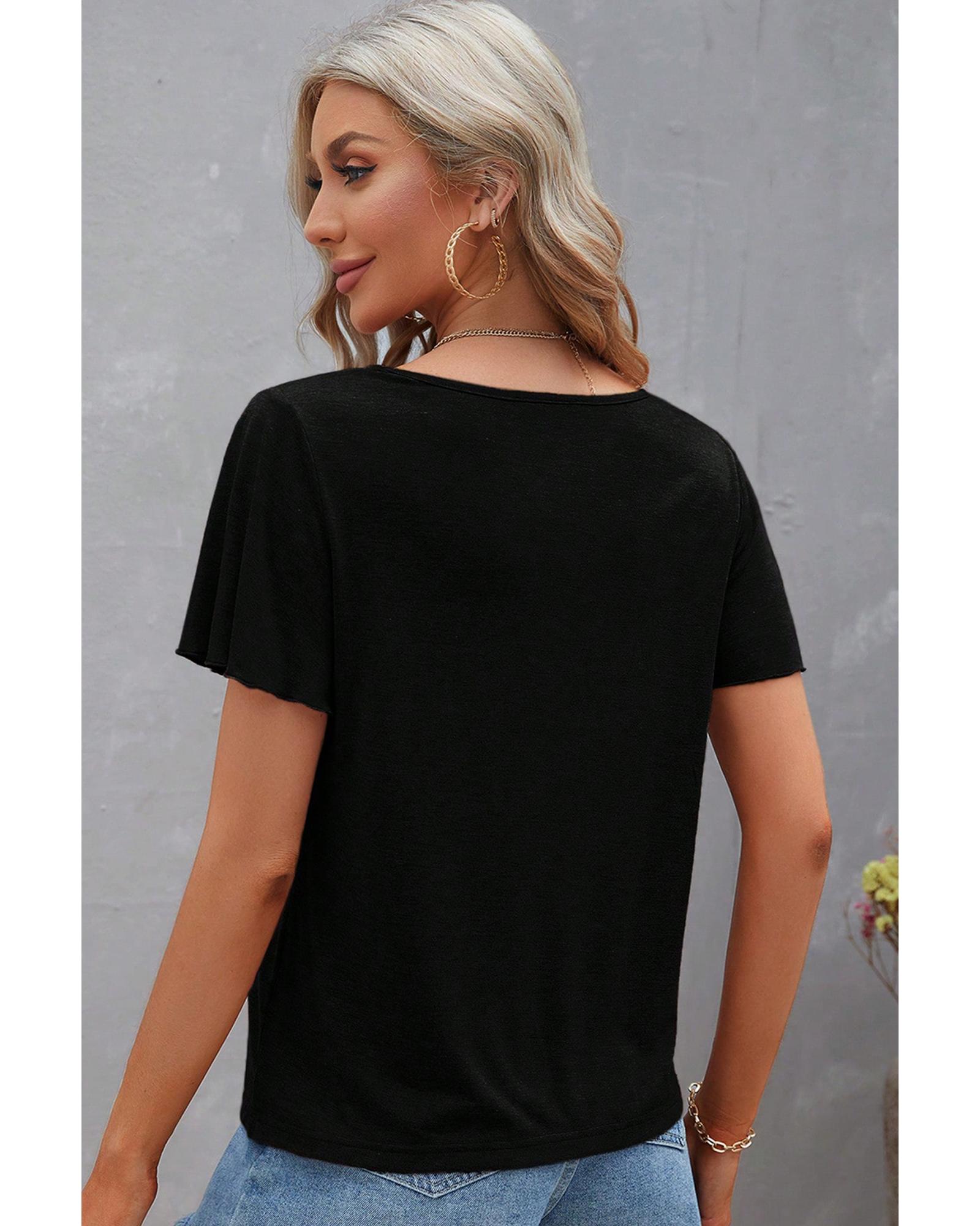 Black Crisscross V Neck Butterfly Sleeve T Shirt – XL