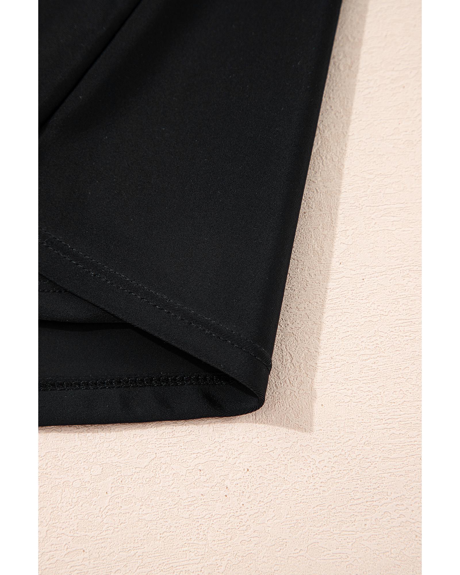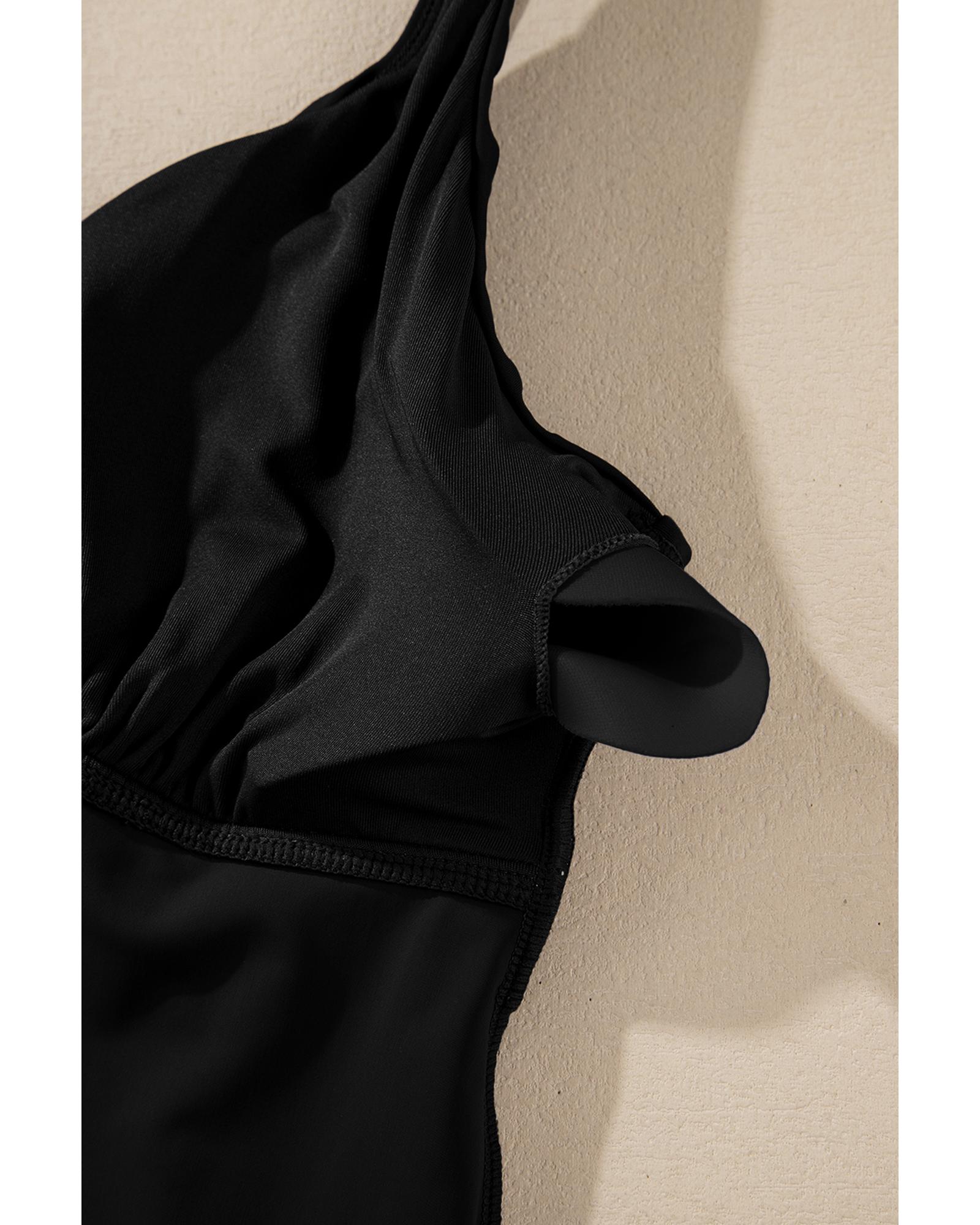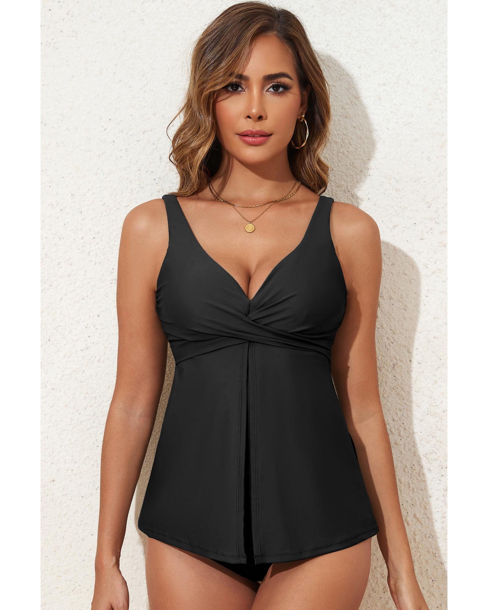 Black Crossed V Neck Adjustable Strap Babydoll Tankini Top – L