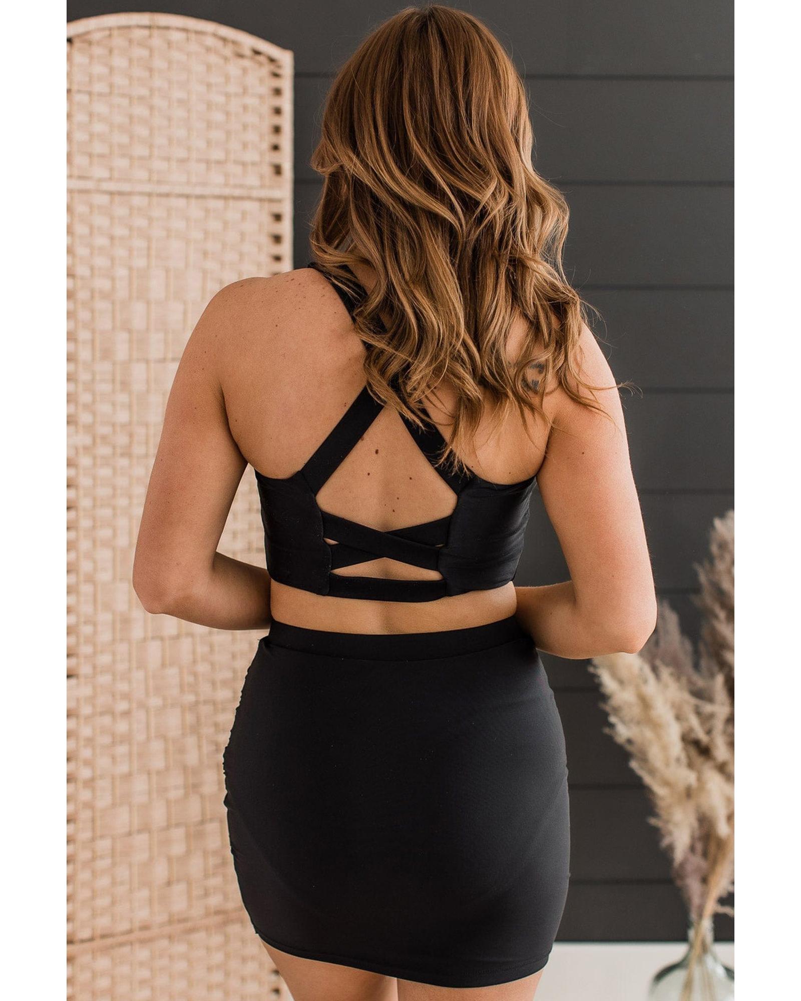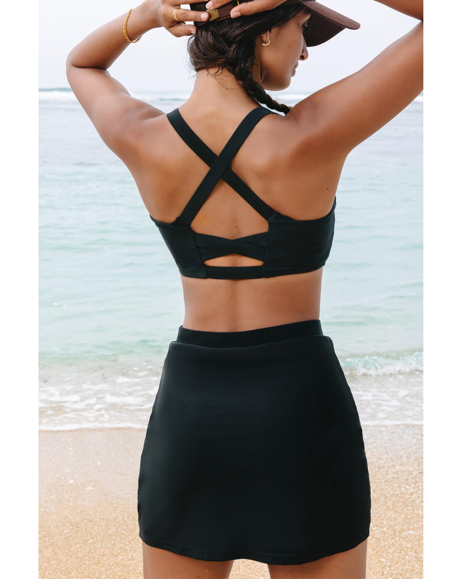 Black Crossover Bikini Tank and Skort Swimwear – S