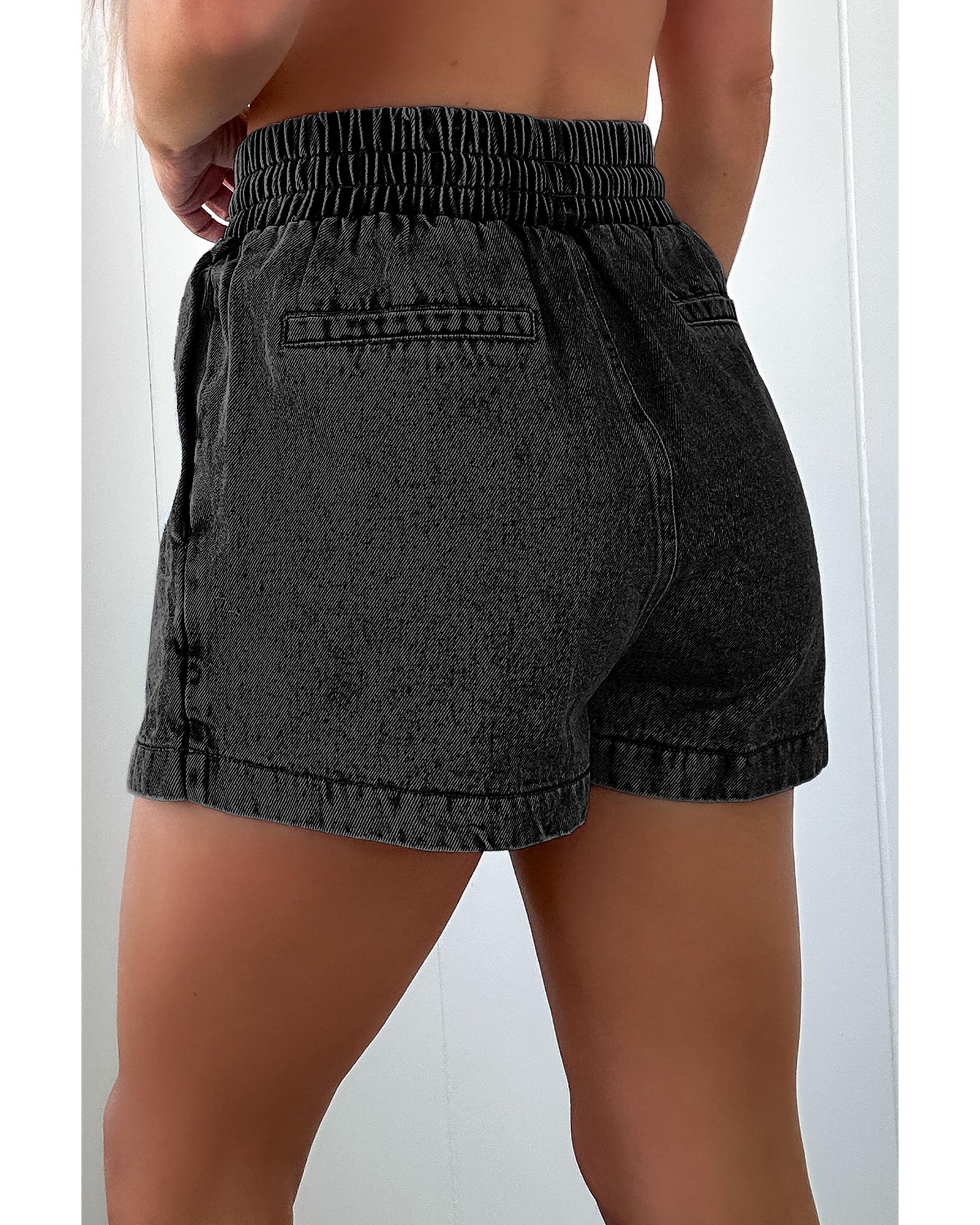 Black Drawstring High Waist Pocketed Denim Shorts – 14 US