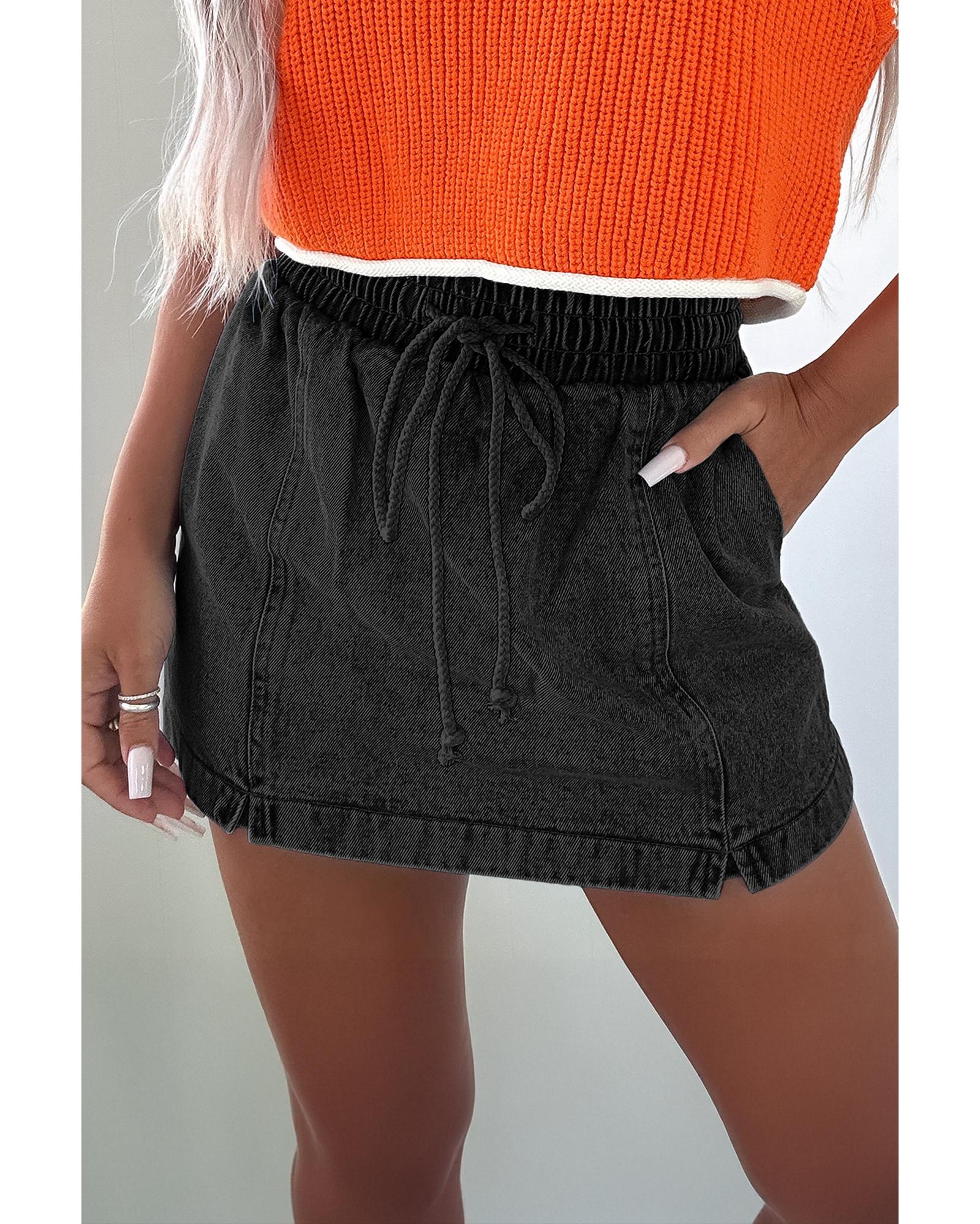 - Black drawstring high waist pocketed denim shorts