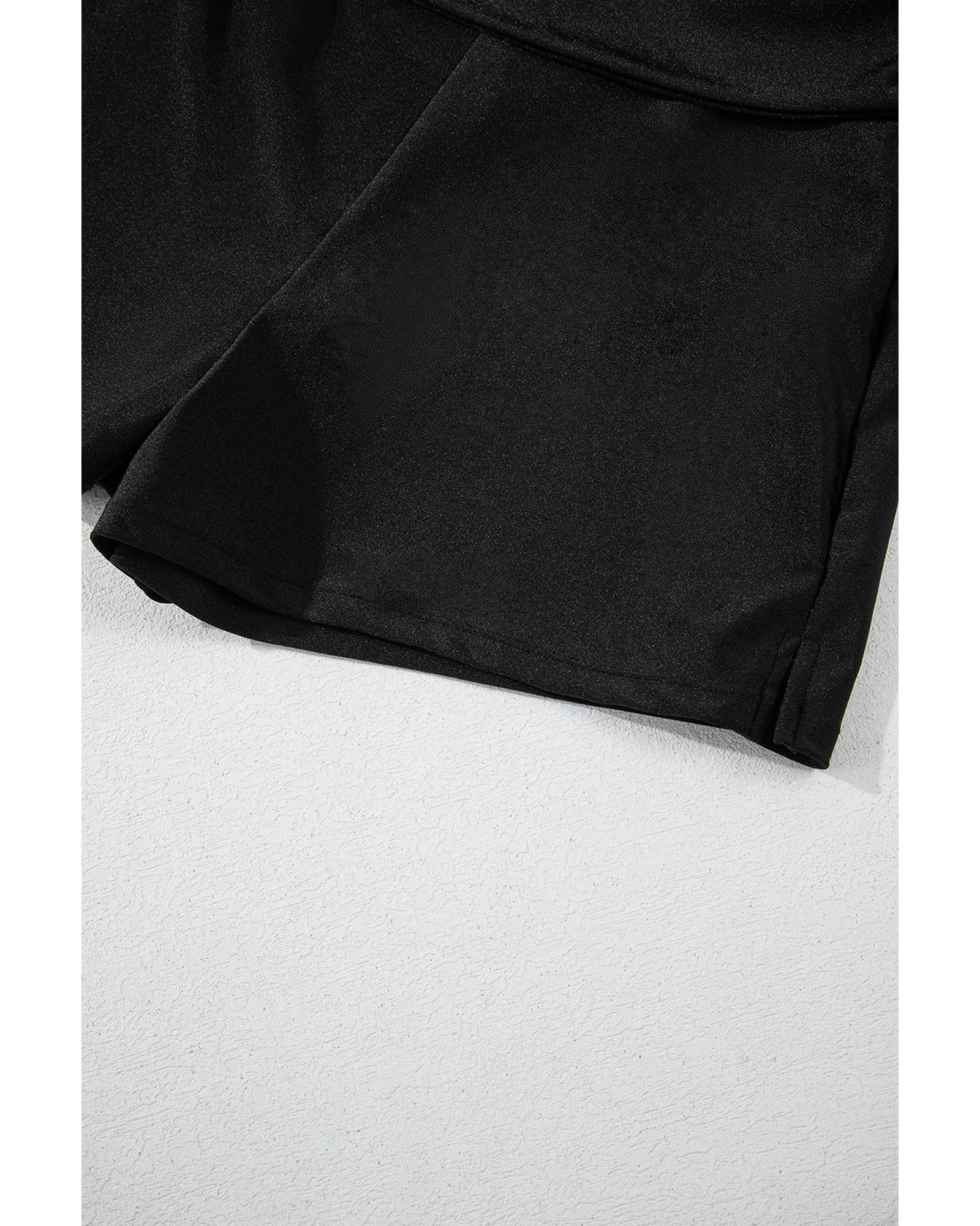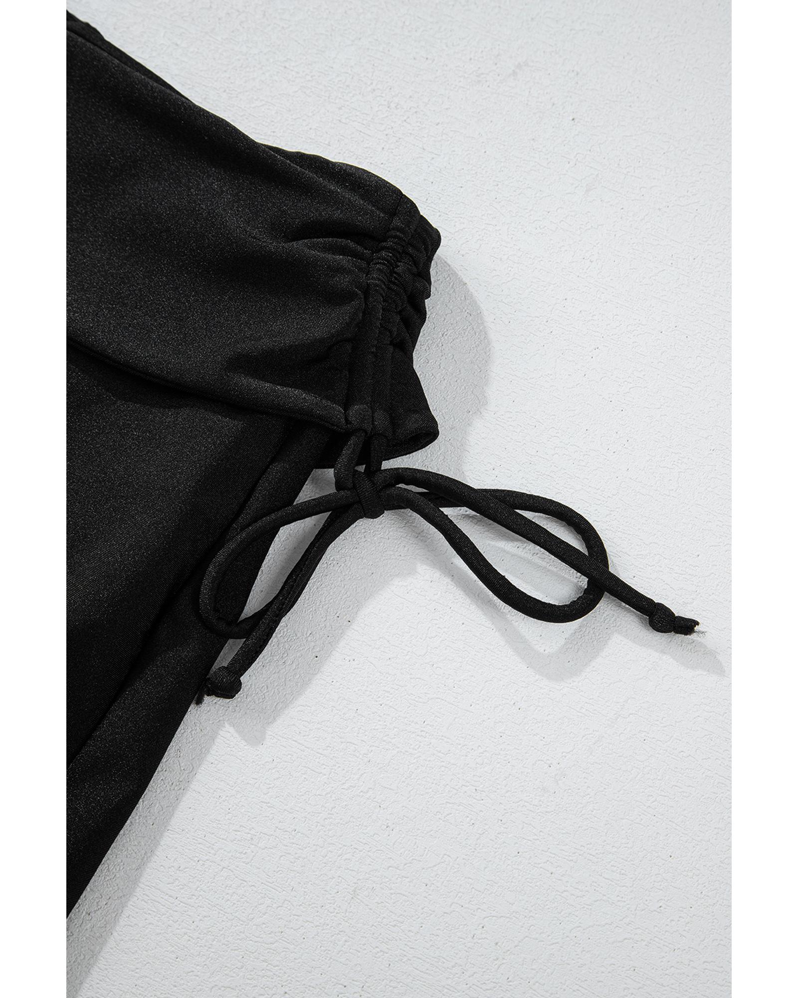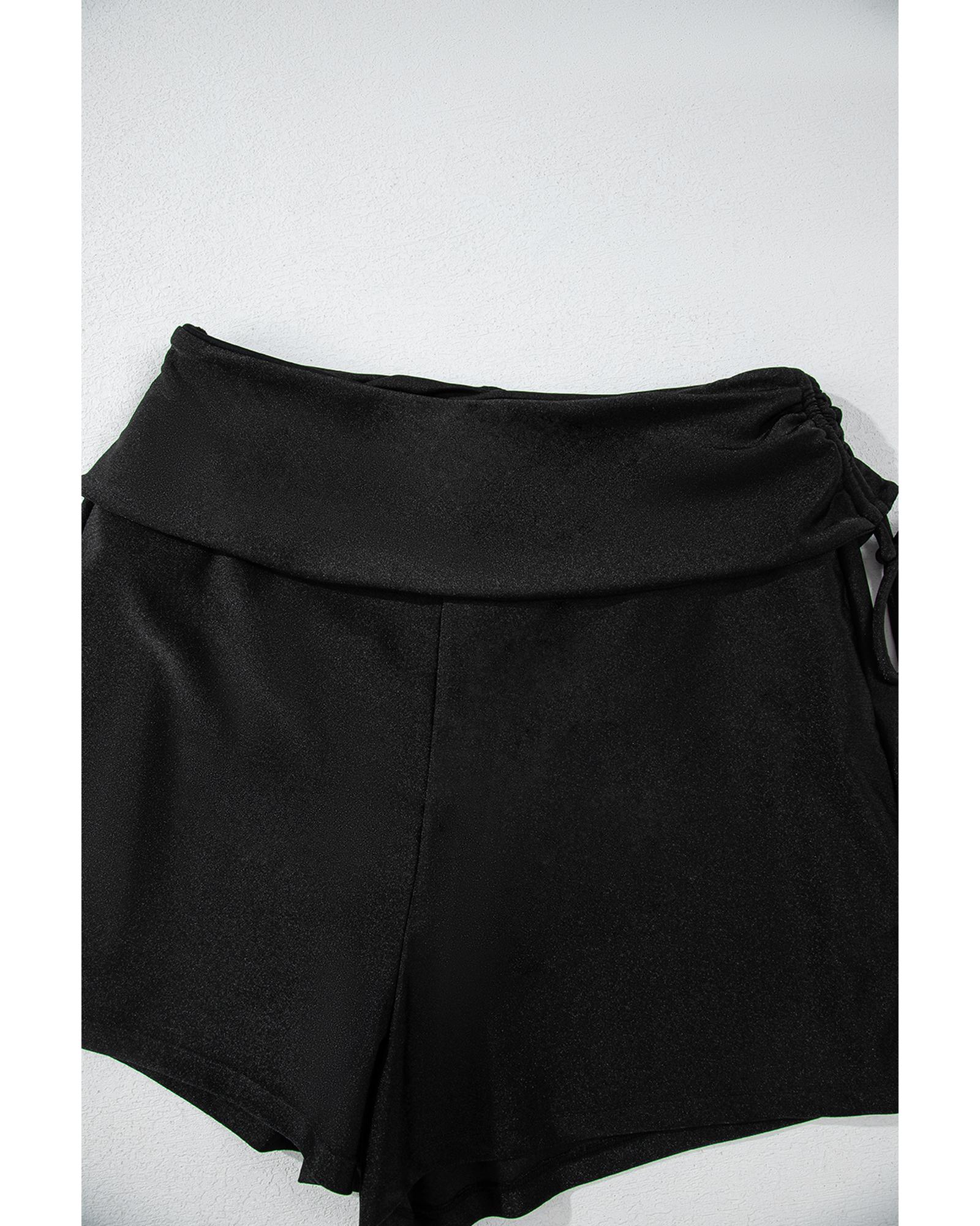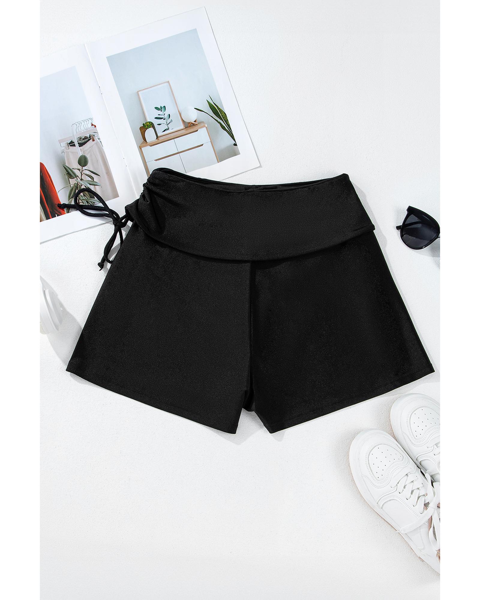 Black Drawstring Ruched High Waist Loose Swim Shorts – S