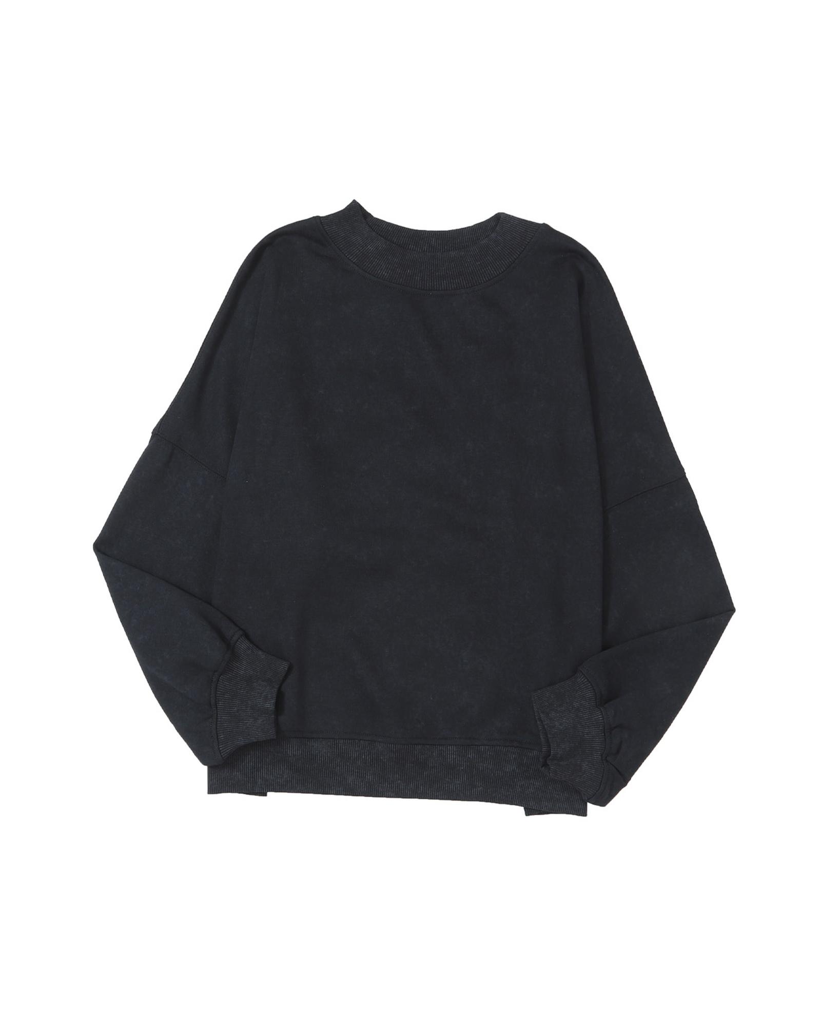 Black Drop Shoulder Crew Neck Pullover Sweatshirt – XL