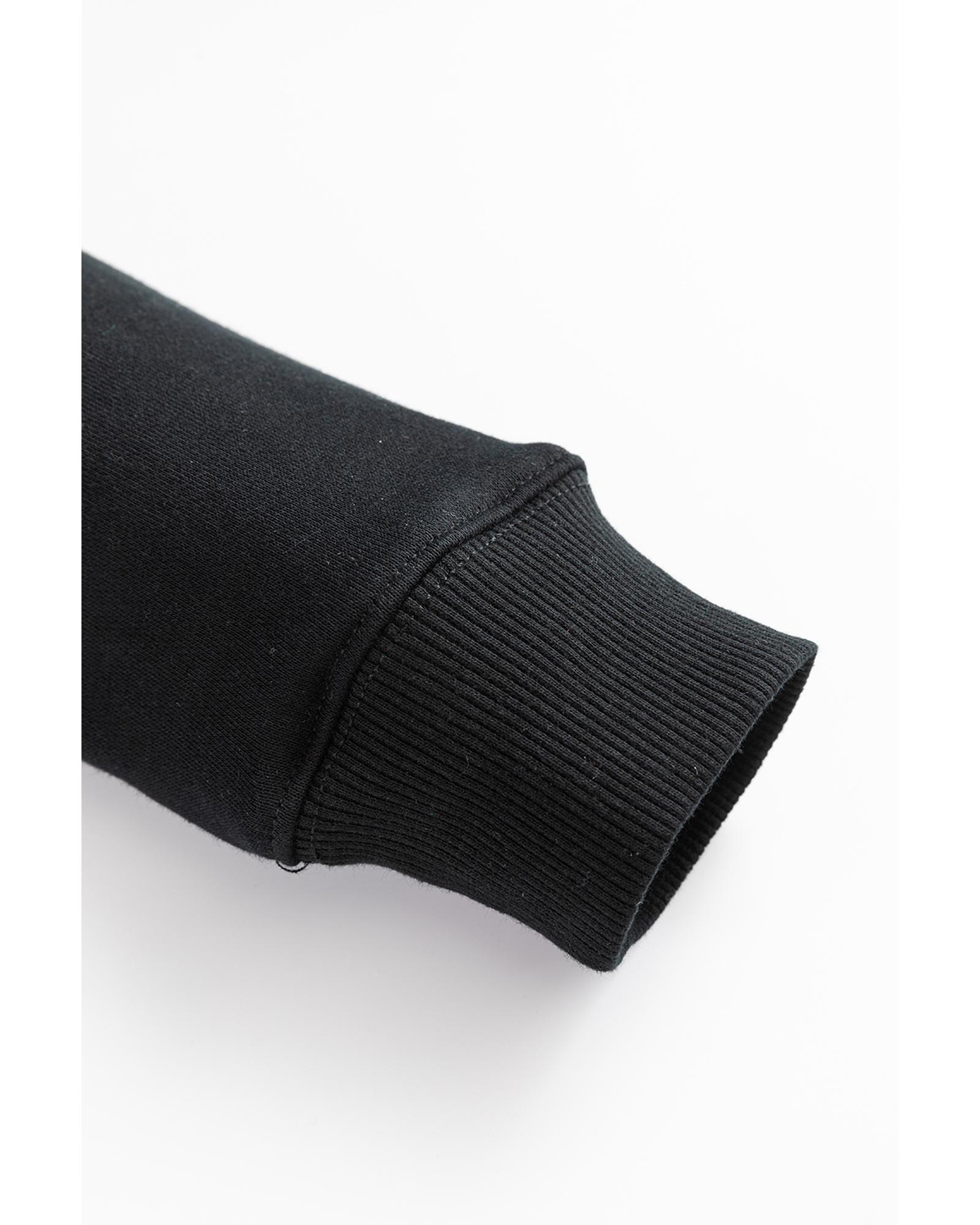 Black Drop Shoulder Crisscross Stitching Pocketed Loose Sweatshirt – M