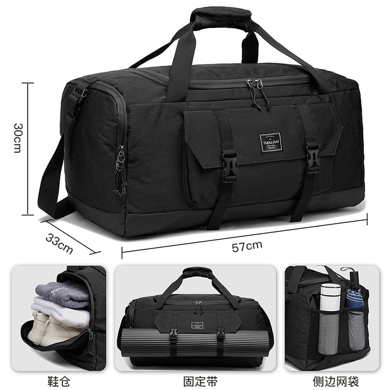 Black Dry Wet Separation Gym Bag – Yoga Fitness Travel Duffel – Shoe Compartment