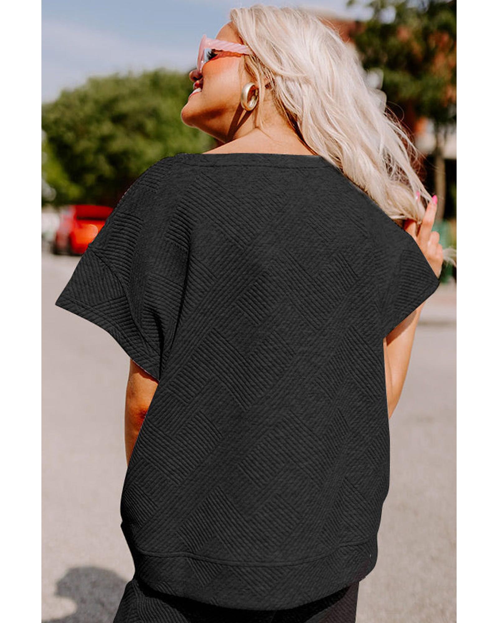 - Black Easter Egg Print Textured Short Sleeve Wide Leg Pants Set