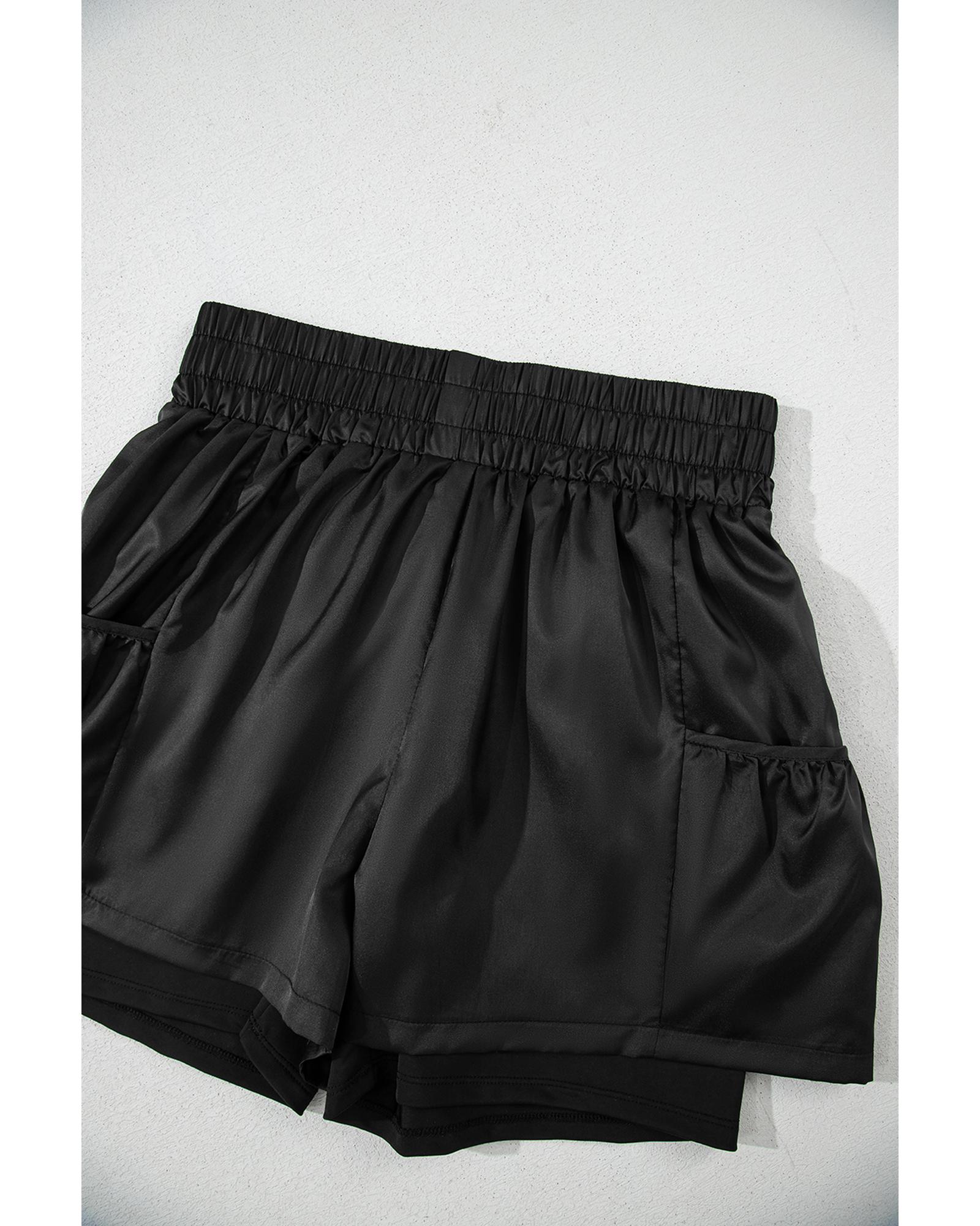 Black Elastic High Waist Pocketed Casual Shorts – S