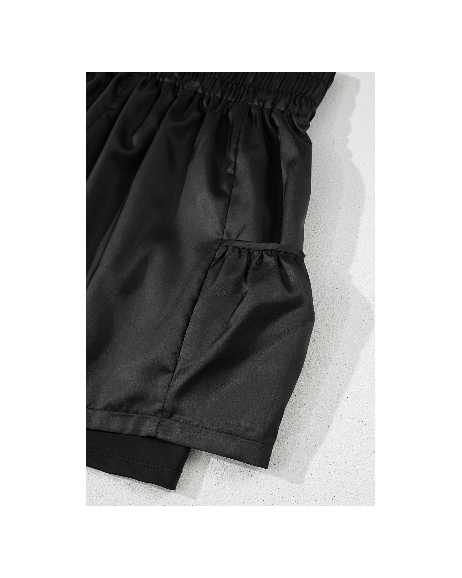 Black Elastic High Waist Pocketed Casual Shorts – XL