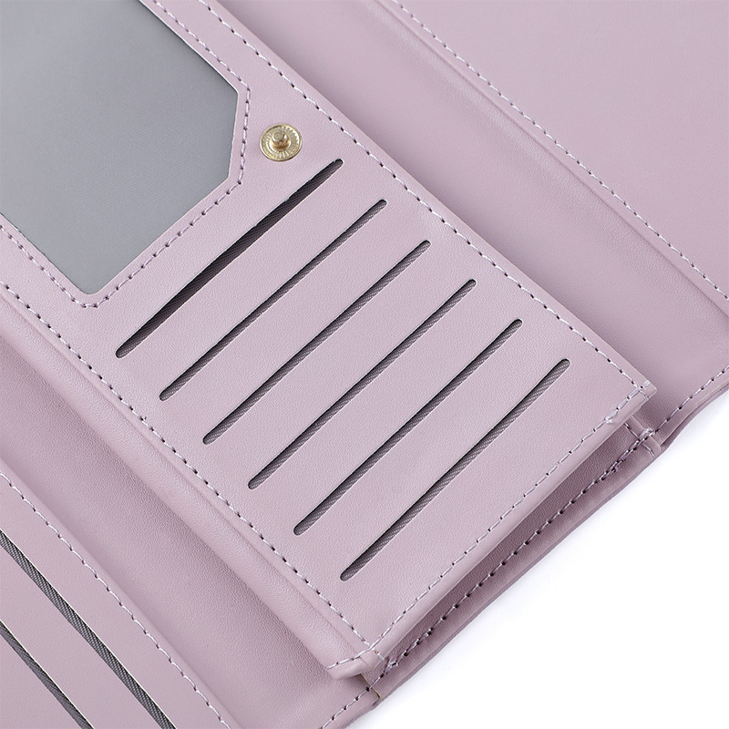 Carry your essentials in style with this chic clutch purse. It features multiple card slots, a zip coin pocket, and a spacious compartment for bills and receipts. The secure closure ensures your belongings are safe and organized. This wallet is a must-have for any woman who values both fashion and functionality.