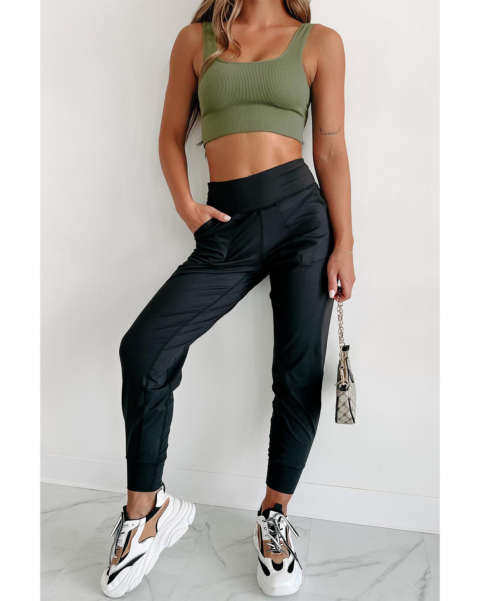 Black Exposed Seam High Waist Pocketed Joggers – M